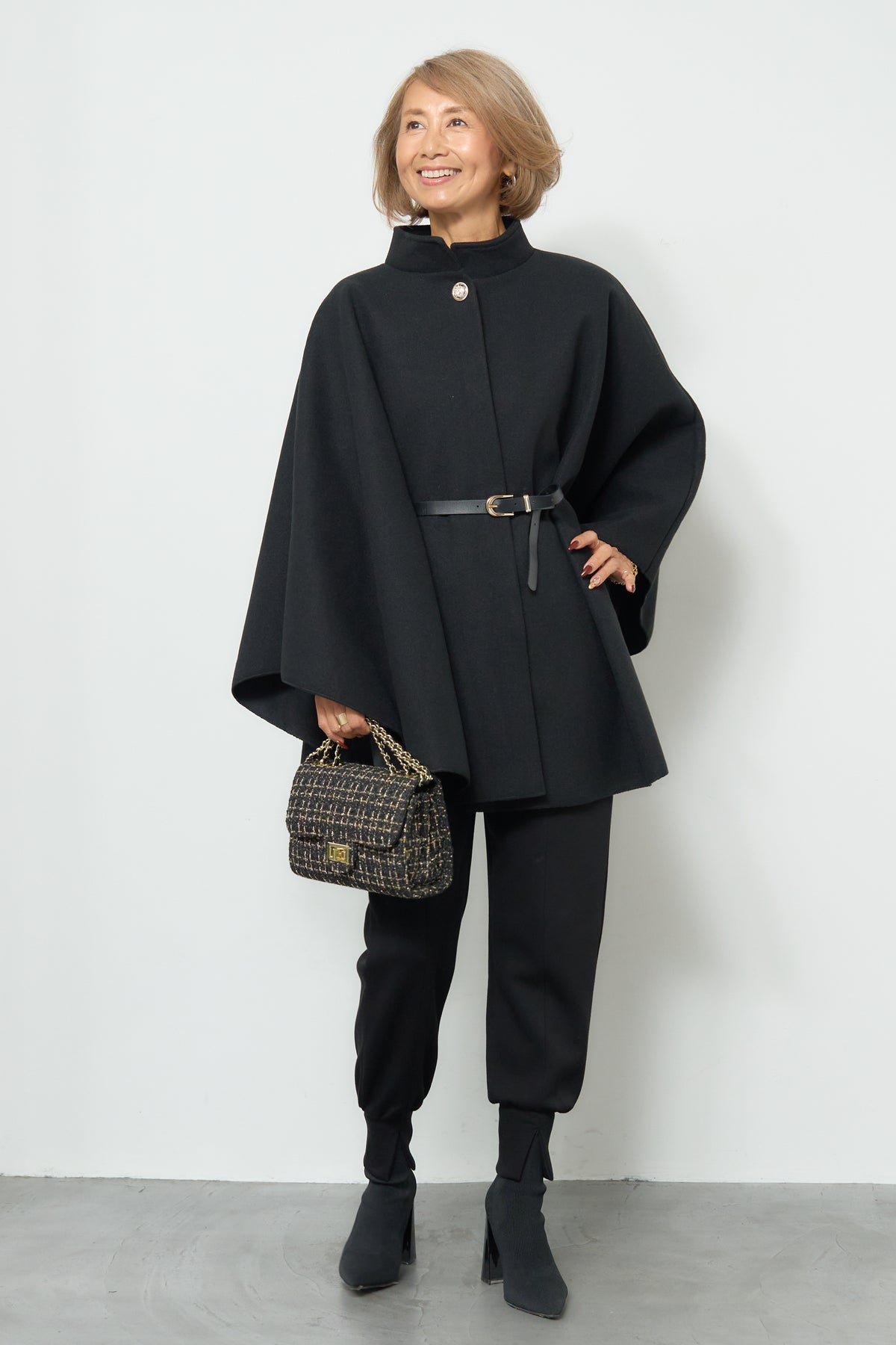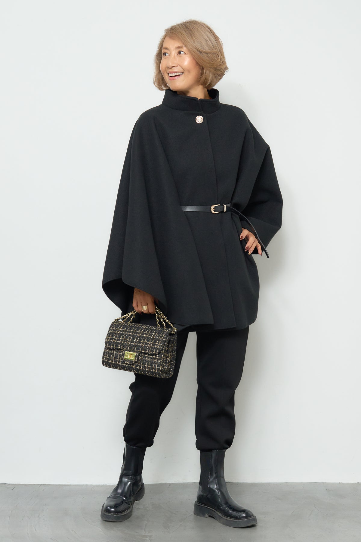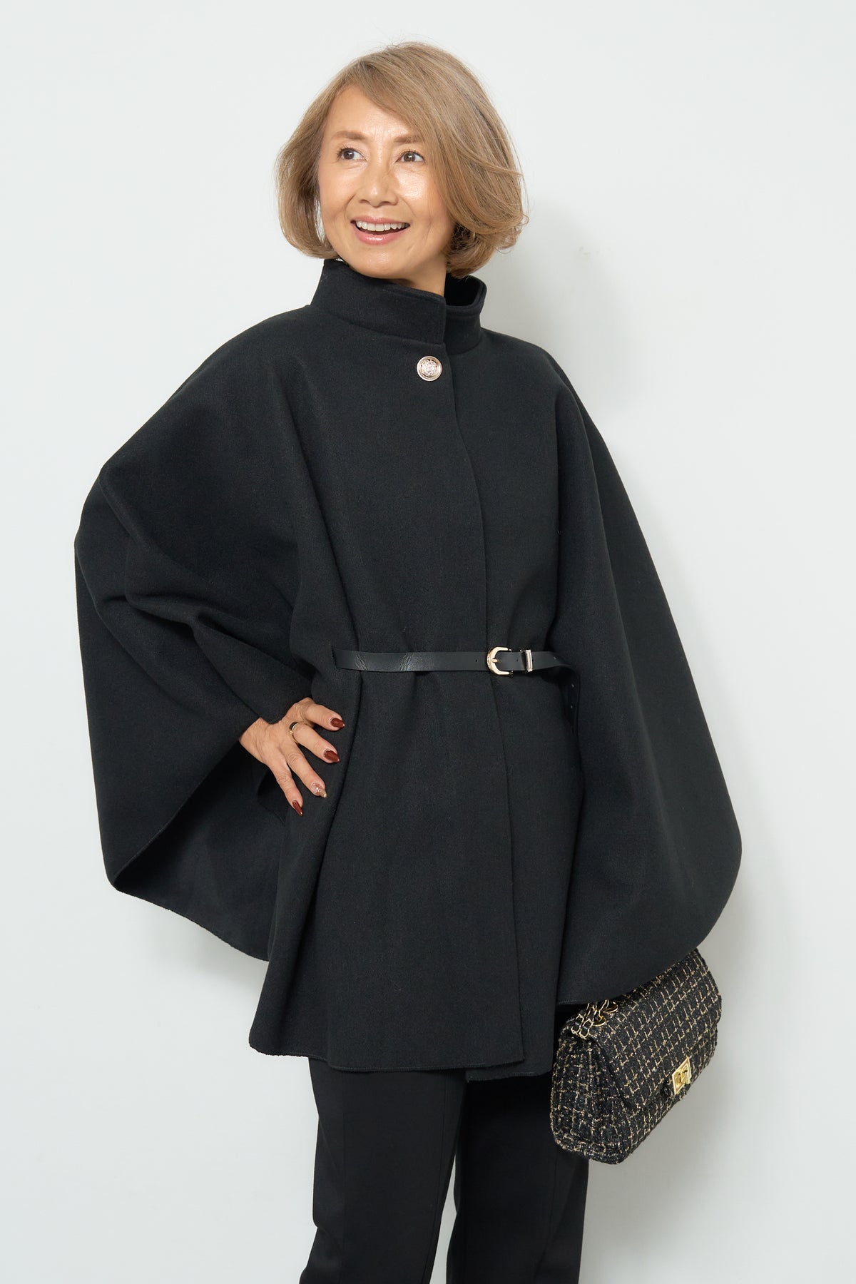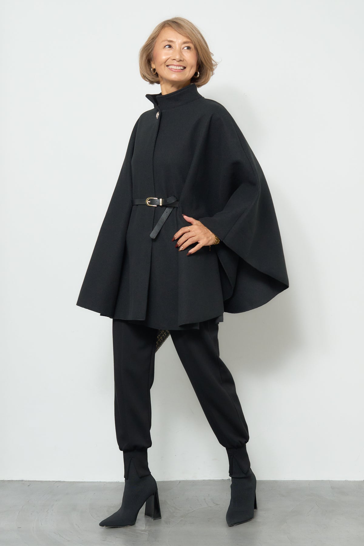 スタンドカラーケープコート