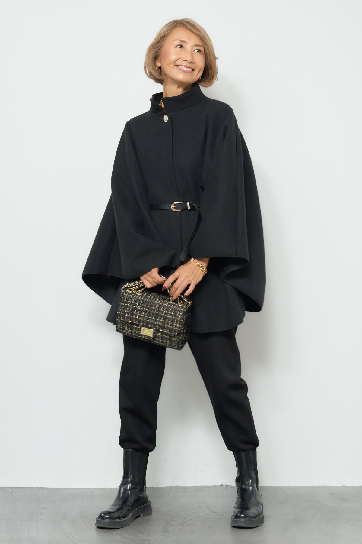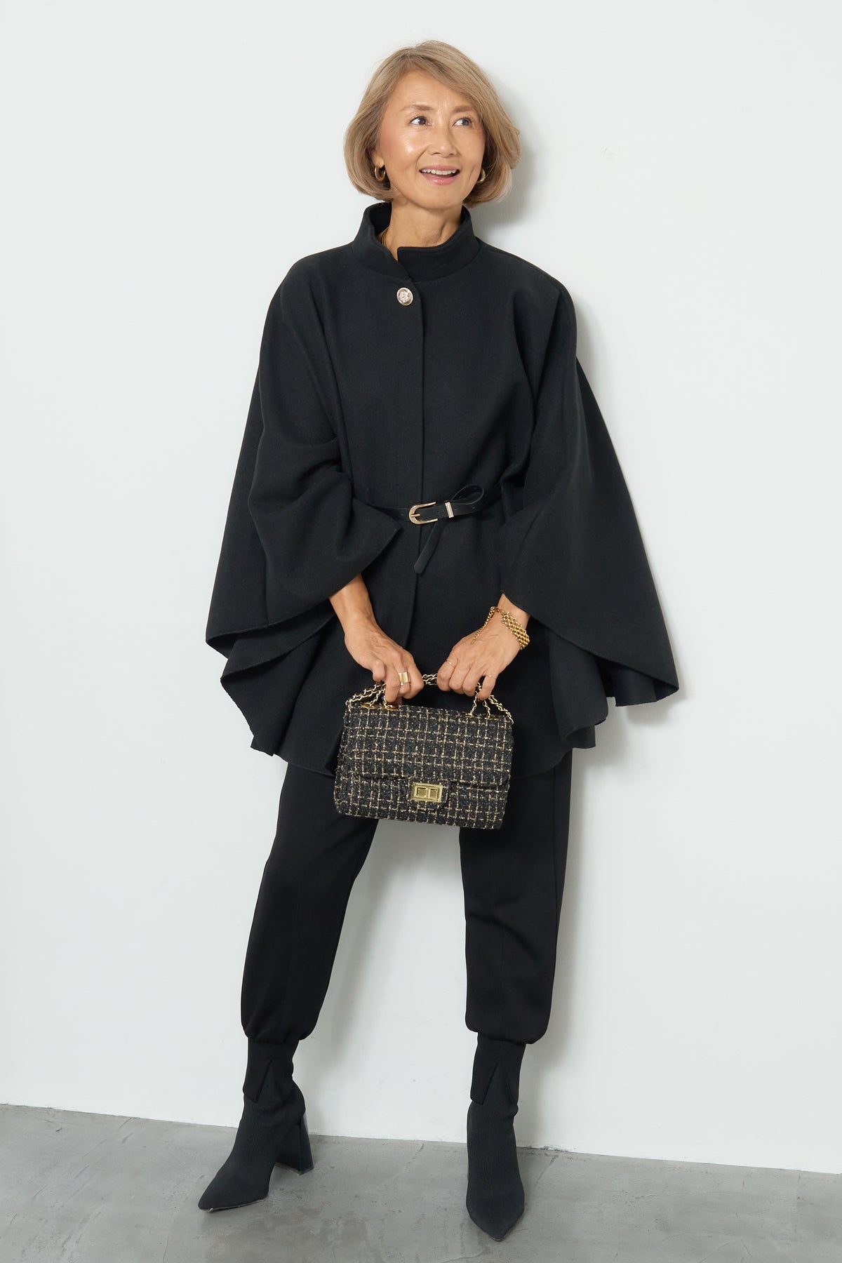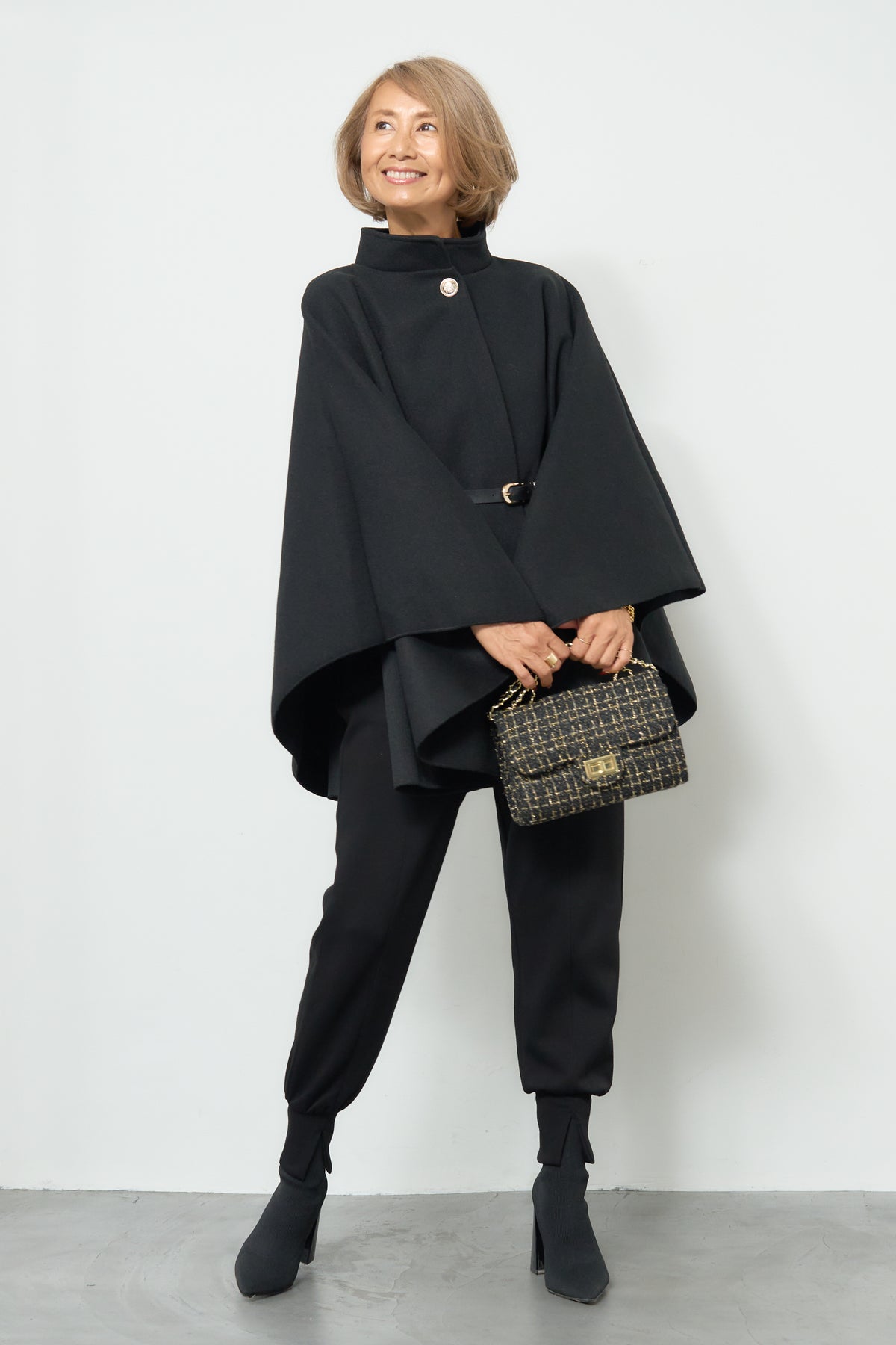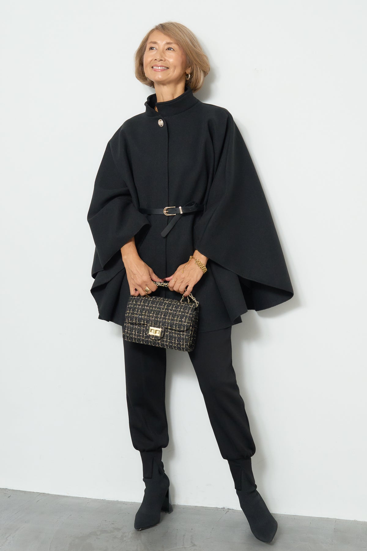 スタンドカラーケープコート