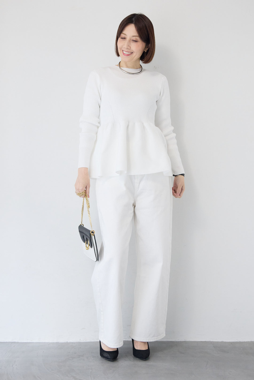 クルーネックペプラムニット