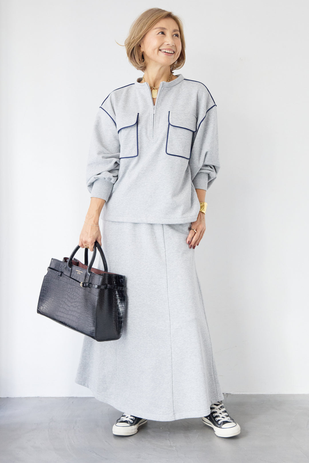 [SET]配色ハーフジップスウェットプルオーバー+配色スウェットスカート(2set)