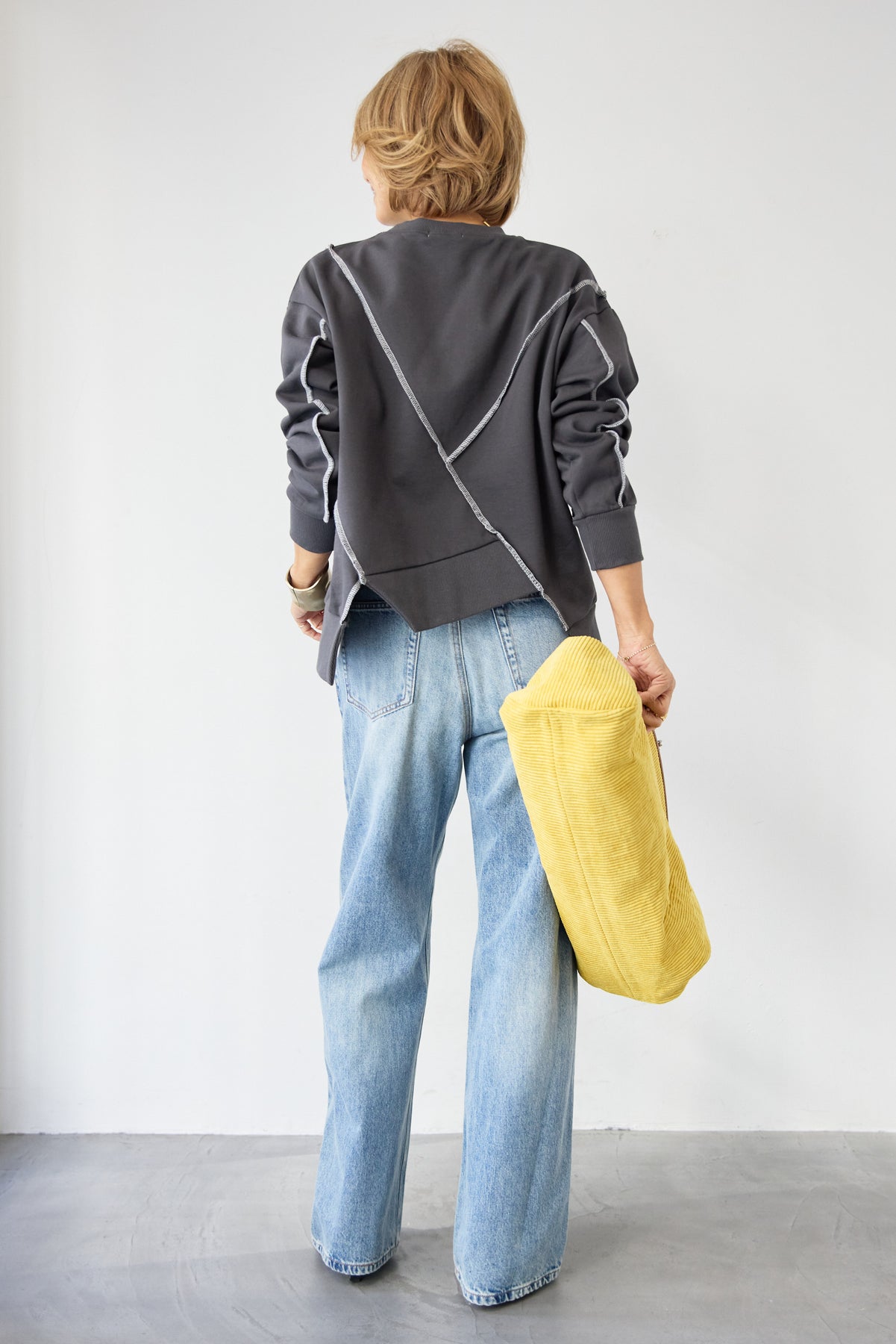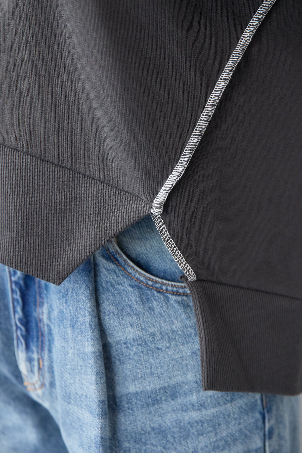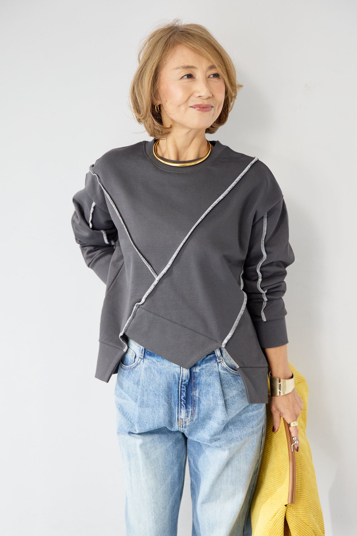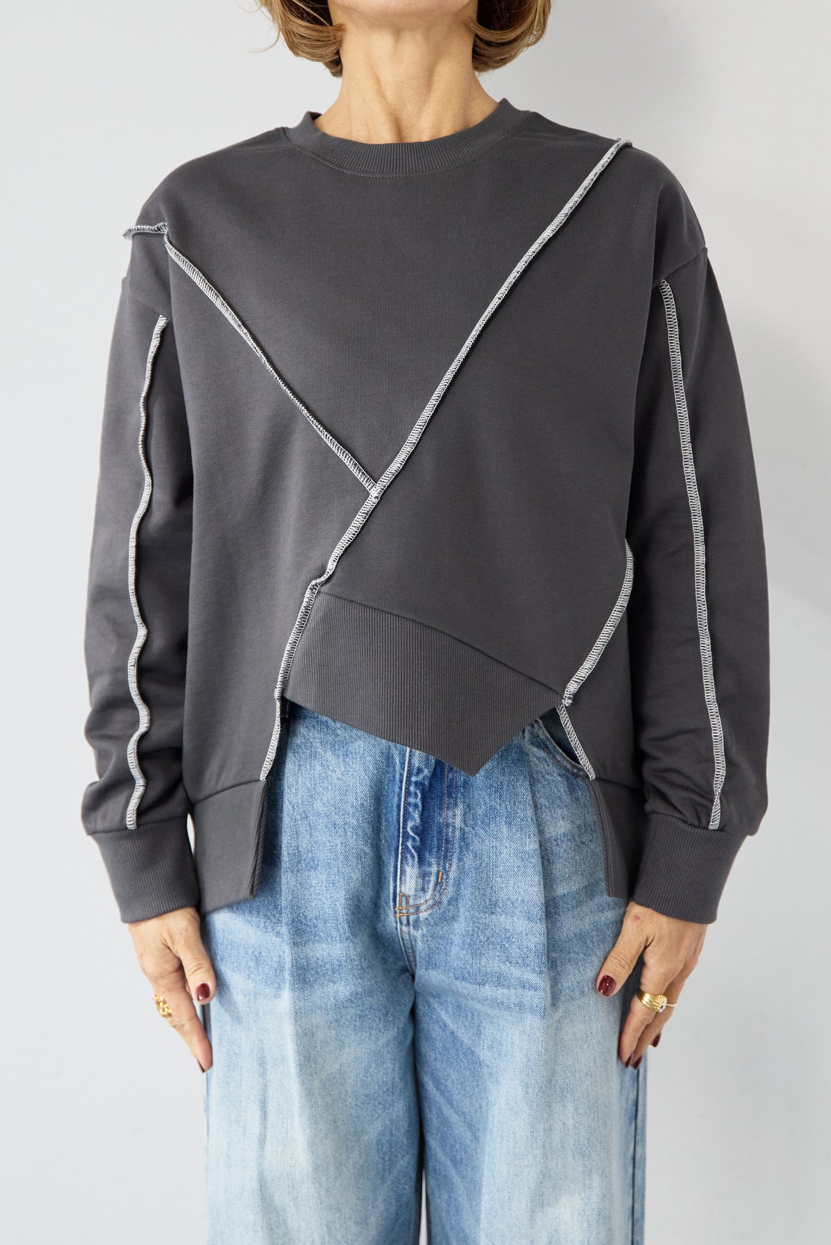 アウトシーム・配色ステッチプルオーバー