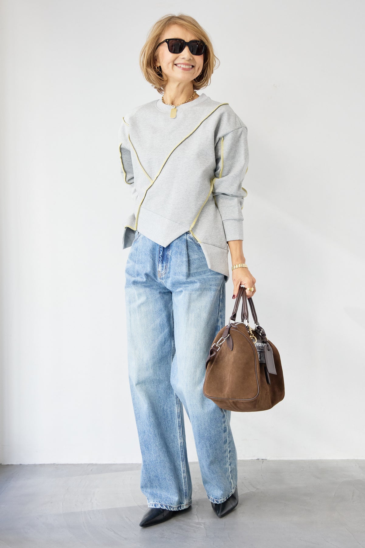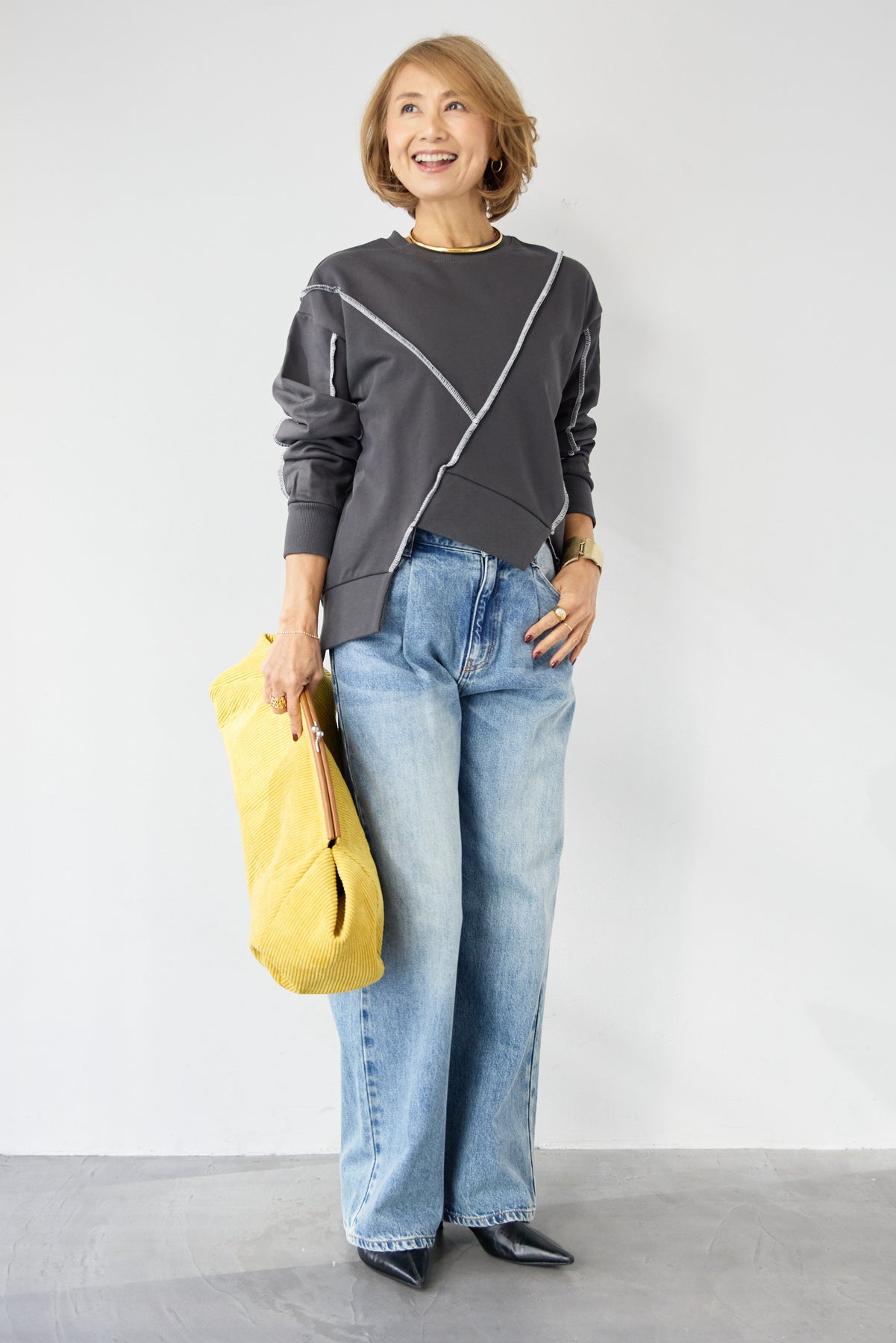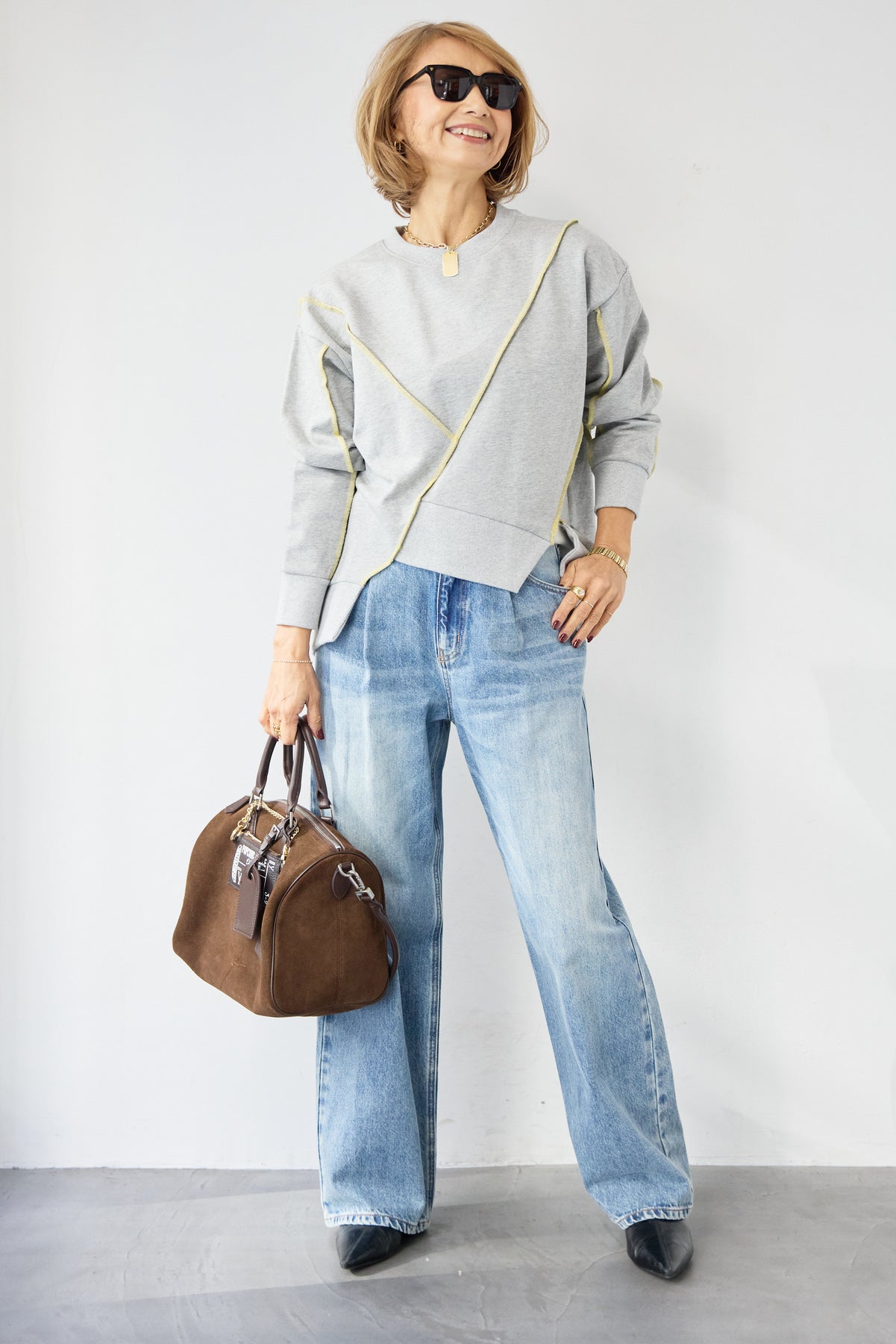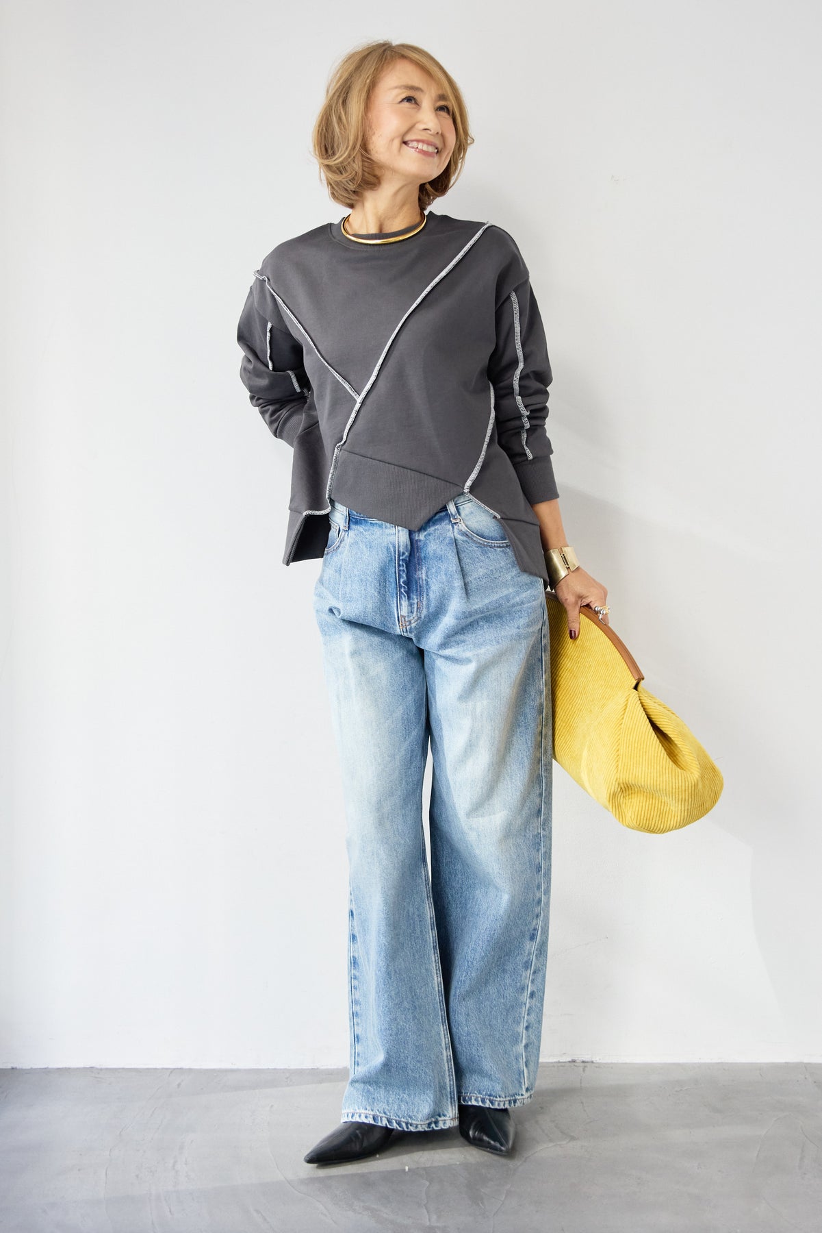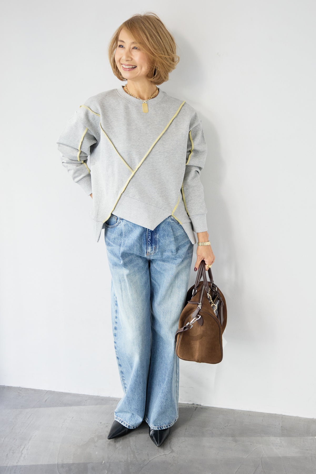 アウトシーム・配色ステッチプルオーバー