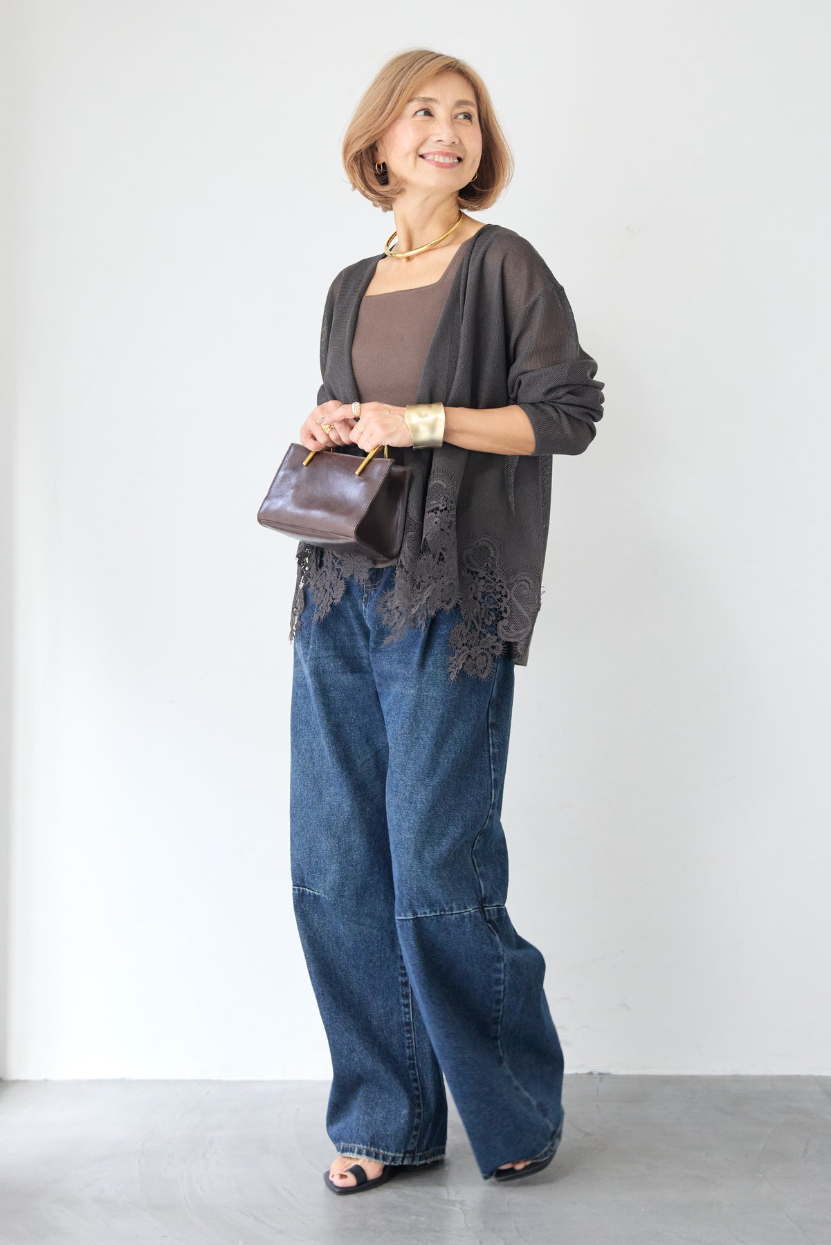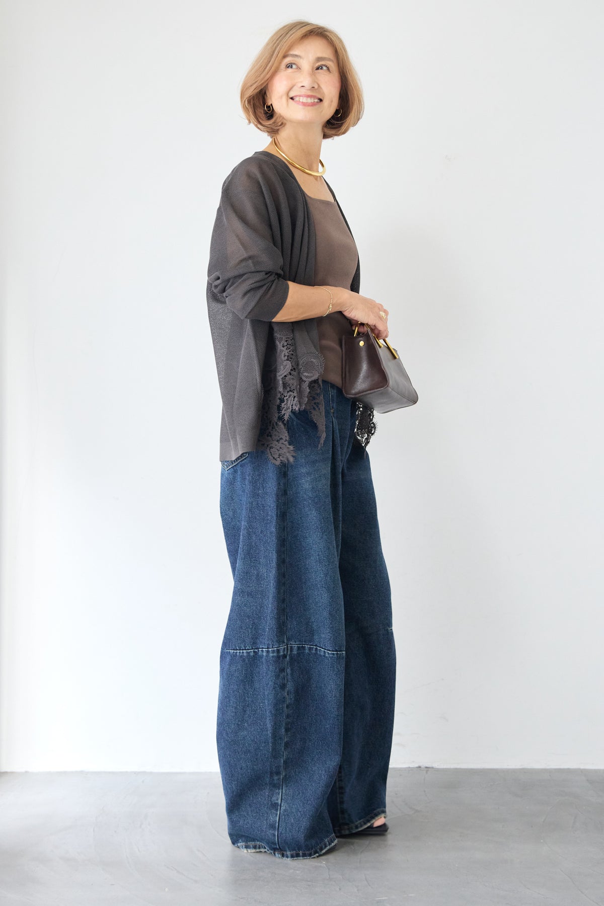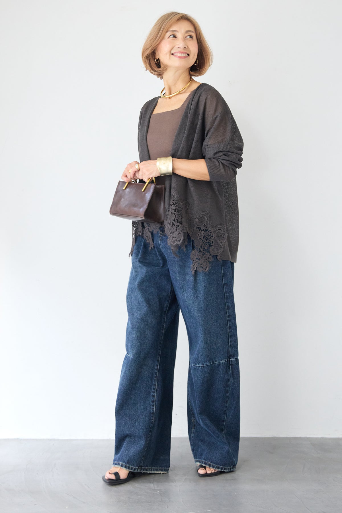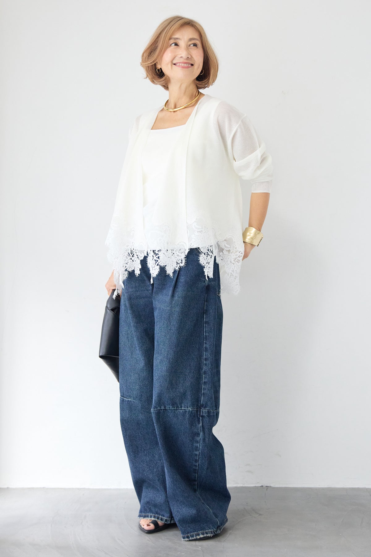 さらりと羽織るだけで縦のラインを強調し、スタイルアップ効果も期待できます。デニムでカジュアルダウンしたり、ワンピースに合わせてフォーマルなシーンに活用したりと、幅広い着こなしにマッチする一着です。