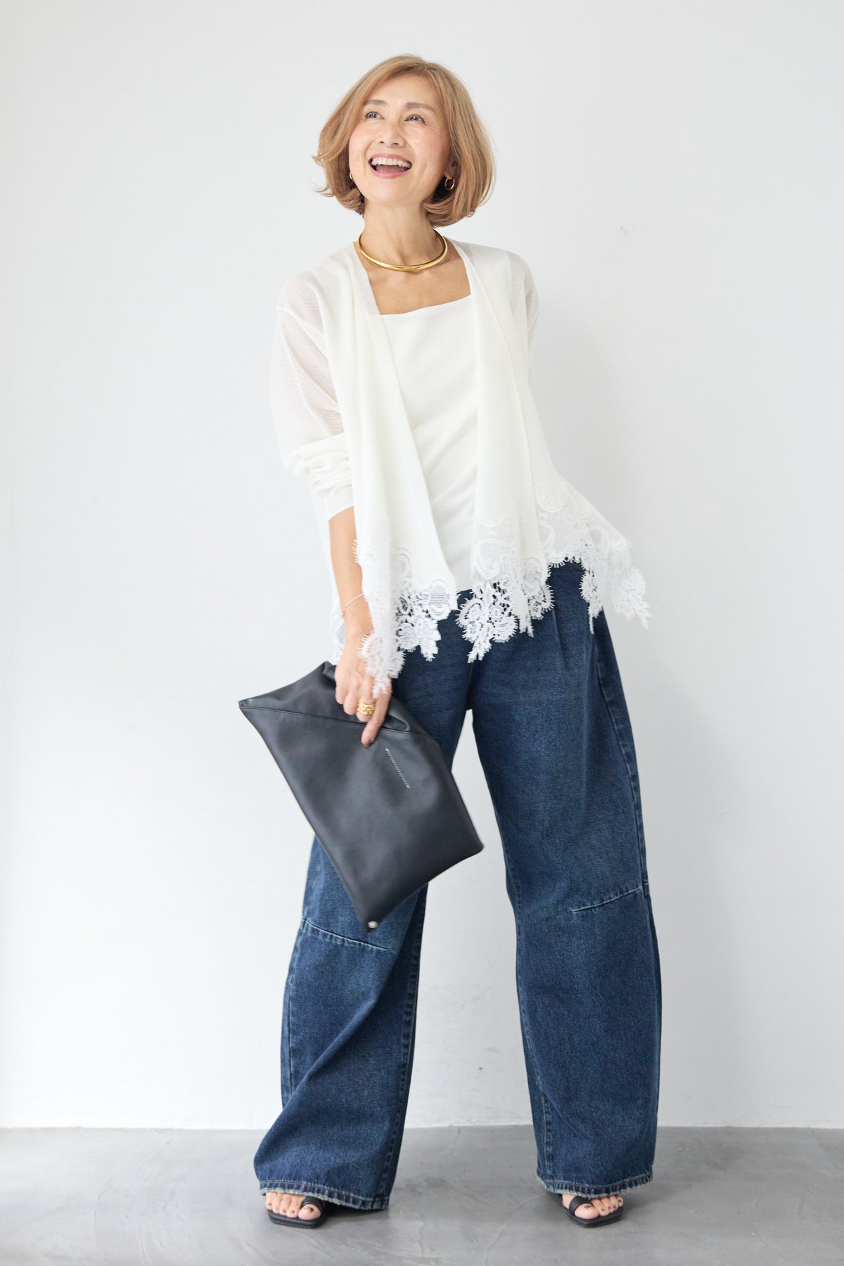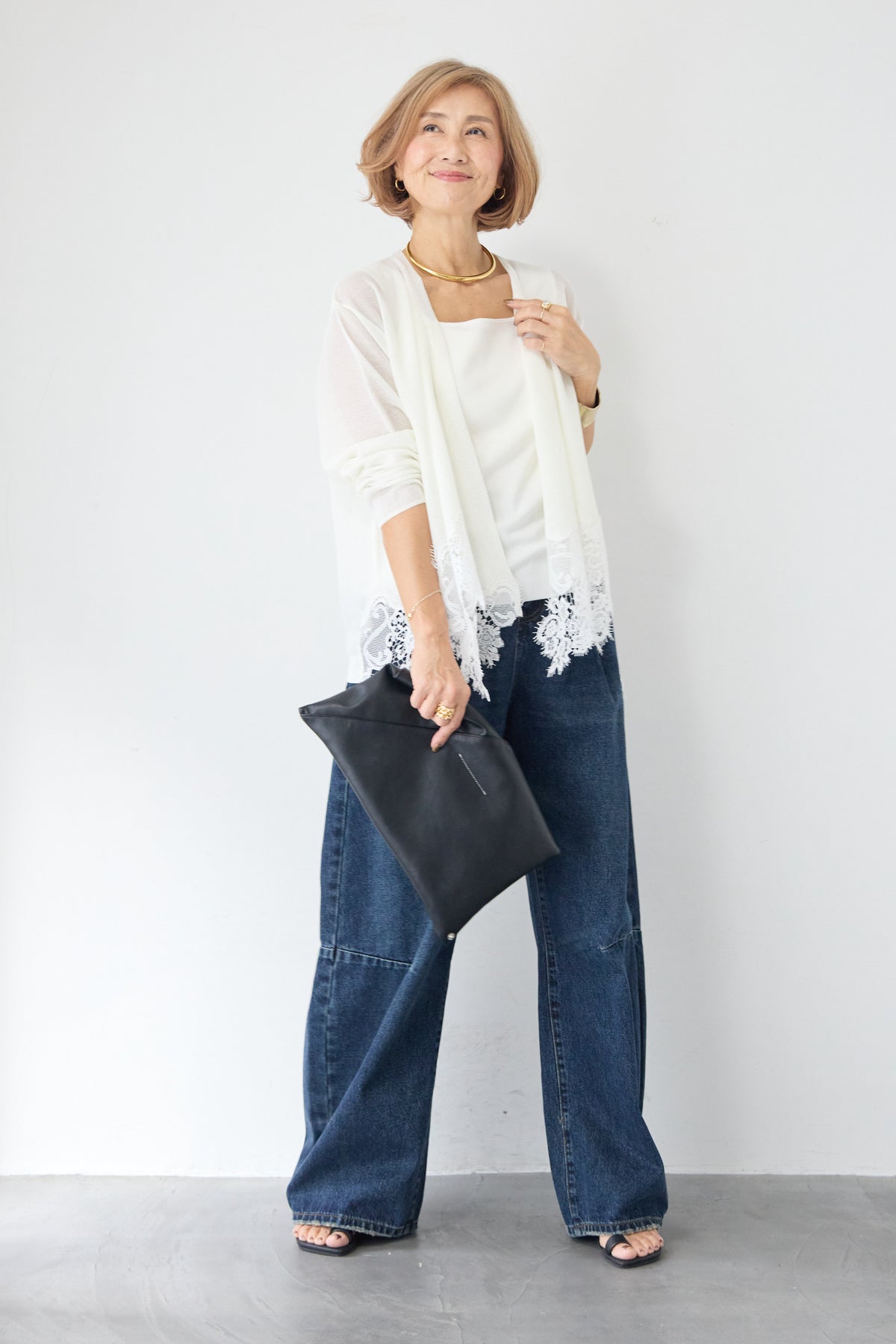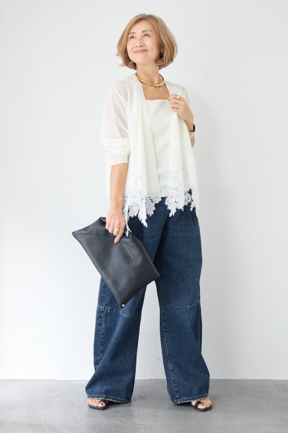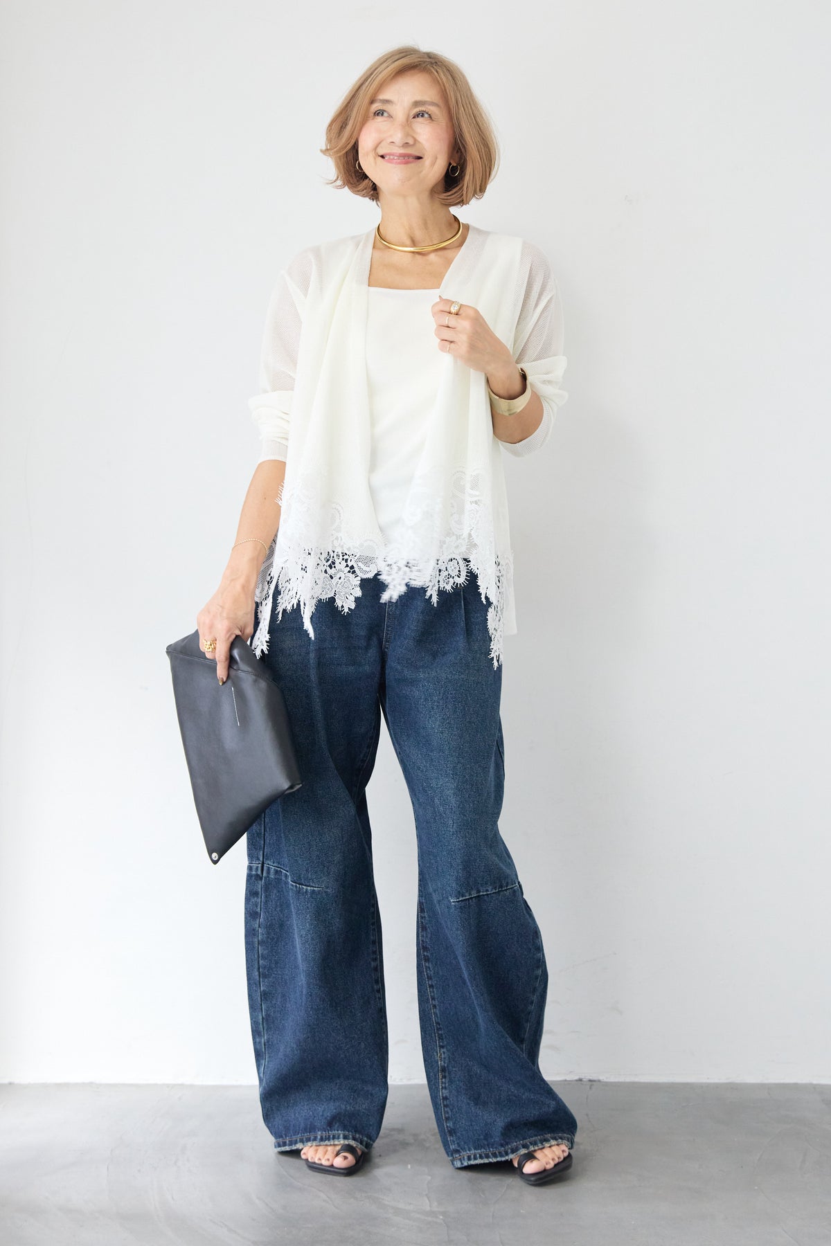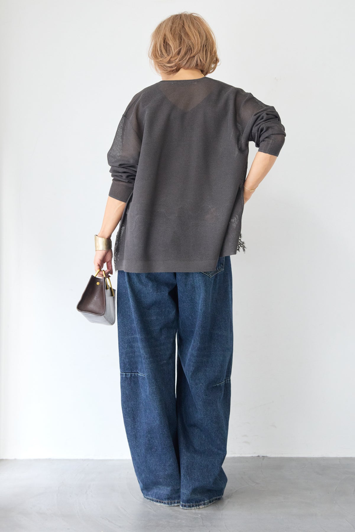 さらりと羽織るだけで縦のラインを強調し、スタイルアップ効果も期待できます。デニムでカジュアルダウンしたり、ワンピースに合わせてフォーマルなシーンに活用したりと、幅広い着こなしにマッチする一着です。