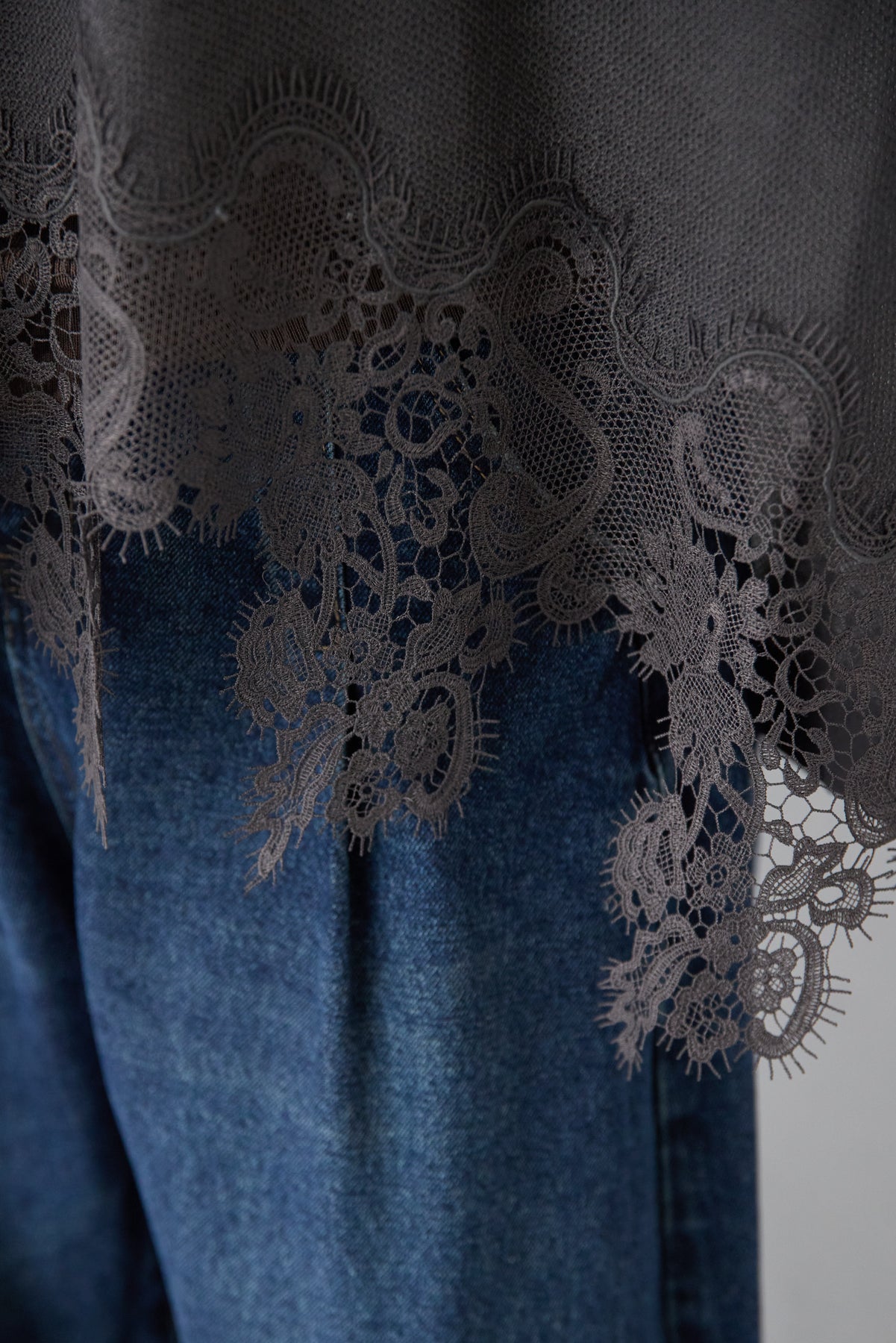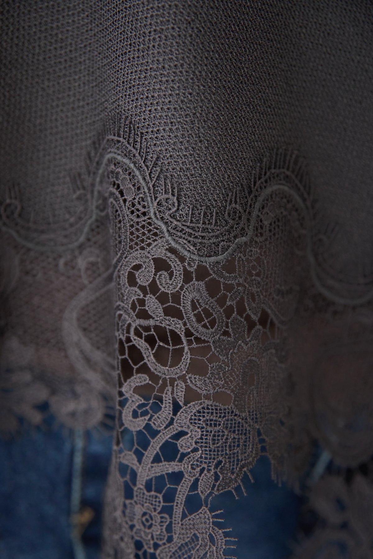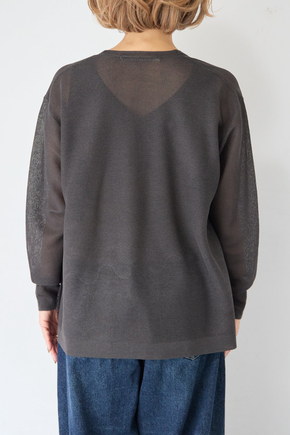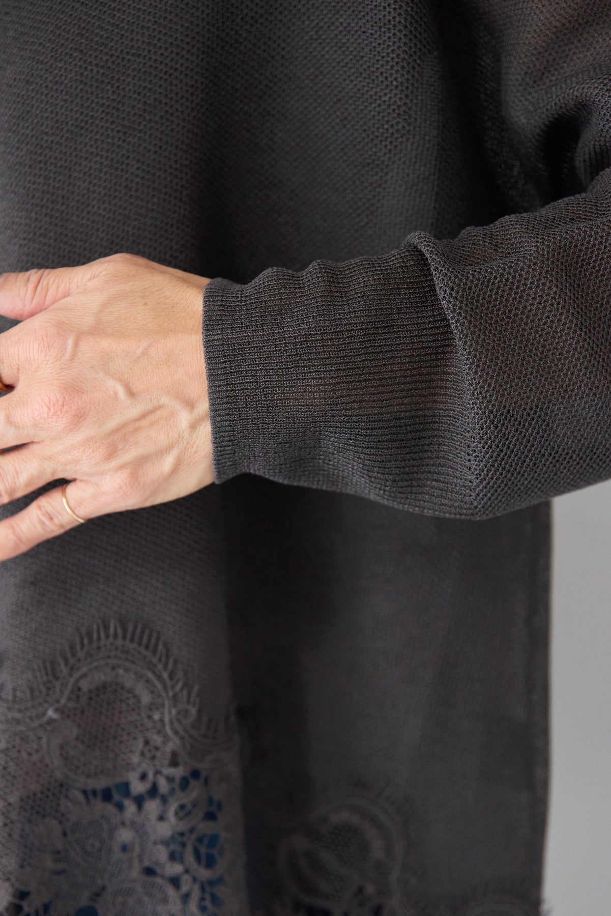 裾リバーレース切り替え シアーニットカーディガン
