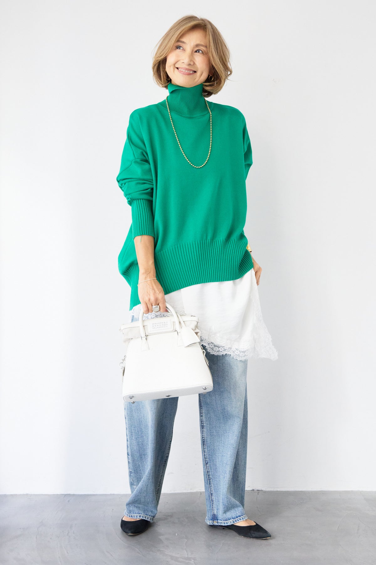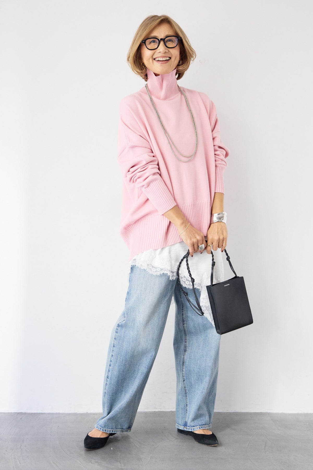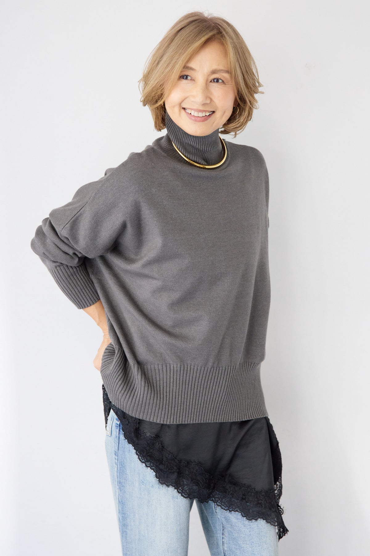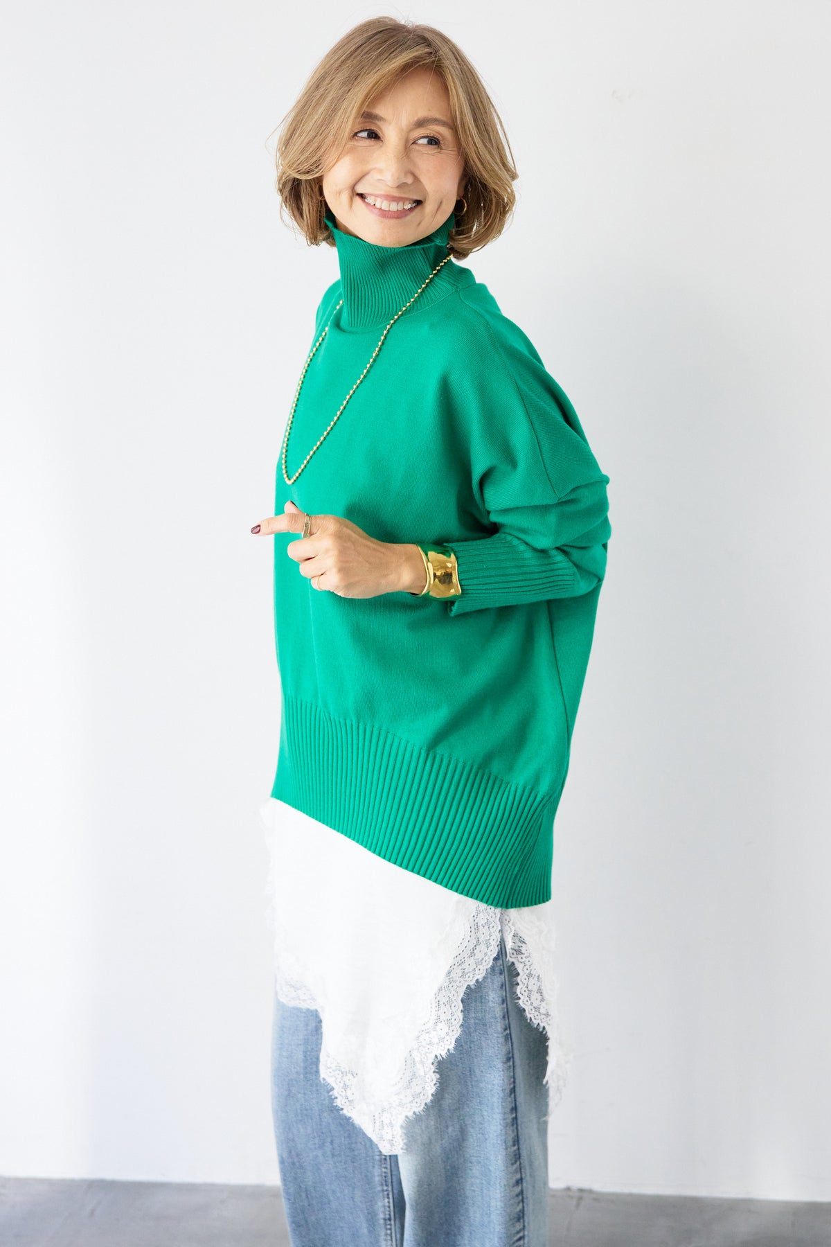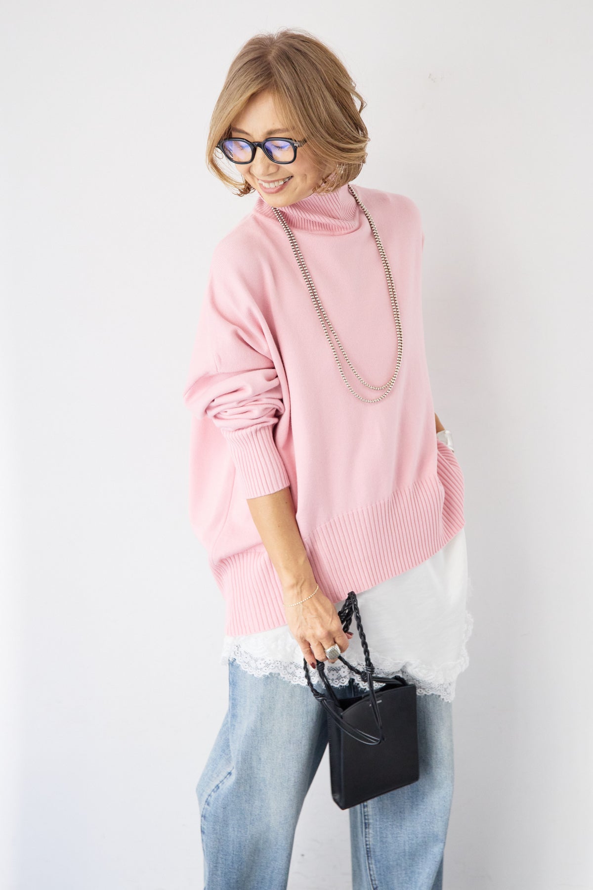 ゆるシルエットタートルネックニット/アシメレースキャミソール