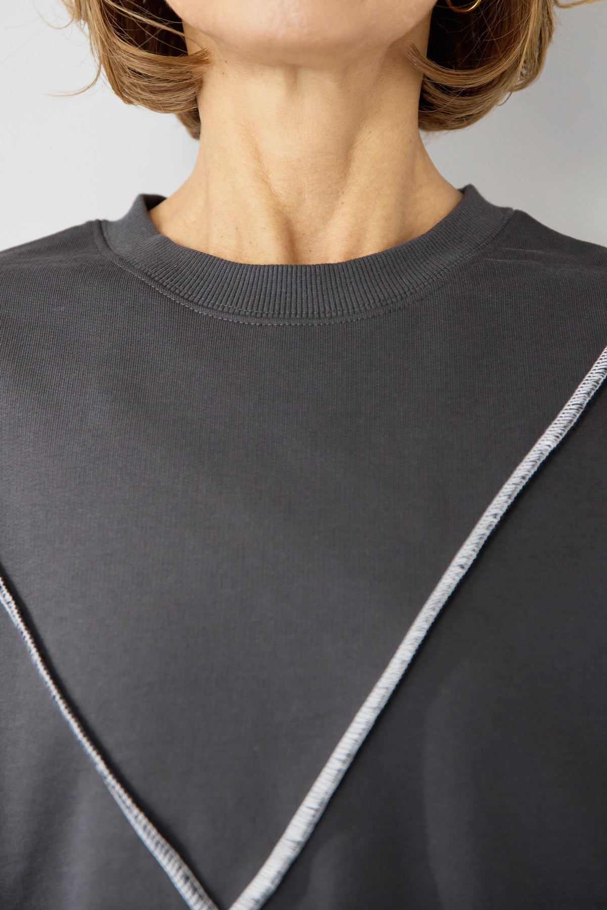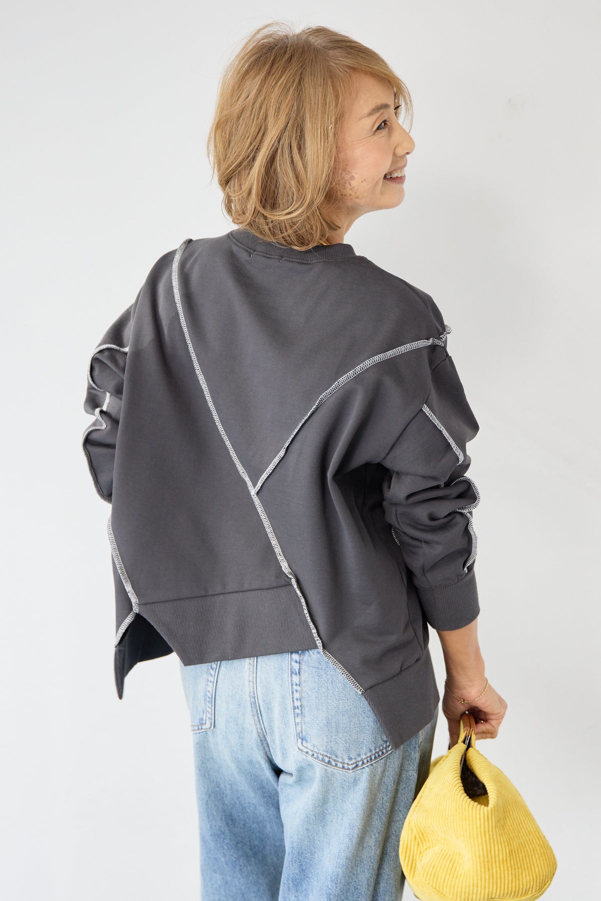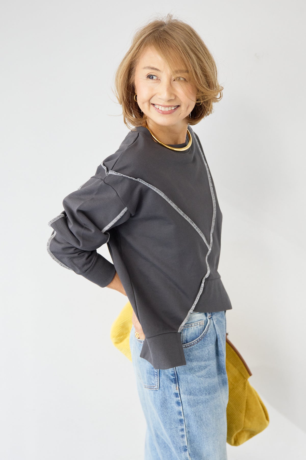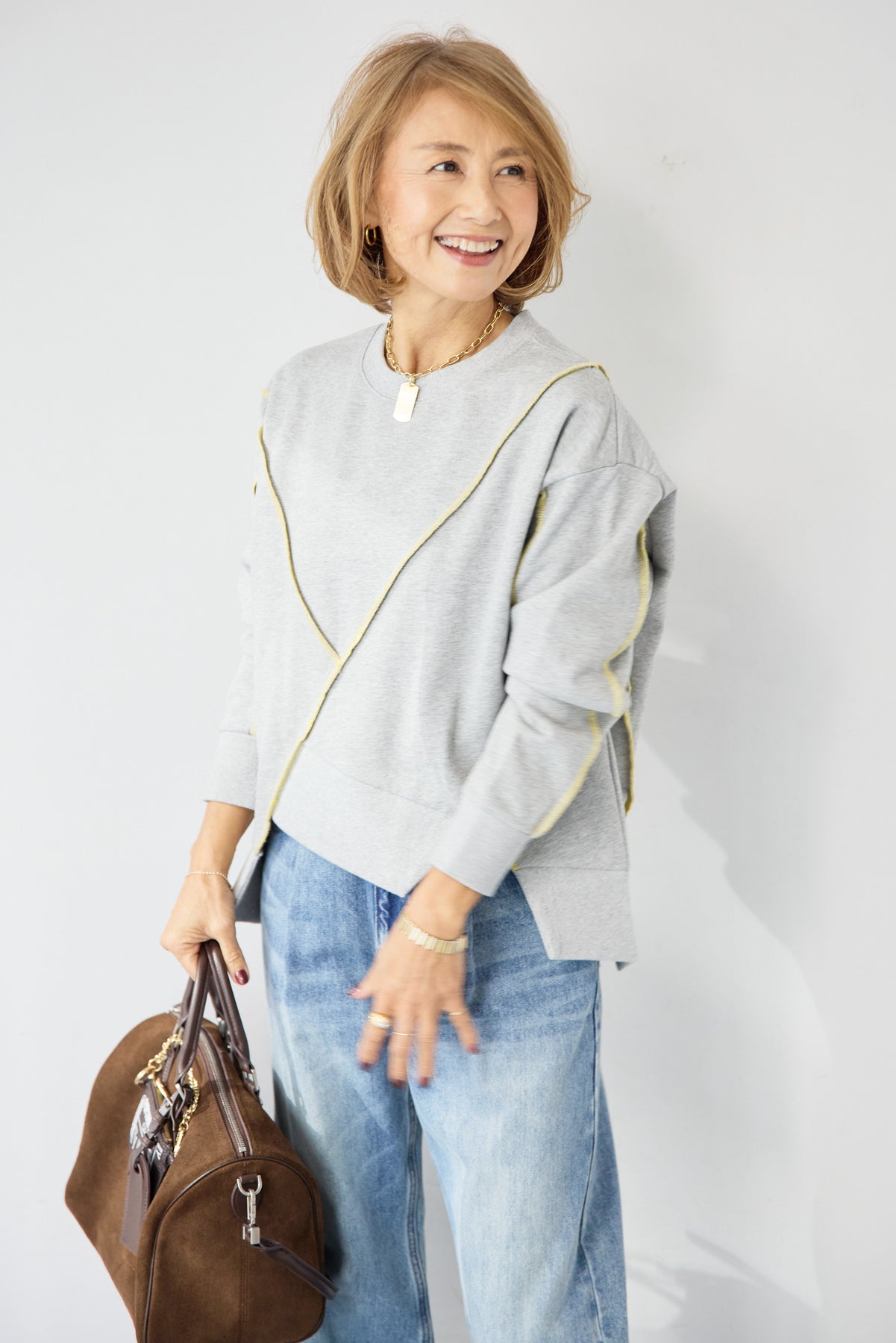 [SET]アウトシーム・配色ステッチプルオーバー+ウォッシャブルコクーンデニムパンツ(2set)