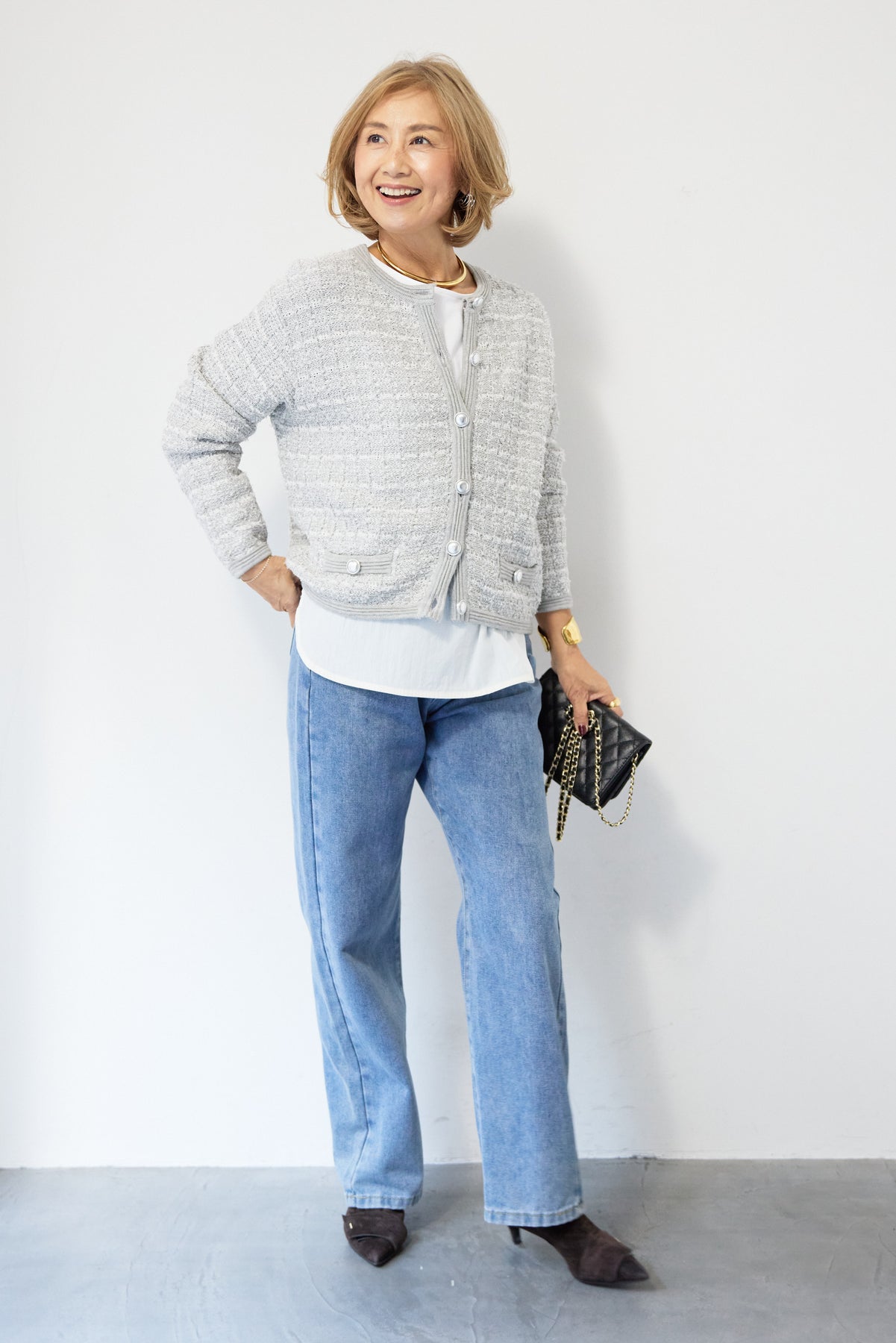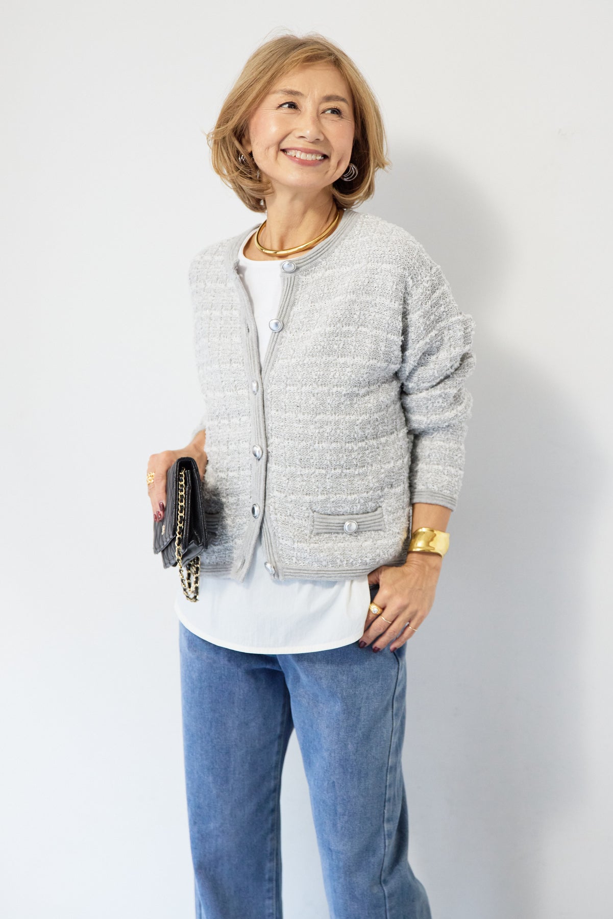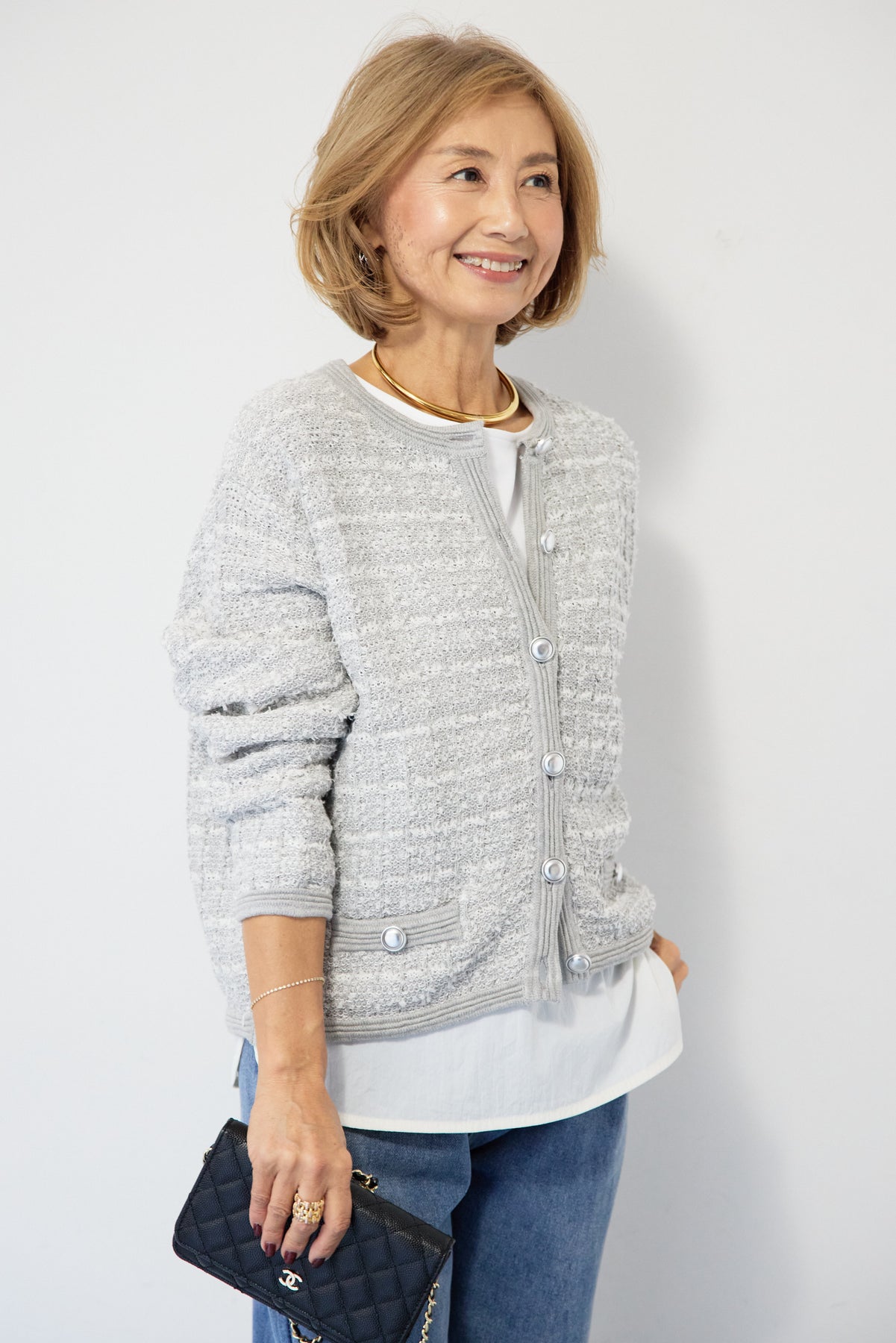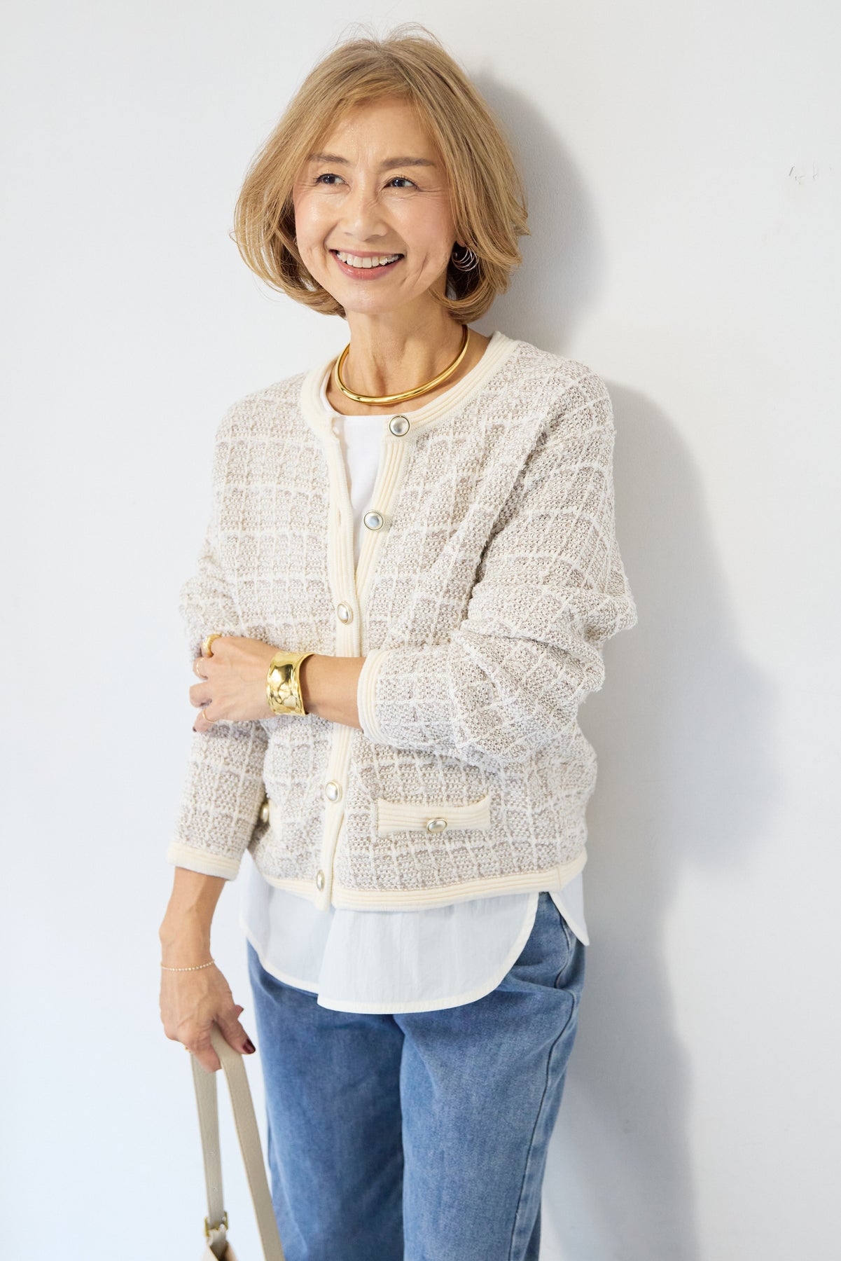 一枚で洗練されたレイヤード風スタイルが完成する、異素材コンビ・ノースリーブプルオーバー。上部には柔らかなカットソー素材、裾部分には軽やかなシャツ生地を組み合わせ、同系色のトーンでまとめながらも奥行きのある表情に仕上げました。体のラインを拾いすぎない程よいAラインシルエットが、気になる腰回りを自然にカバー。サイドに施された深めのラウンドスリットが、ボトムスとのバランスを整え、横顔にも軽やかな抜け感を演出します。詰まりすぎない絶妙なクルーネックデザインは、アクセサリーとの相性も抜群。シンプルなパンツ合わせでも手抜き感のない、大人のこなれスタイルを叶えてくれる一着です。インナーとしても、メインのトップスとしても、ロングシーズン着回しの利く万能アイテムです。