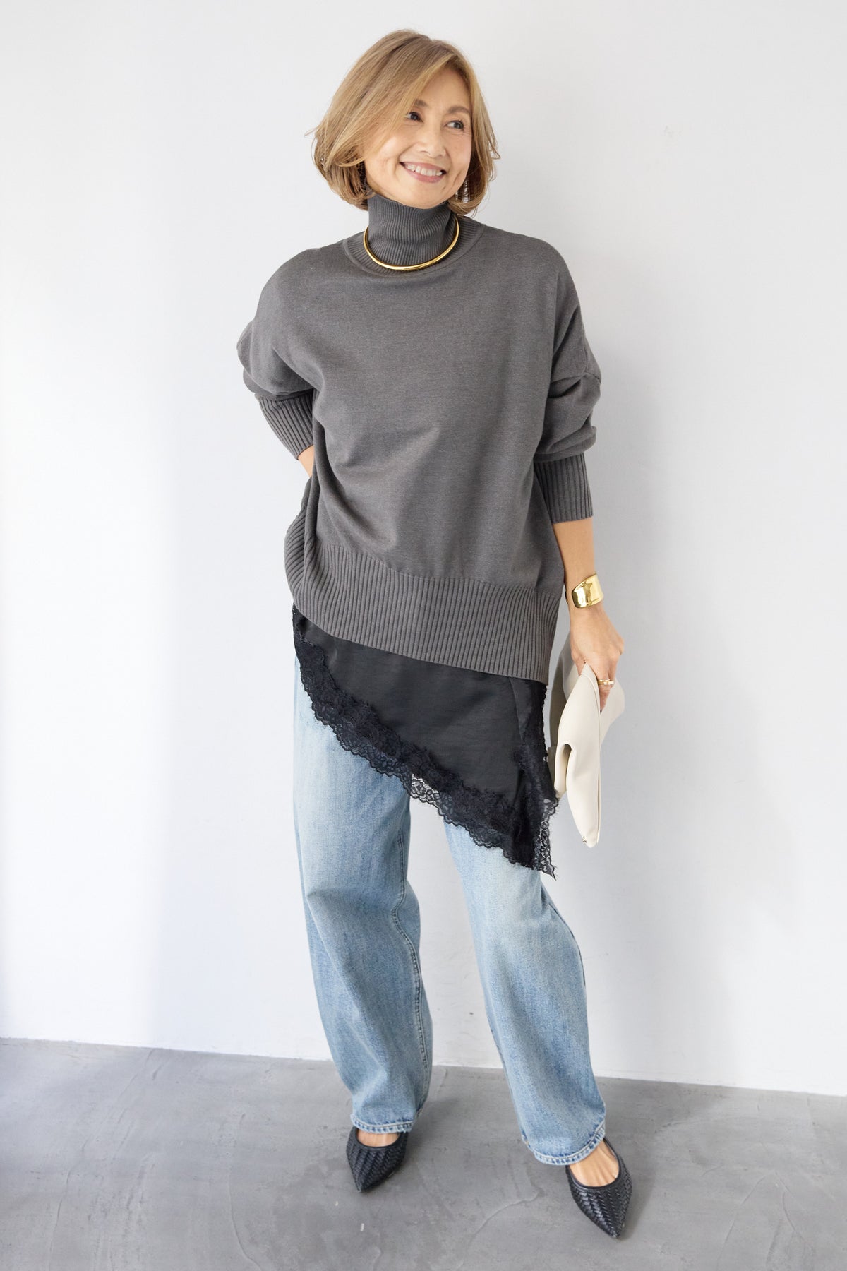 ゆるシルエットタートルネックニット