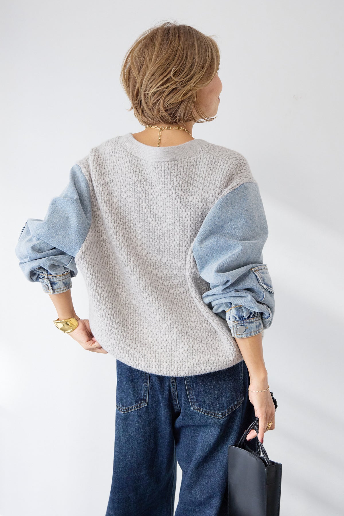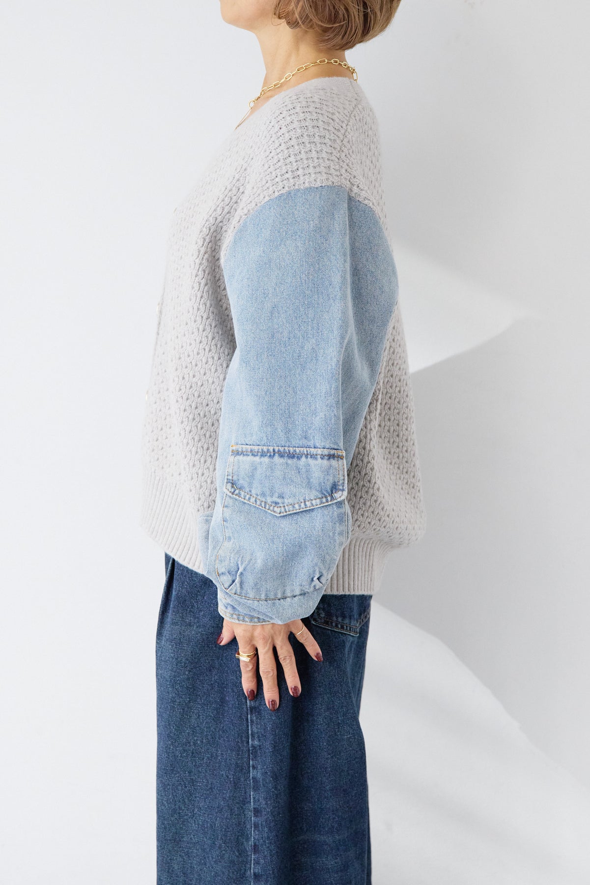 デニムスリーブニットカーディガン
