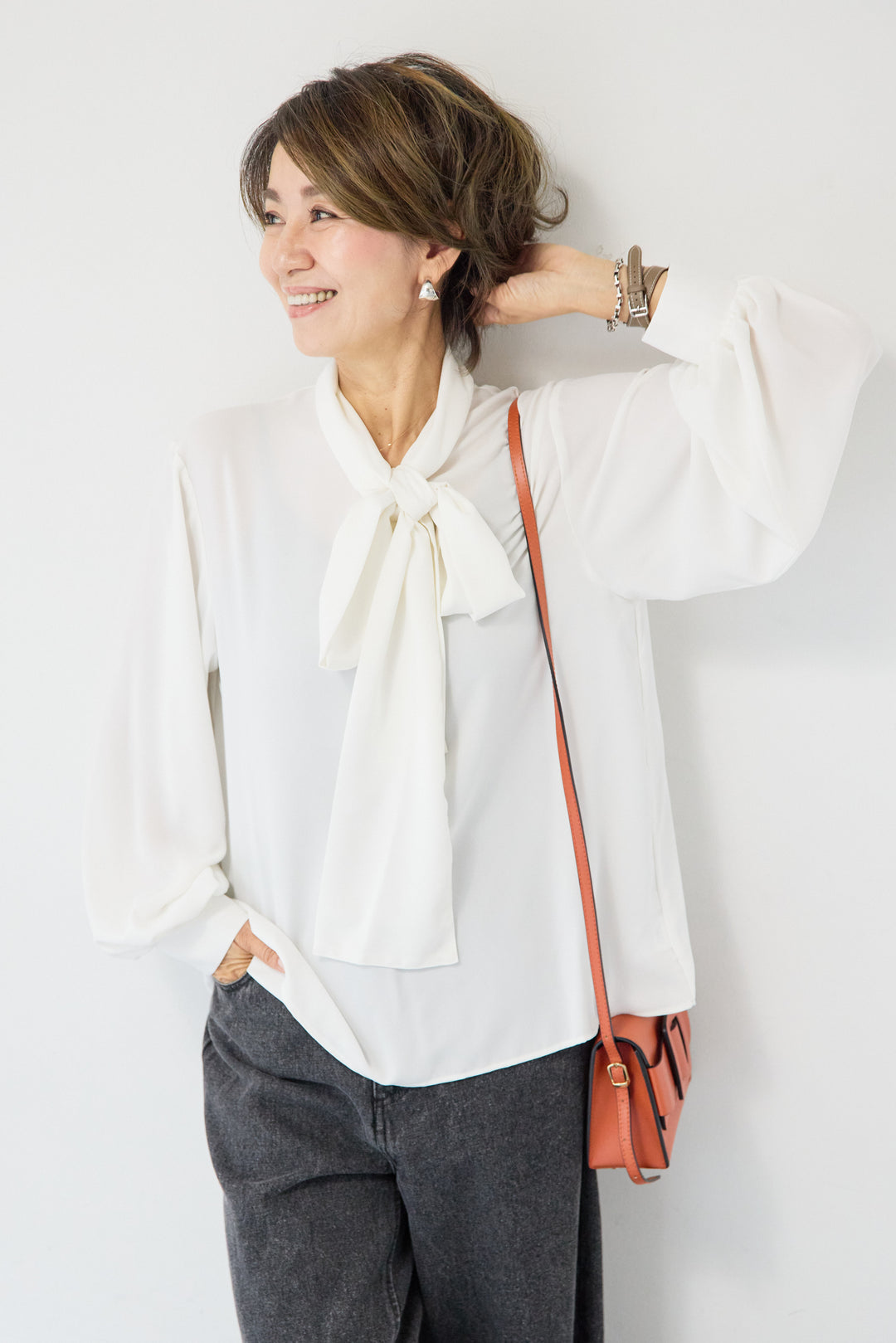 [SET]ボウタイデニムシャツ+フラワーエンブロイダリーワイドパンツ(2set)