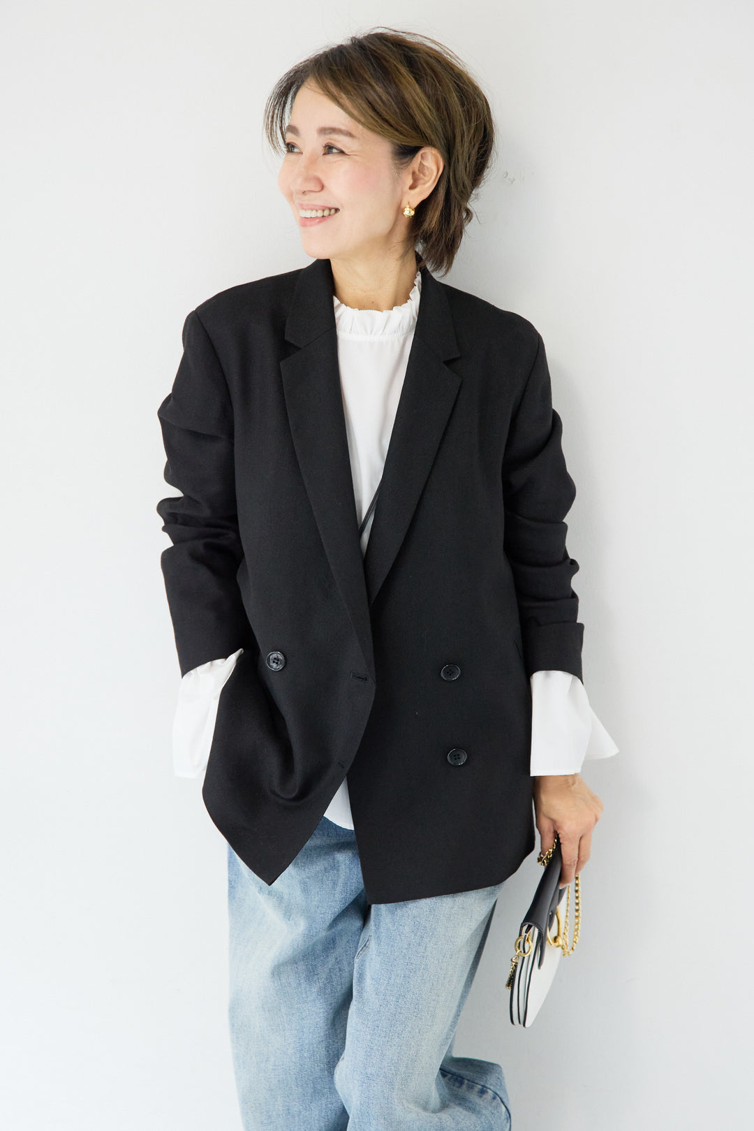 [SET]Vネックオーバーサイズデニムジャケット+ウォッシャブルコクーンデニムパンツ(2set)