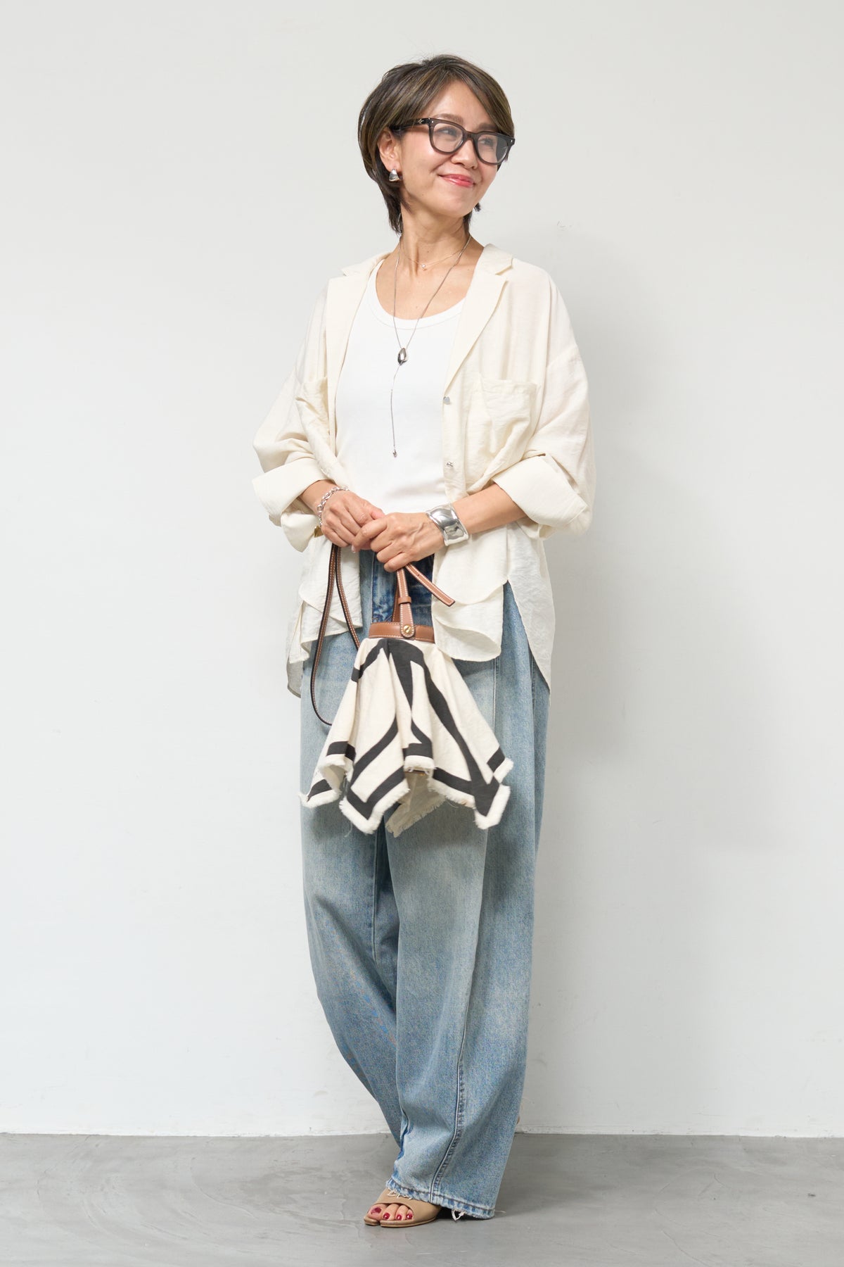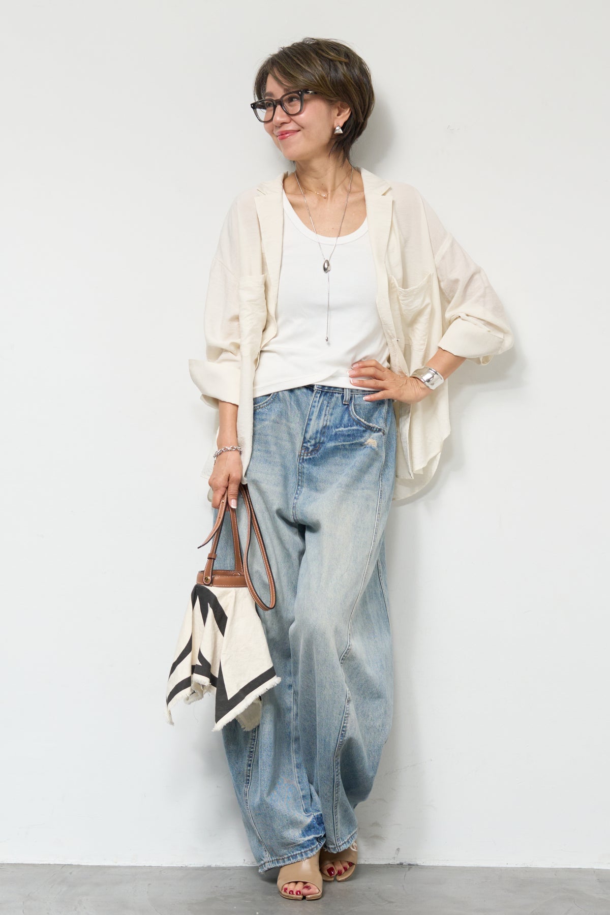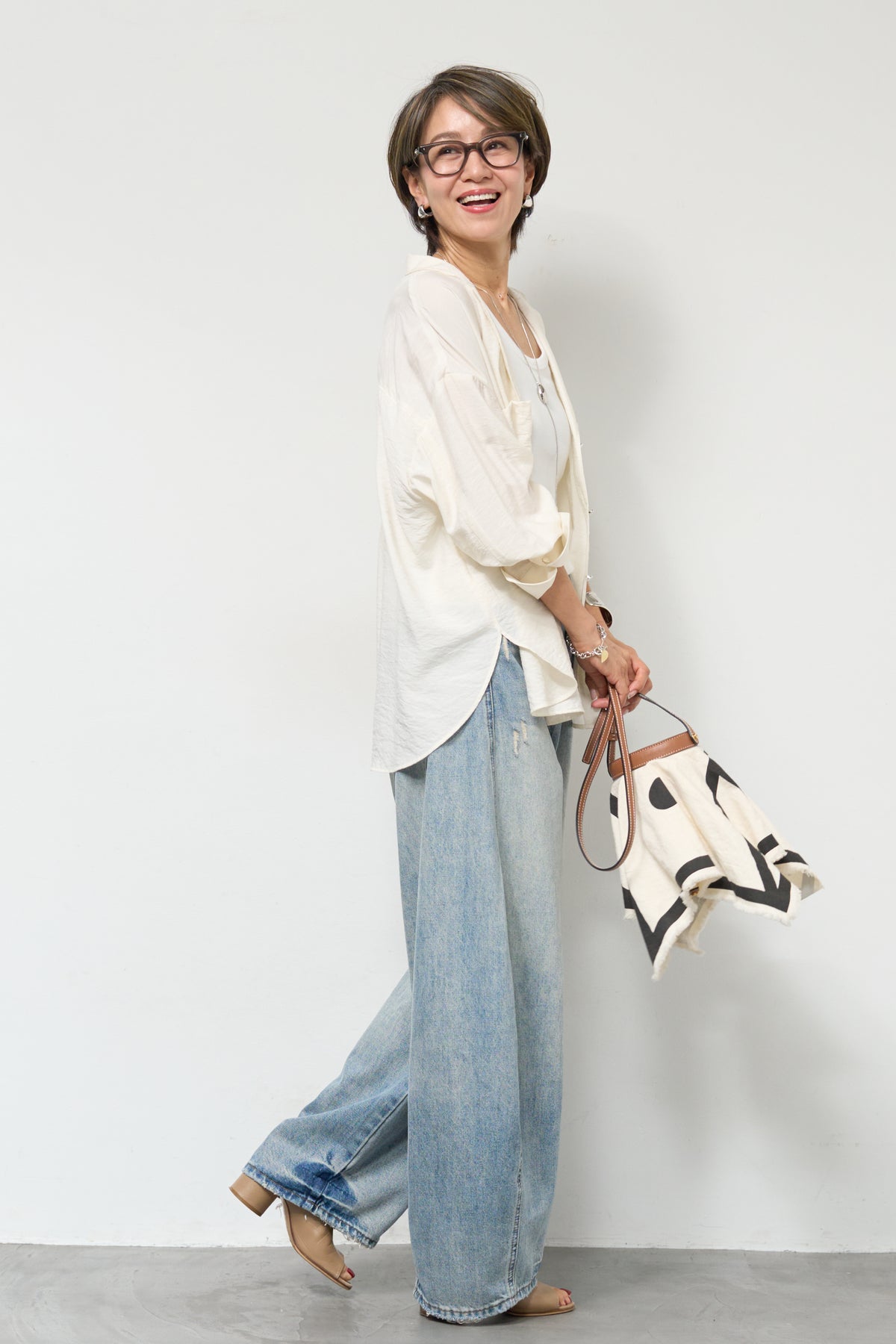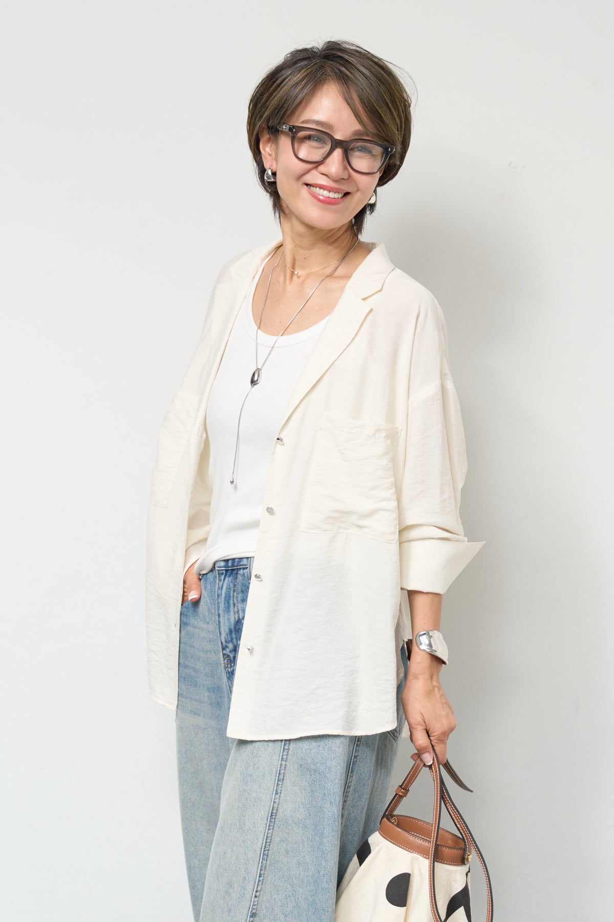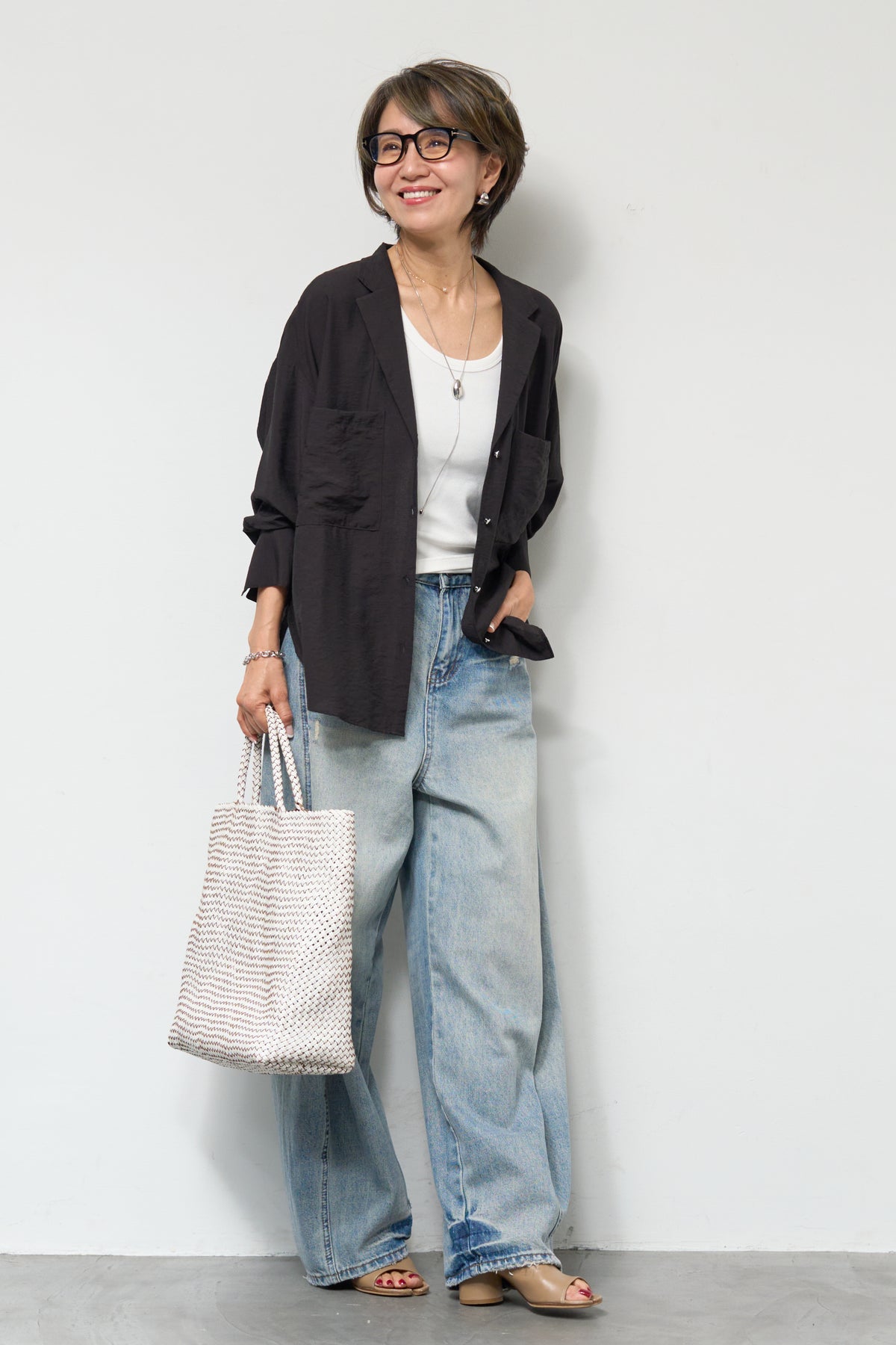 軽やかな透け感が魅力のシアーシャツジャケット。ほんのりと光沢のある柔らかな素材が、羽織るだけで上品で涼しげな印象に仕上げてくれます。ゆったりとしたシルエットとドロップショルダーで体のラインを拾いにくく、さりげなく体型カバーも叶う一枚。ヒップにかかる前後差のある着丈で、どの角度から見てもバランス良く決まります。大きめのフロントポケットや華奢なボタンが程よいアクセントになり、シンプルながらもこなれた雰囲気に。袖口は広めのカフスデザインで、折り返して着こなしのアレンジも楽しめます。インナー次第でロングシーズン活躍し、Tシャツやタンクトップの上からさらっと羽織るだけで、抜け感のある大人カジュアルスタイルが完成します。