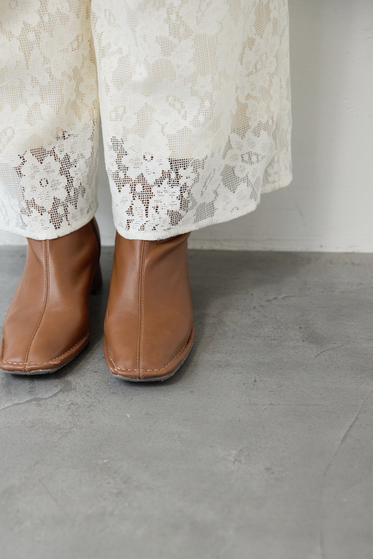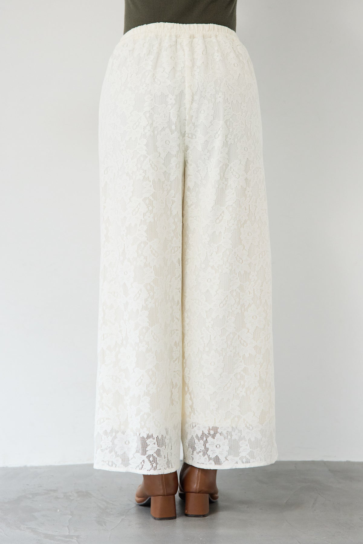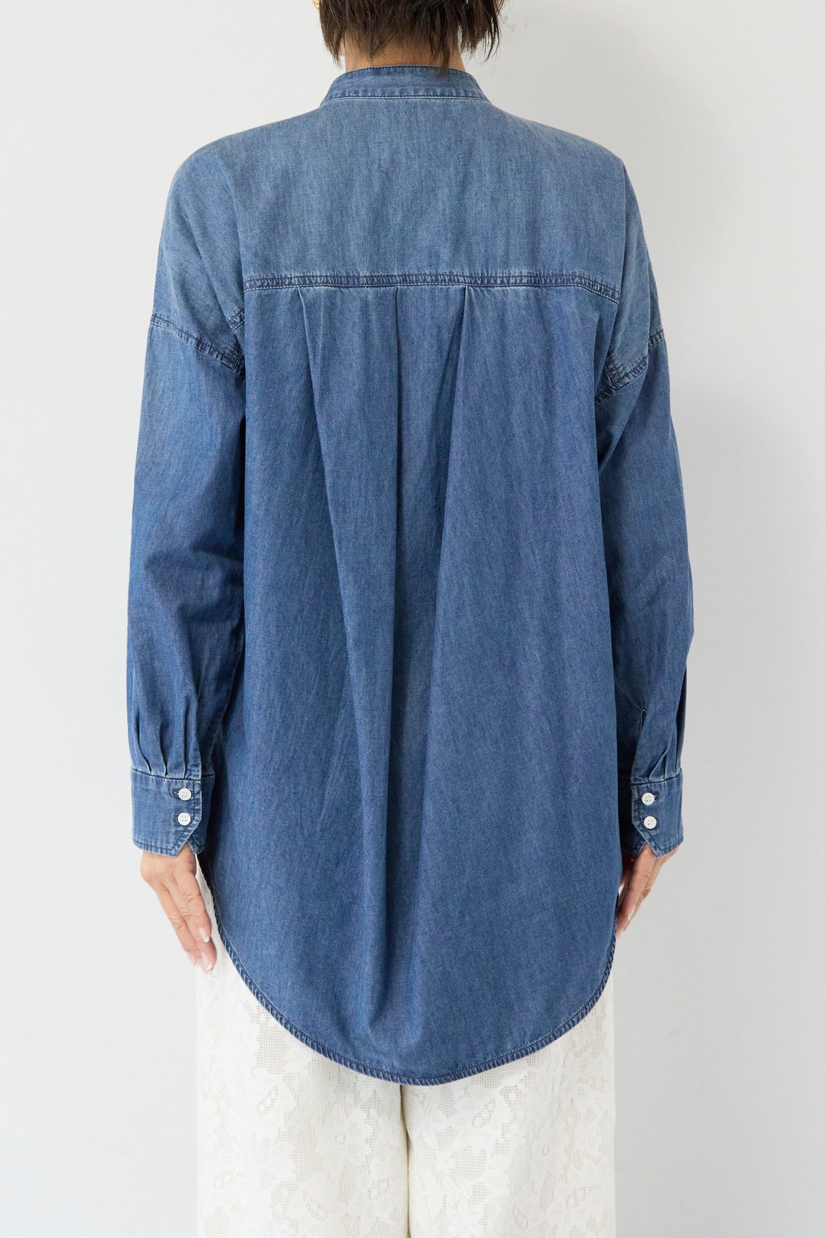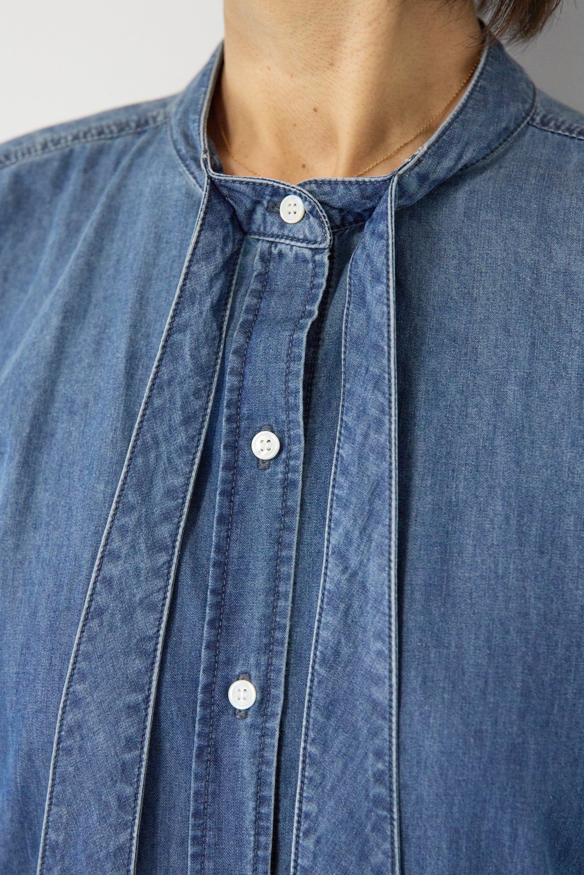 ボウタイデニムシャツ/フラワーエンブロイダリーワイドパンツ