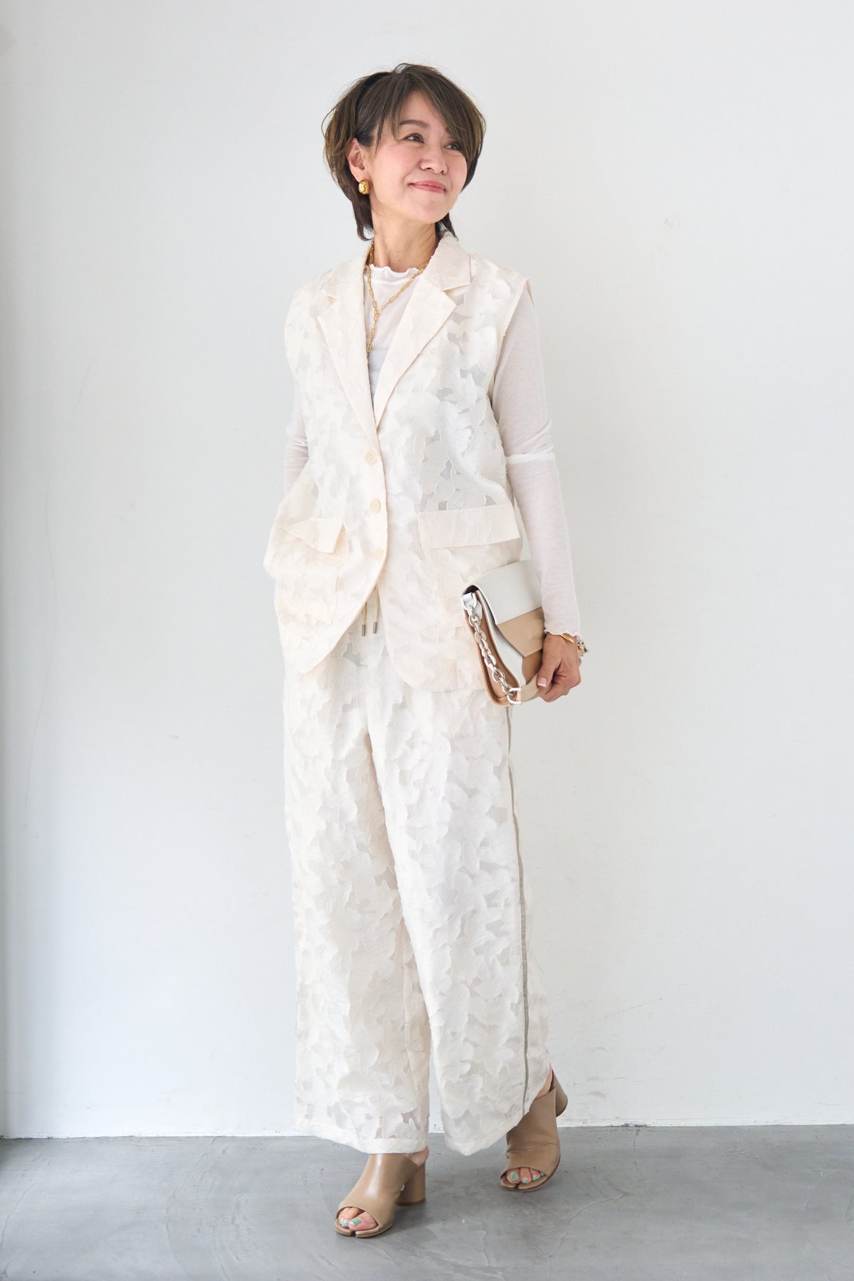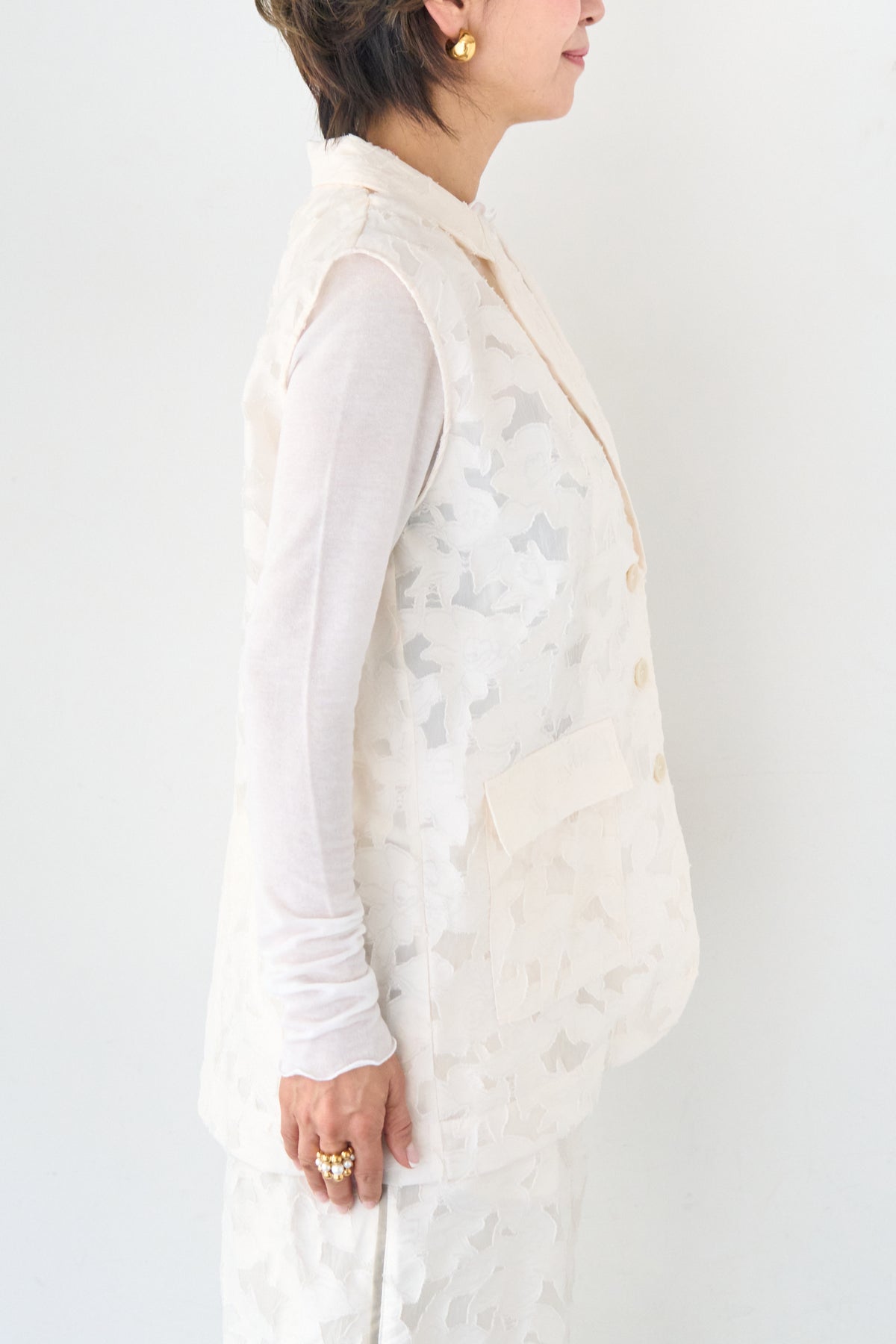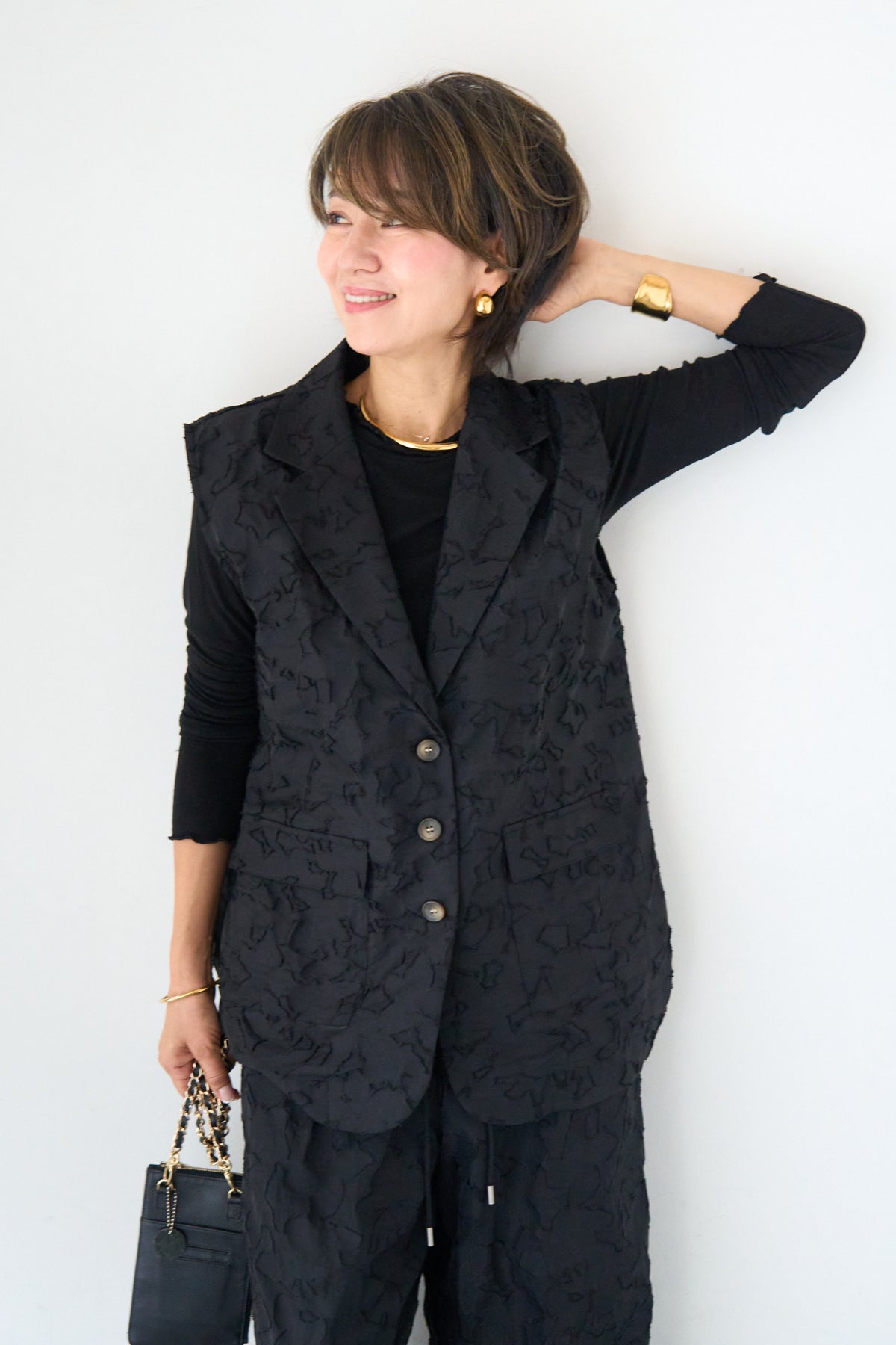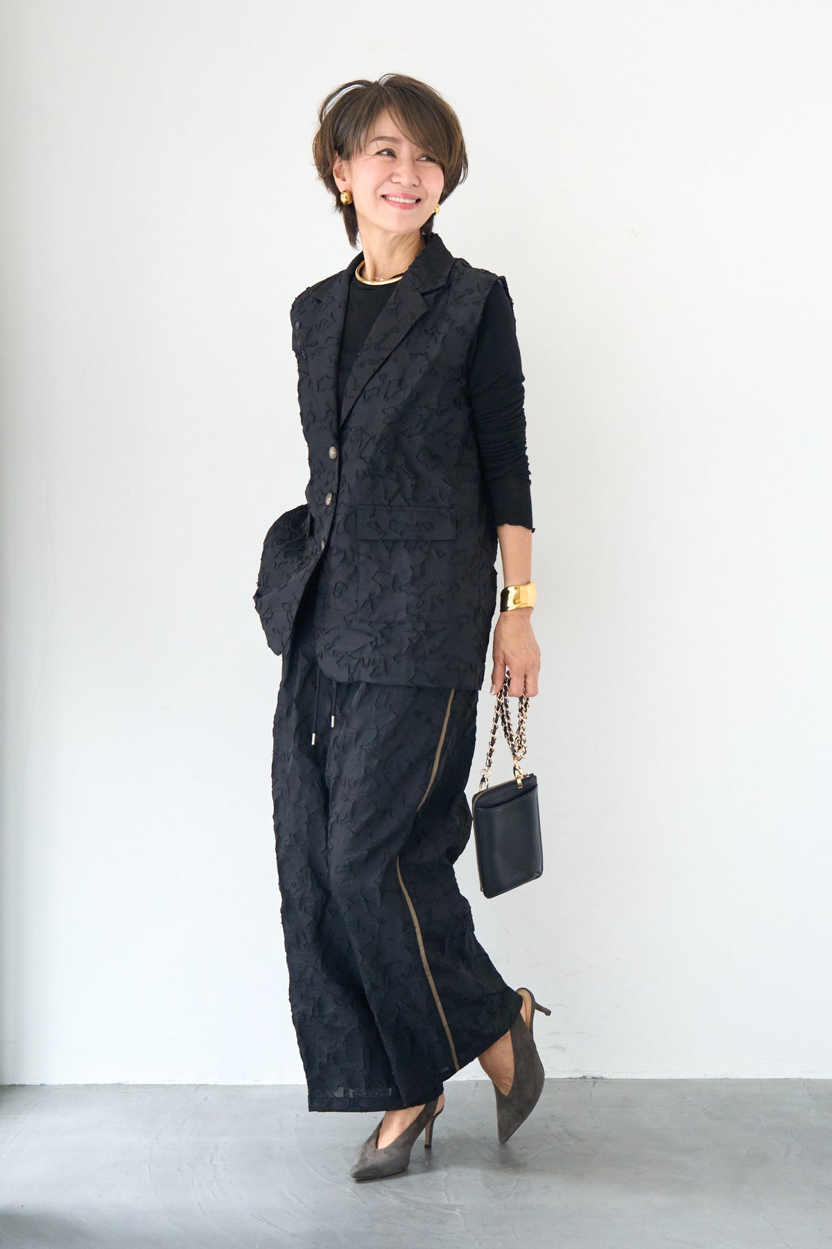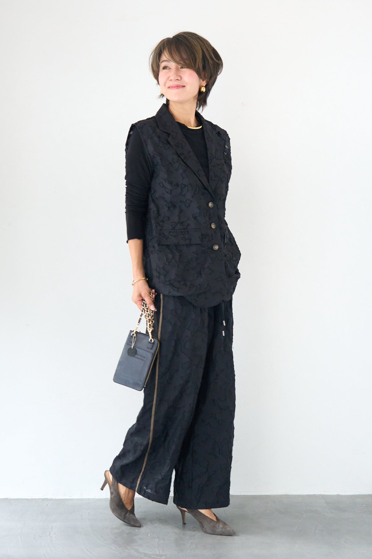 [SET]【セットアップ対応】フェミニンジャガード テーラードロングジレ+【セットアップ対応】フェミニンジャガード イージーワイドパンツ(2set)
