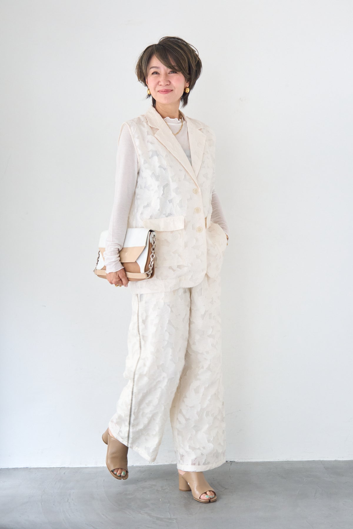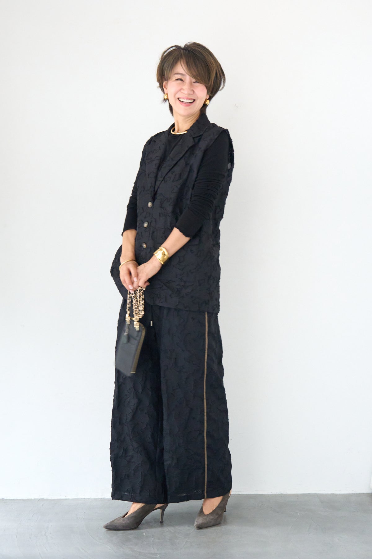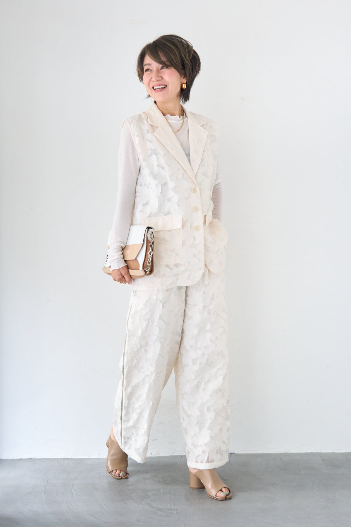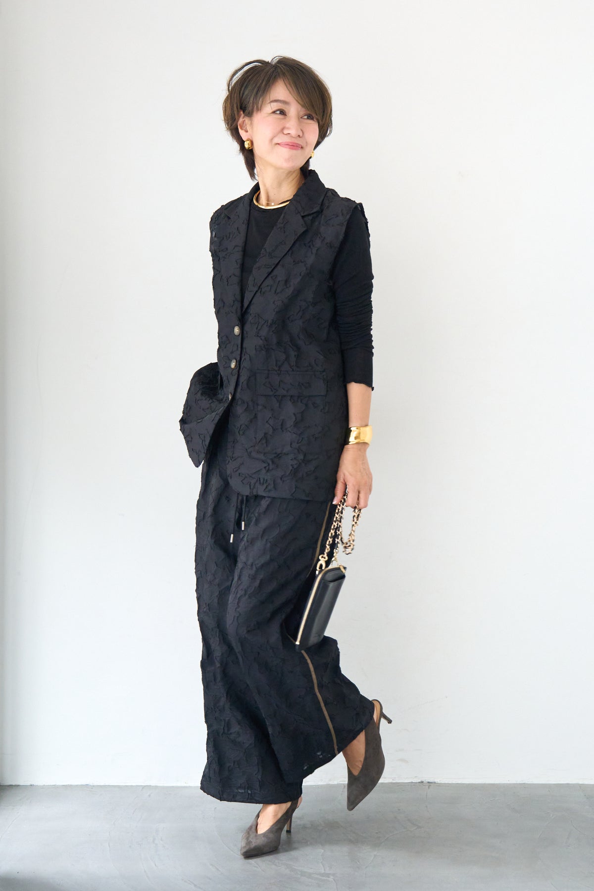 [SET]【セットアップ対応】フェミニンジャガード テーラードロングジレ+【セットアップ対応】フェミニンジャガード イージーワイドパンツ(2set)