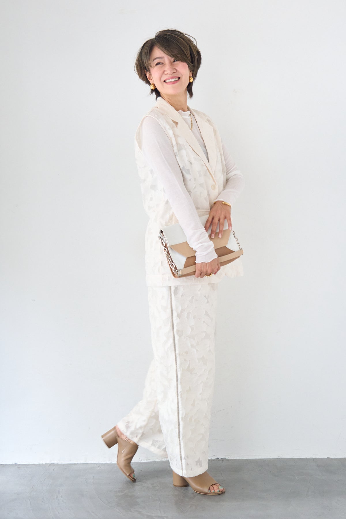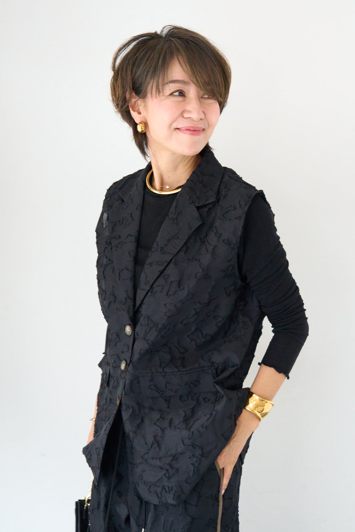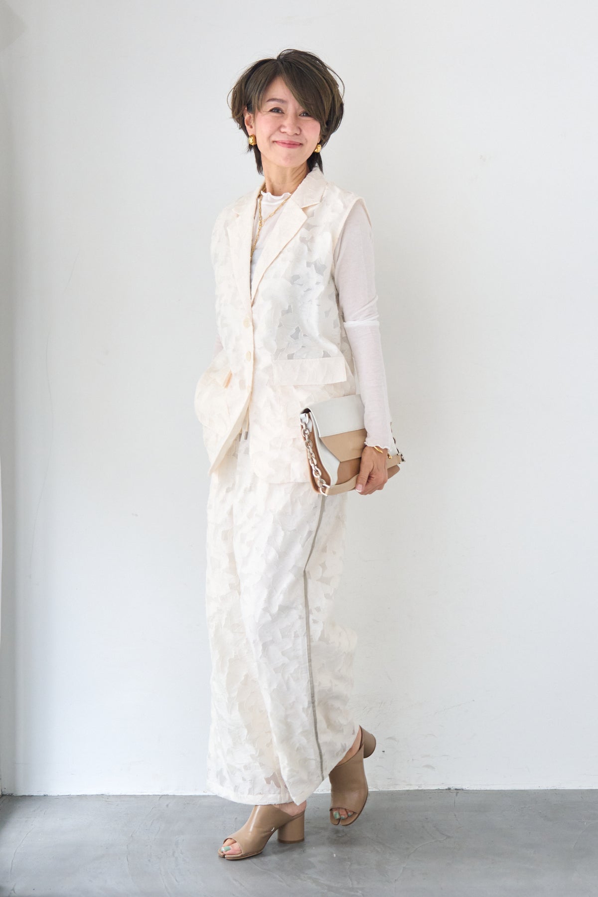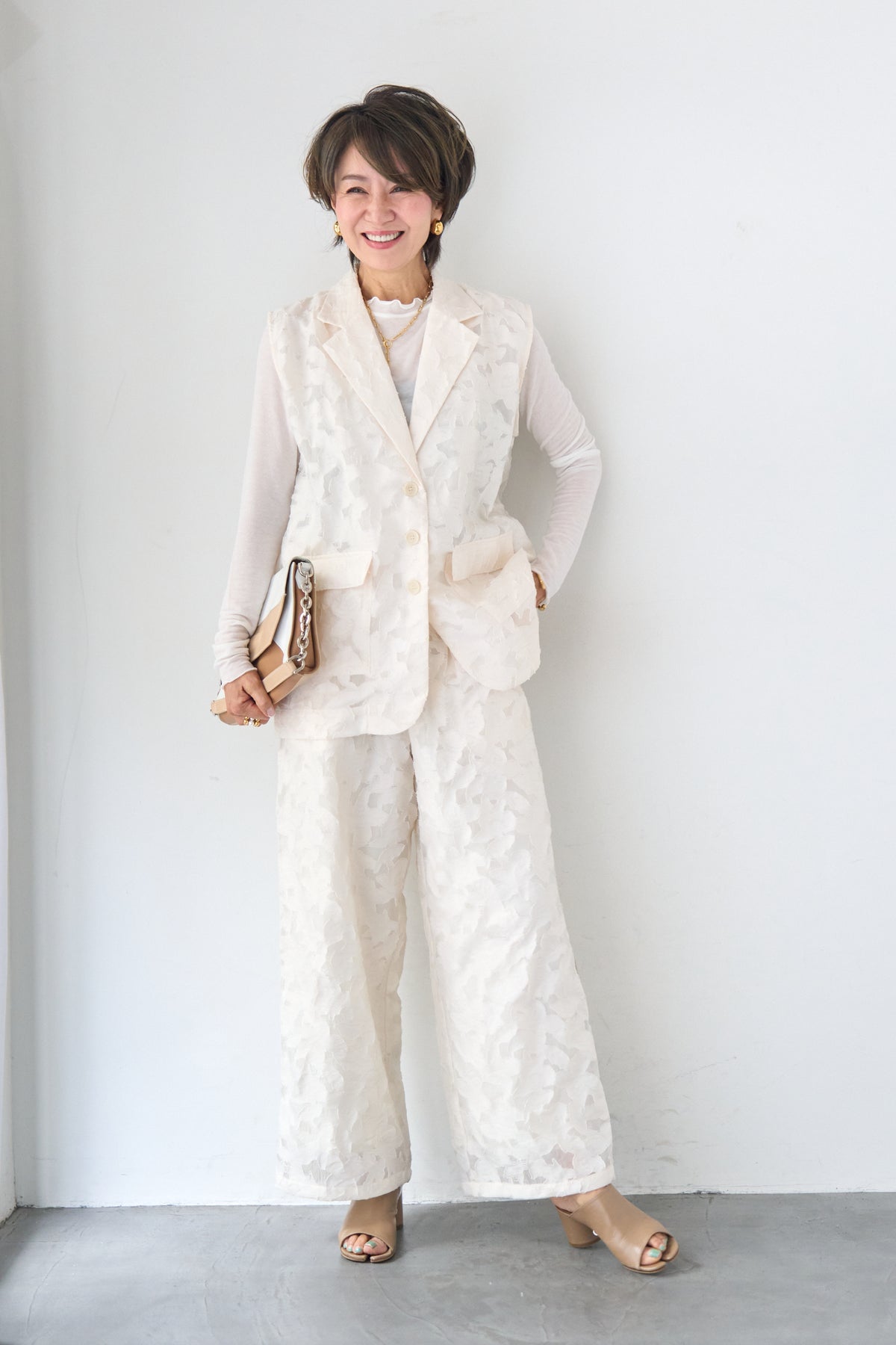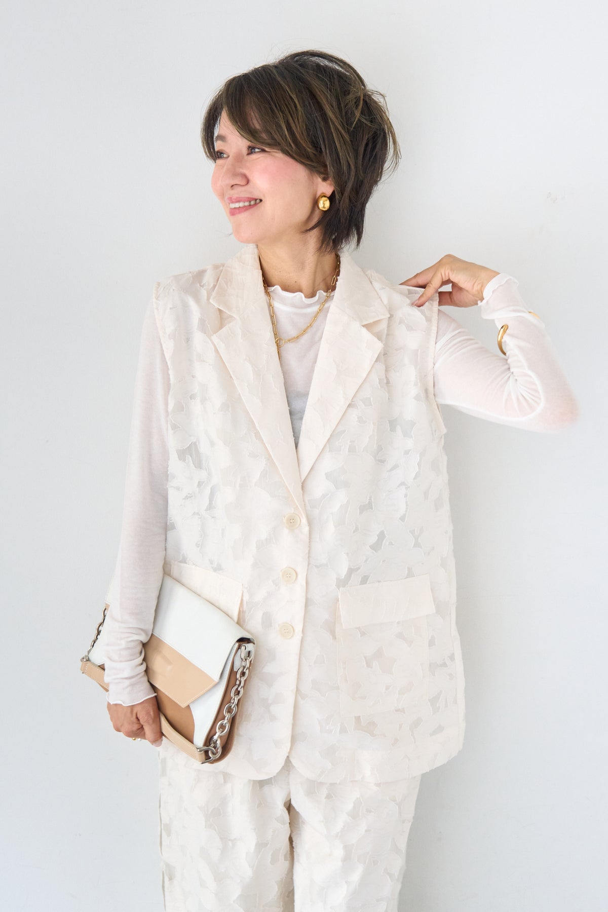 [SET]【セットアップ対応】フェミニンジャガード テーラードロングジレ+【セットアップ対応】フェミニンジャガード イージーワイドパンツ(2set)