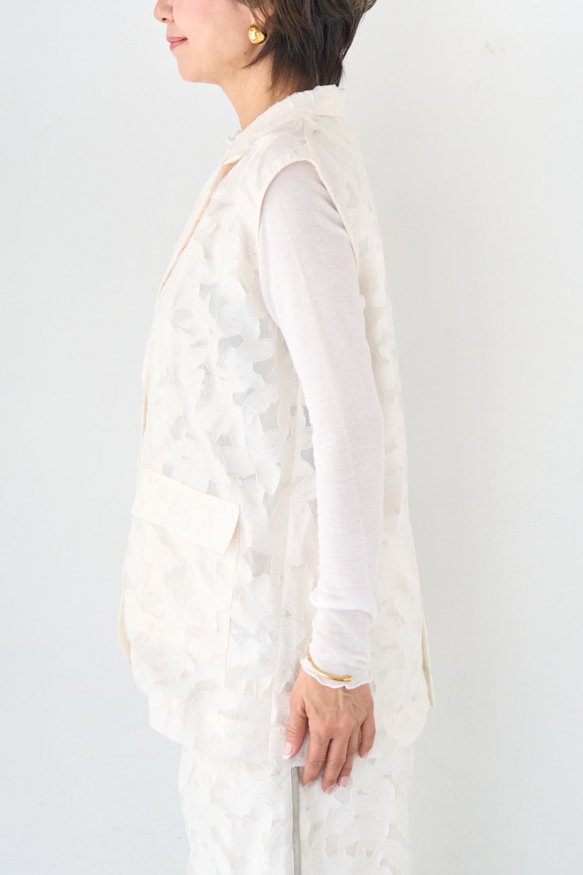 ◆ 【セットアップ対応】フェミニンジャガード テーラードロングジレ