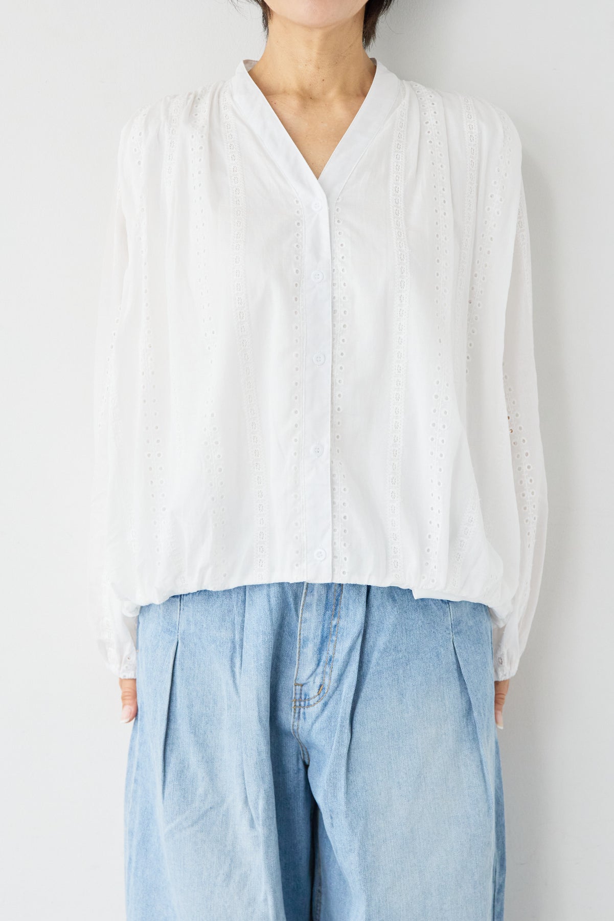 Vネックカットレースブラウス
