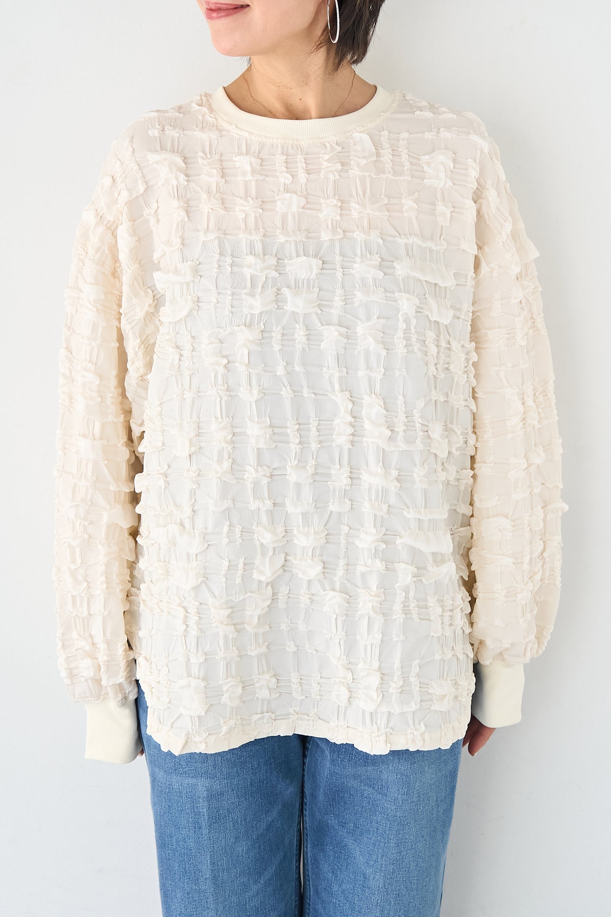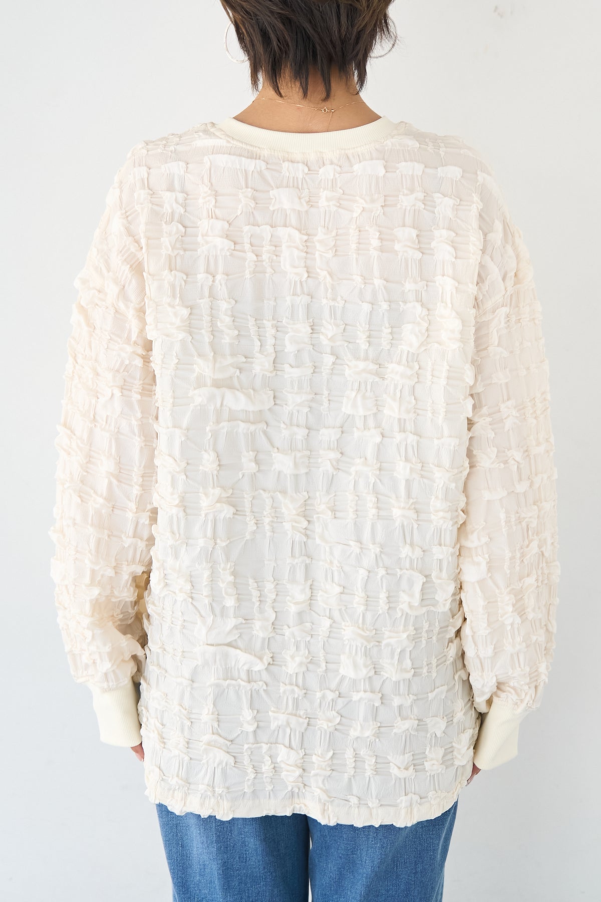 シャーリングジャガード ロングスリーブカットソー