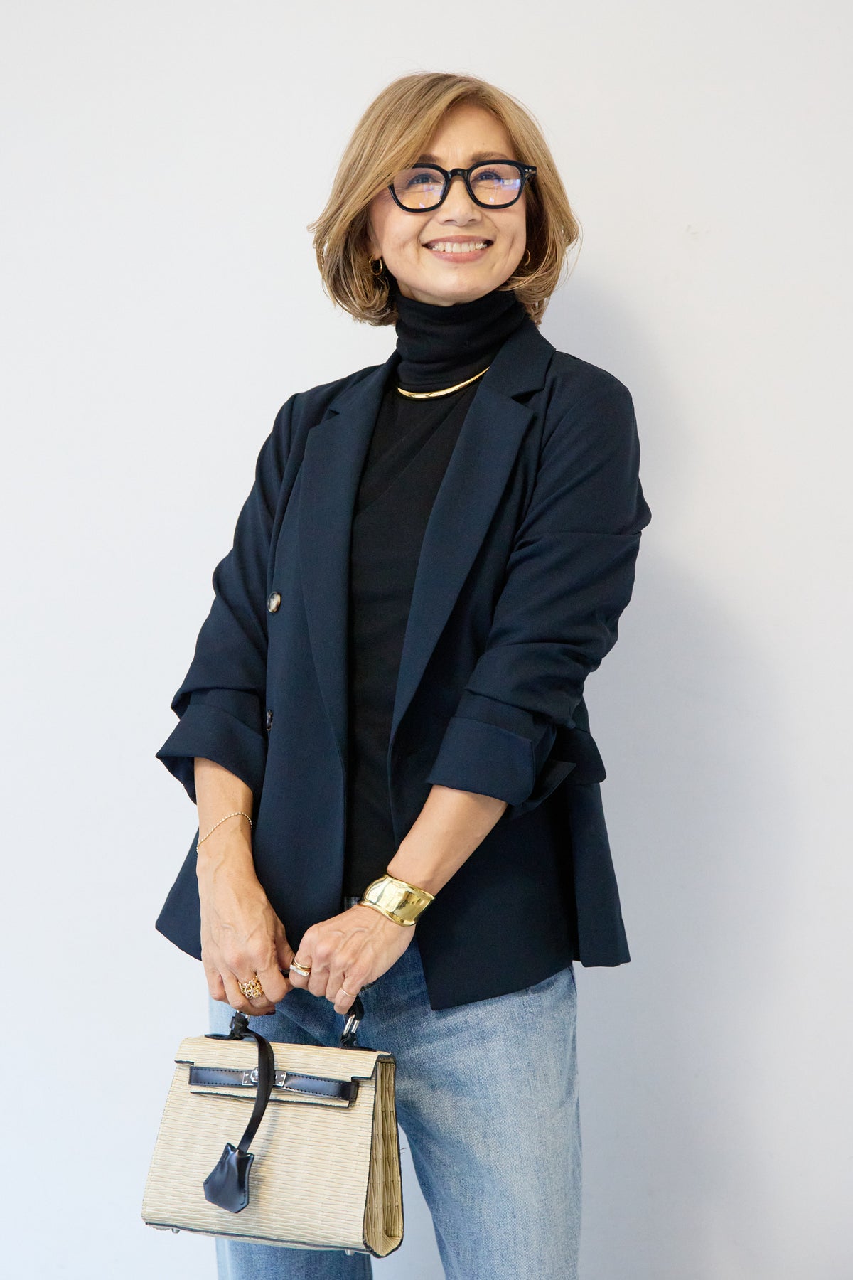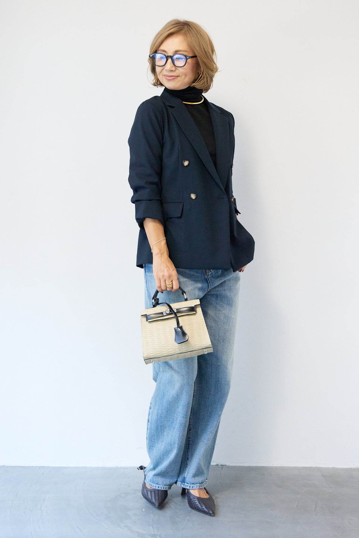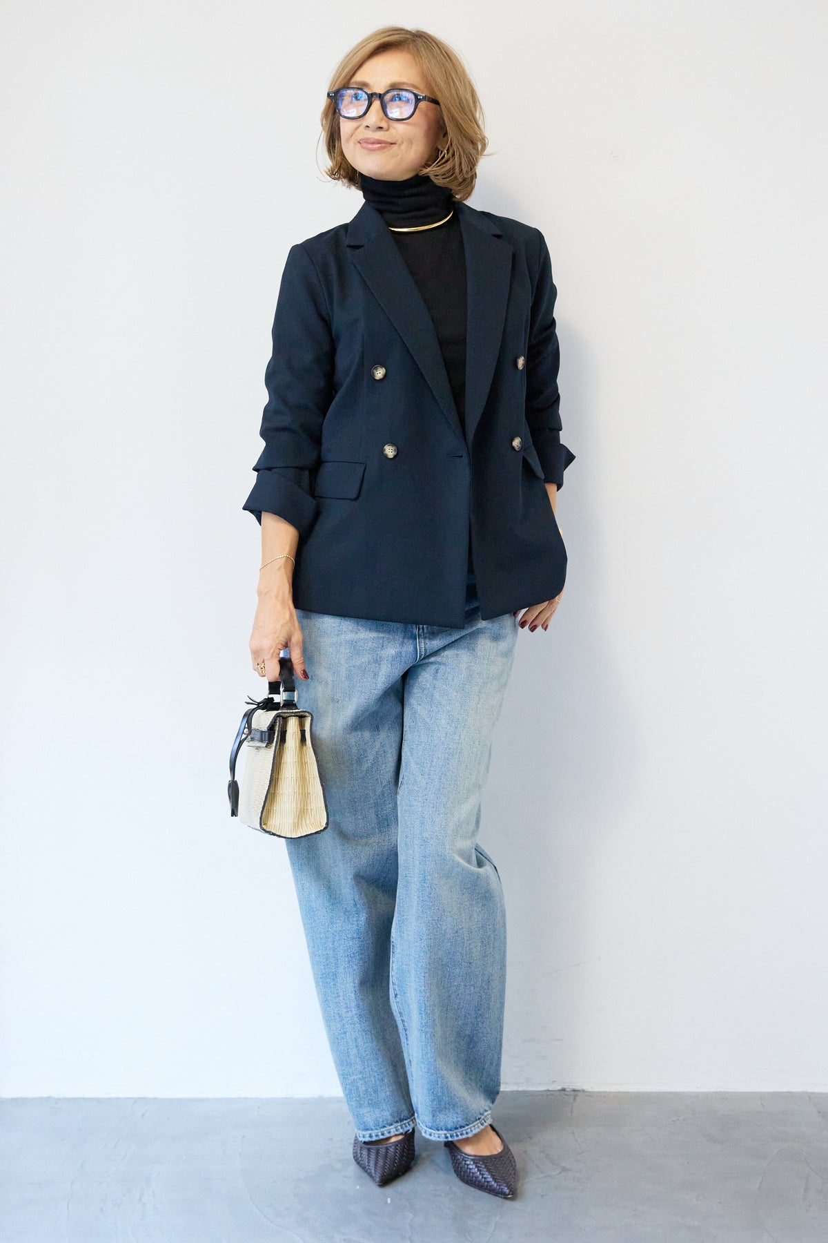 金ボタンはフラットな消しゴールドでモードな印象にまとめたダブルジャケット。 着丈は少し長めで、肩幅や袖などとのバランスが良いので、スタイルを良く見せてくれる直線的なシルエット。きれいめにもカジュアルにも着用いただけるため、ラフにボタンを開けて着用したり、肩にかけてこなれ感あるコーディネートまで汎用性が高い一枚です。