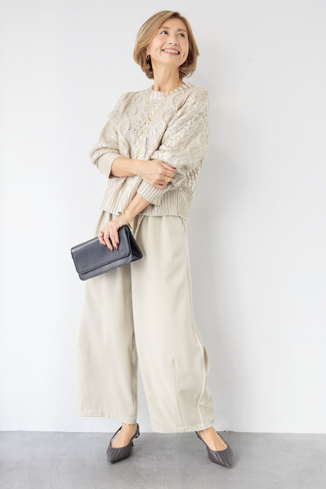 [SET]箔デザインケーブルニット+カービーパンツ(2set)