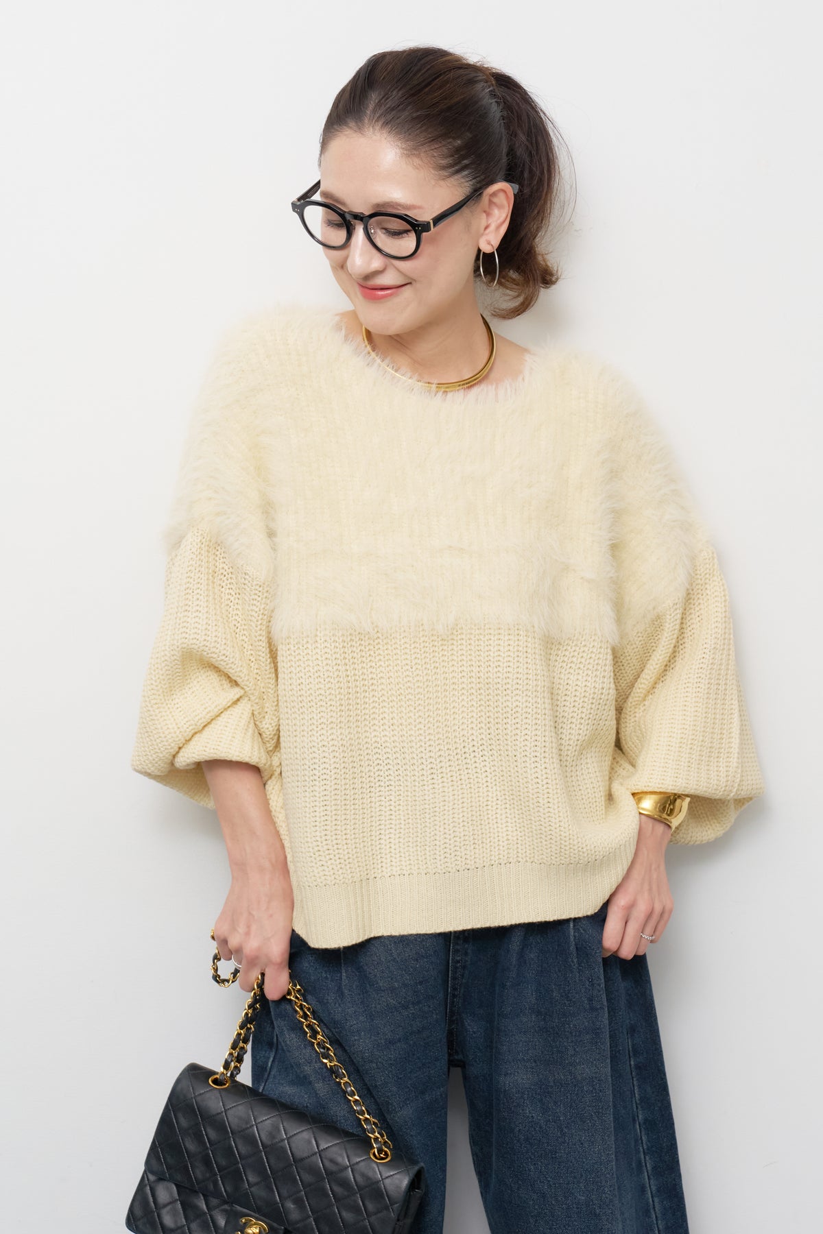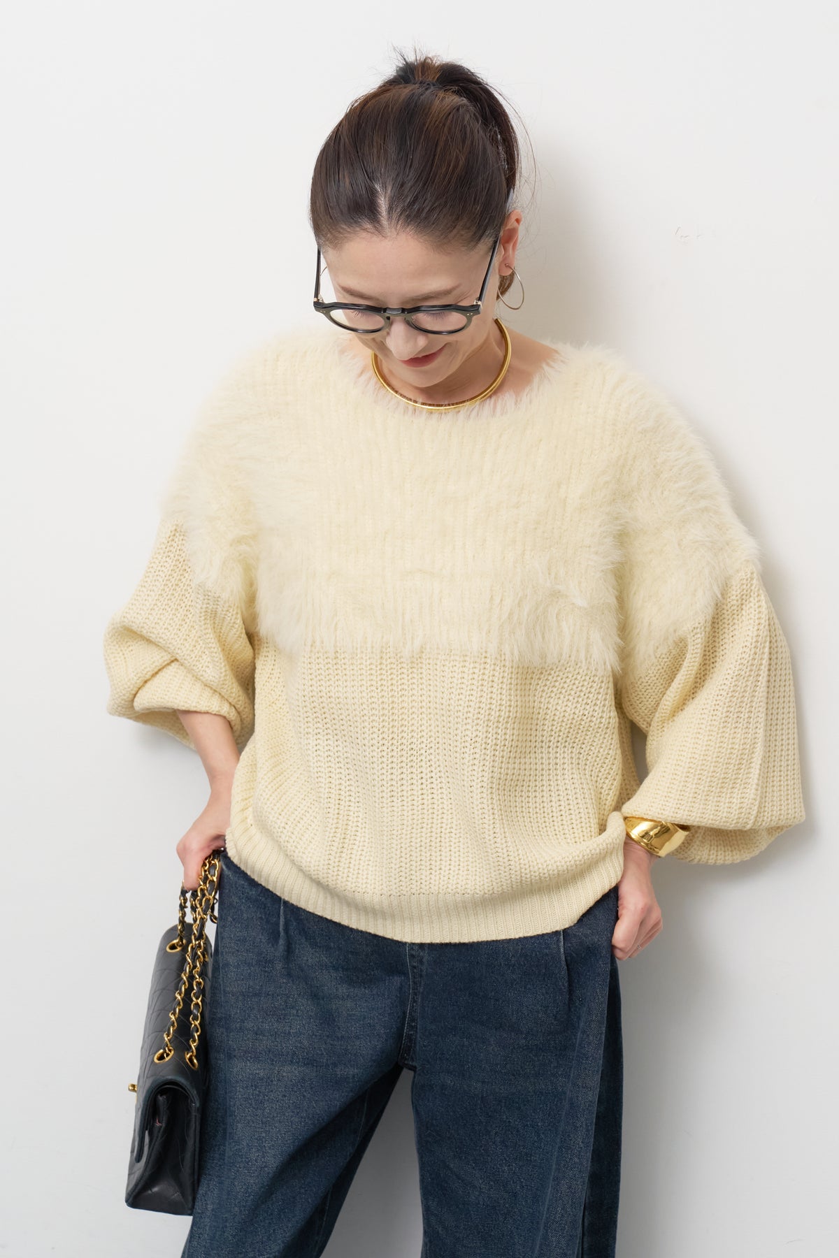 ◆ ボリュームスリーブ切替シャギーニット