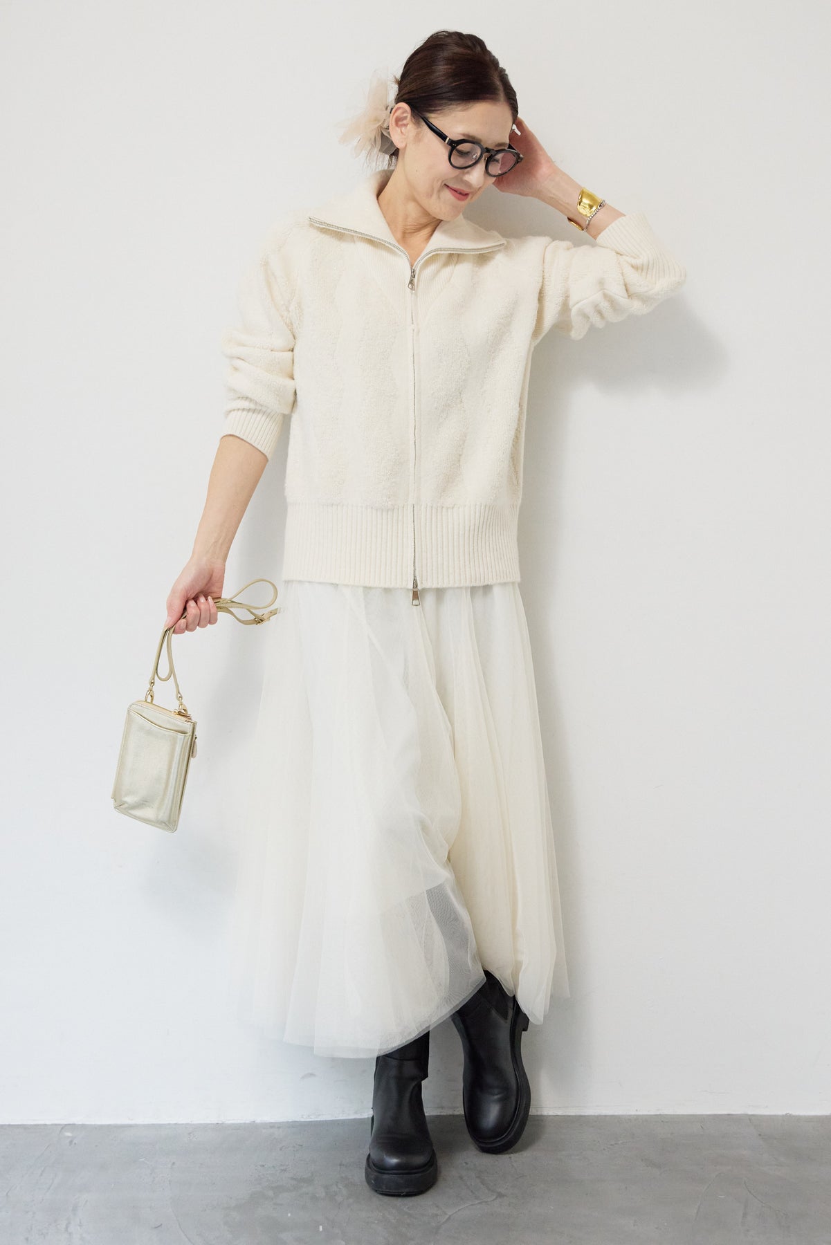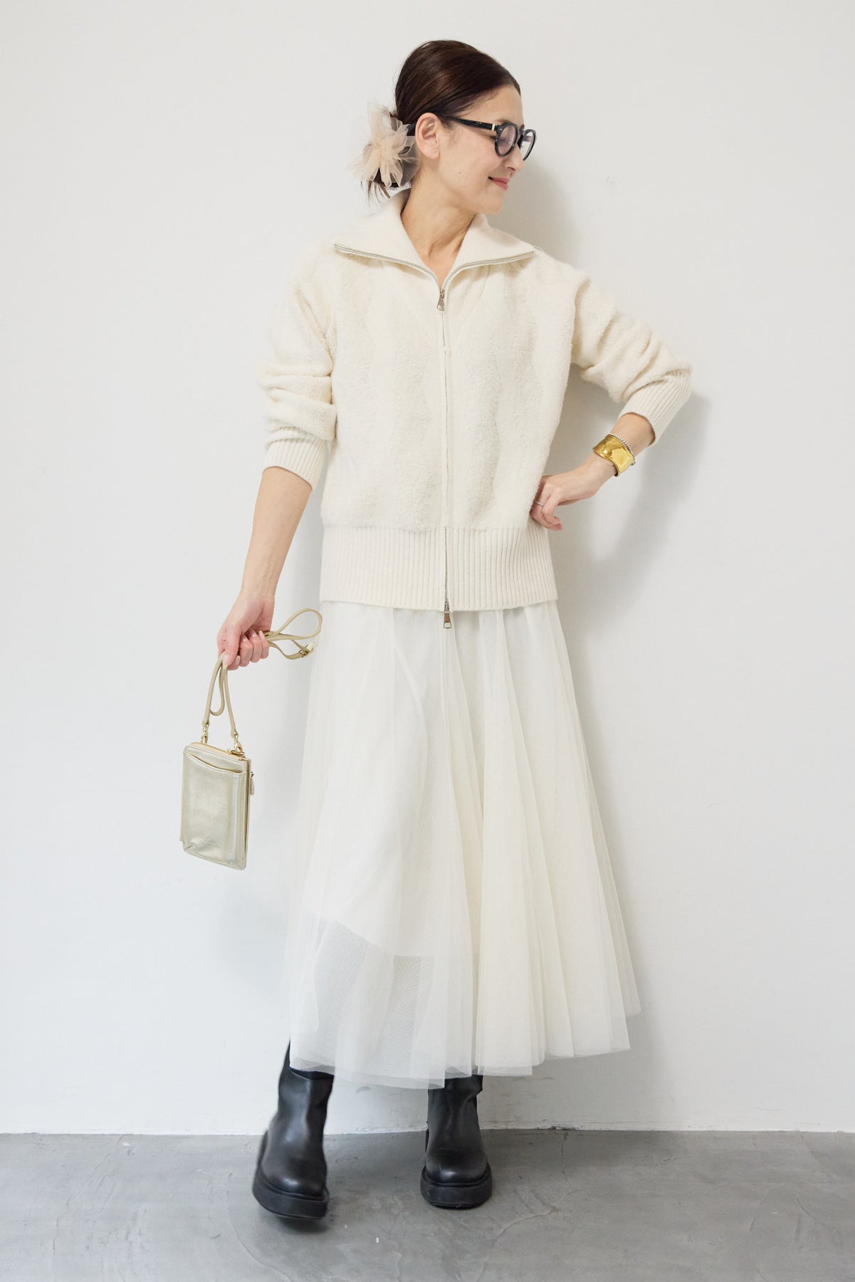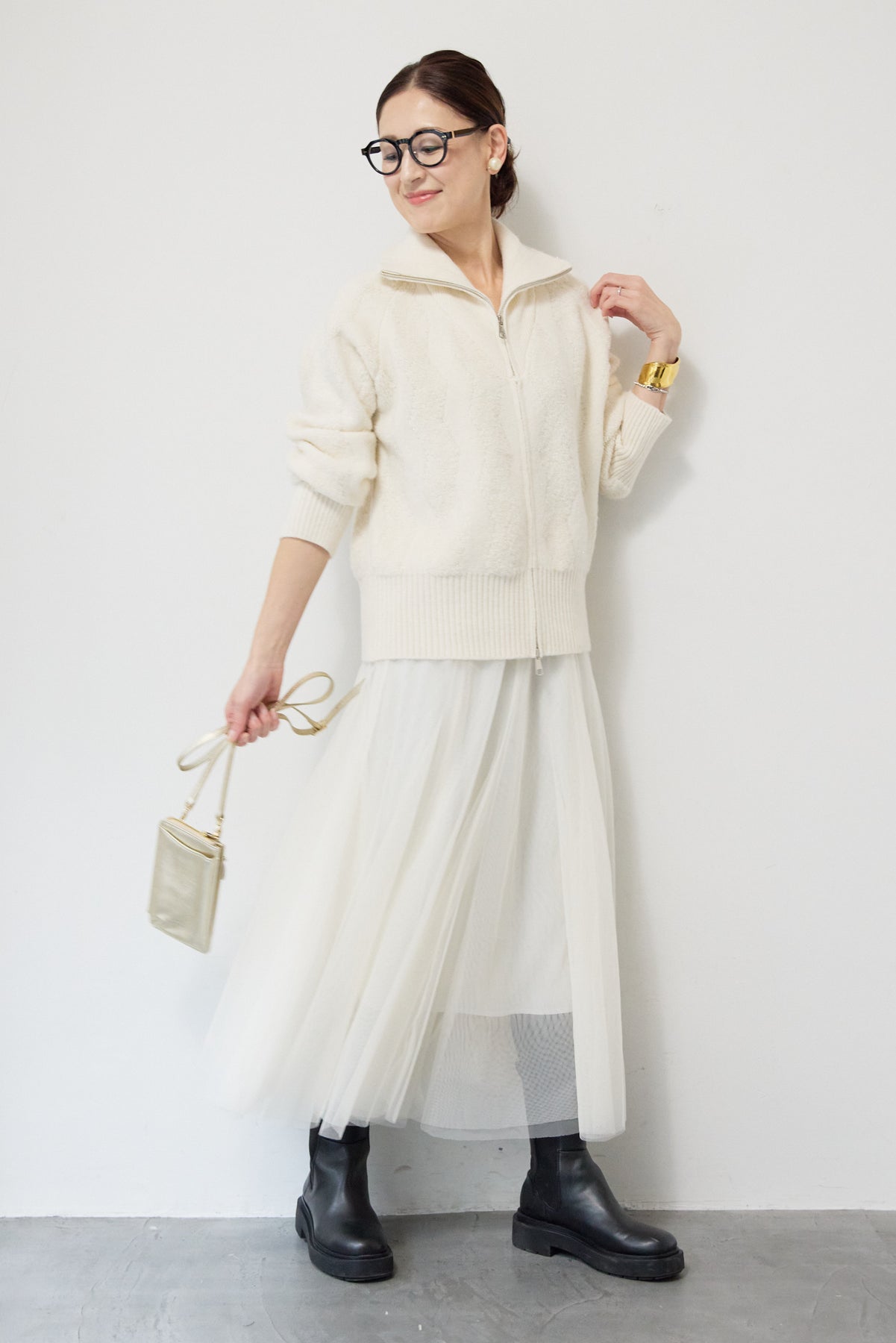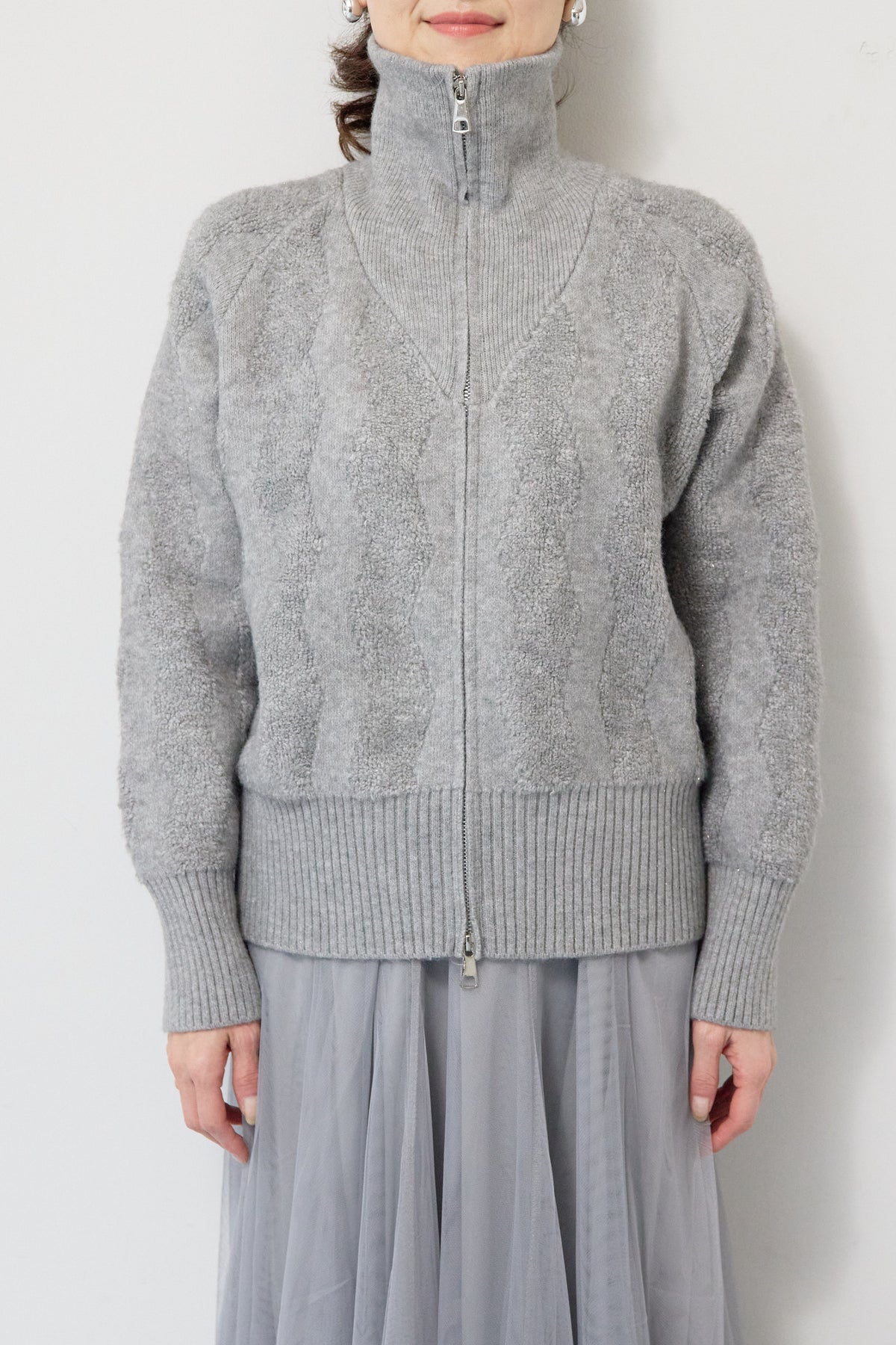 ラメダブルジップニット/チュールスカート