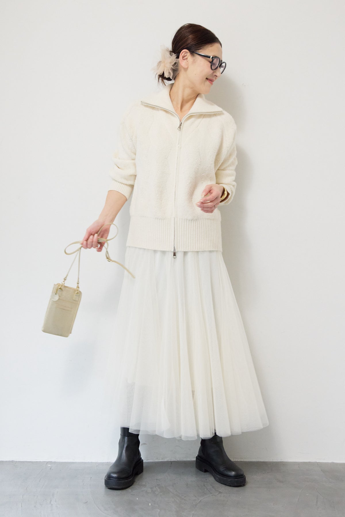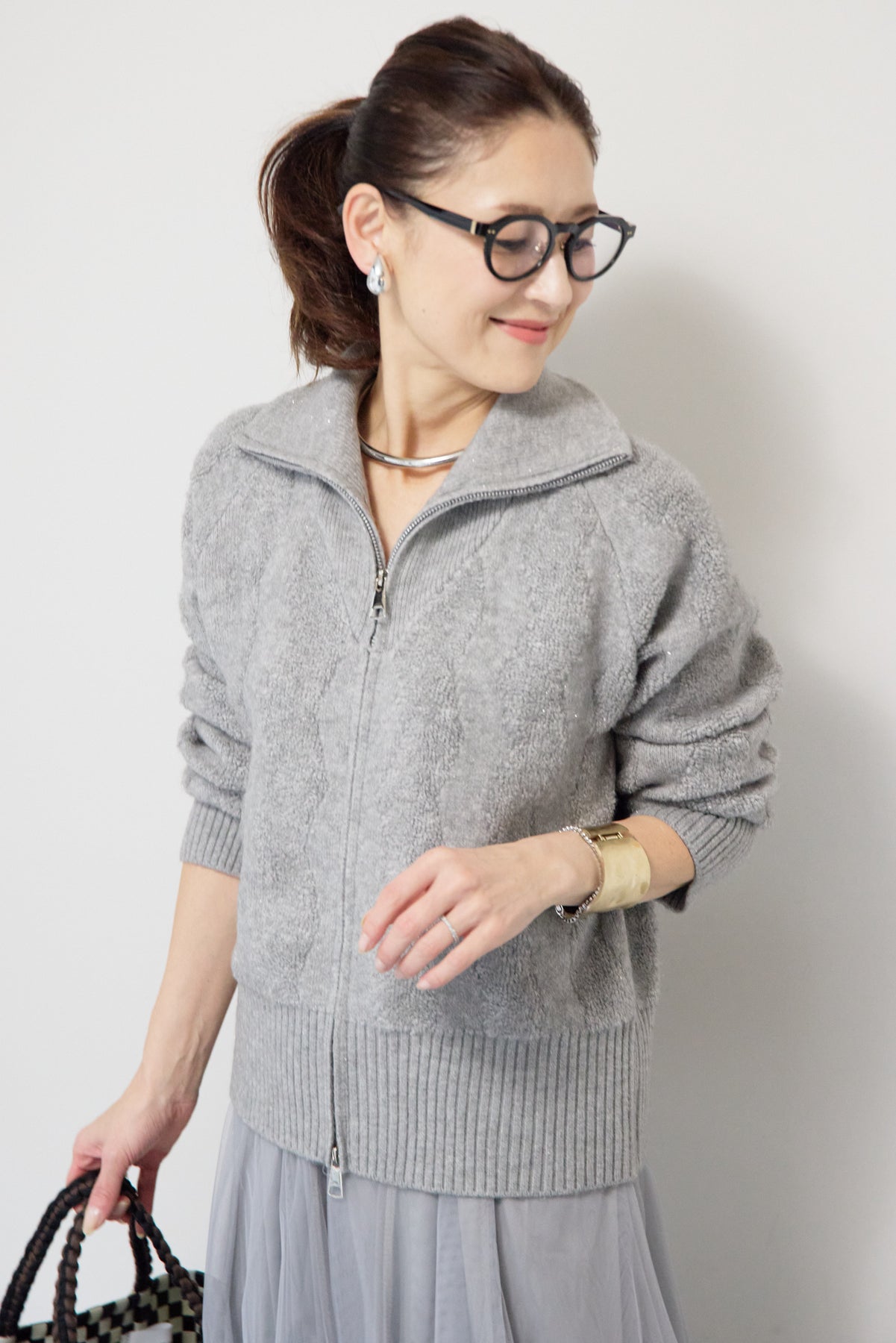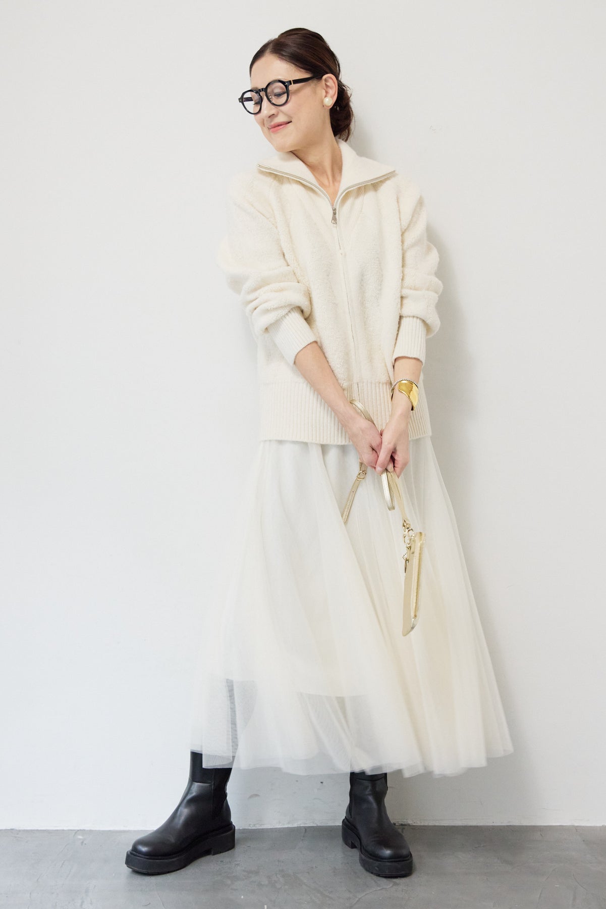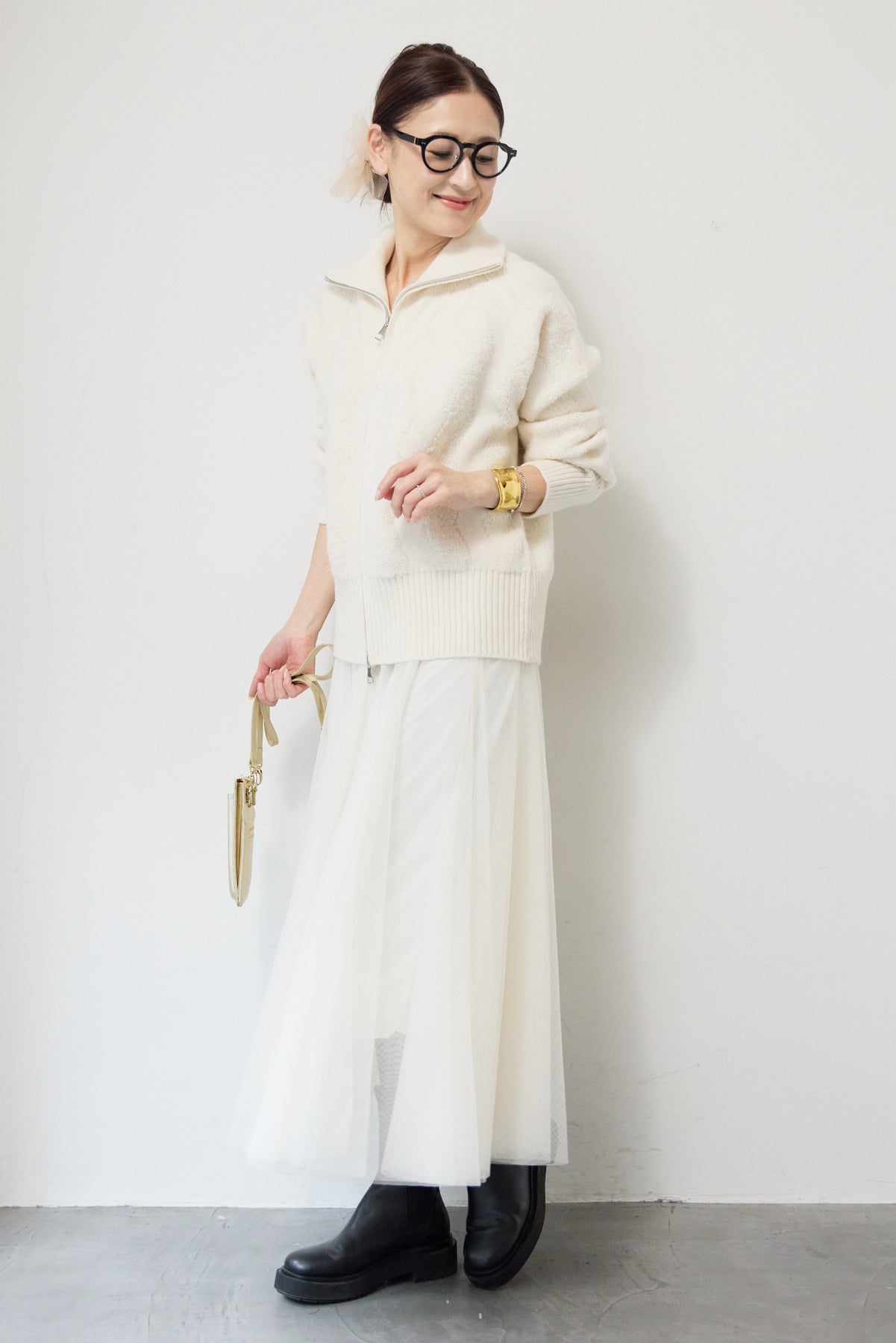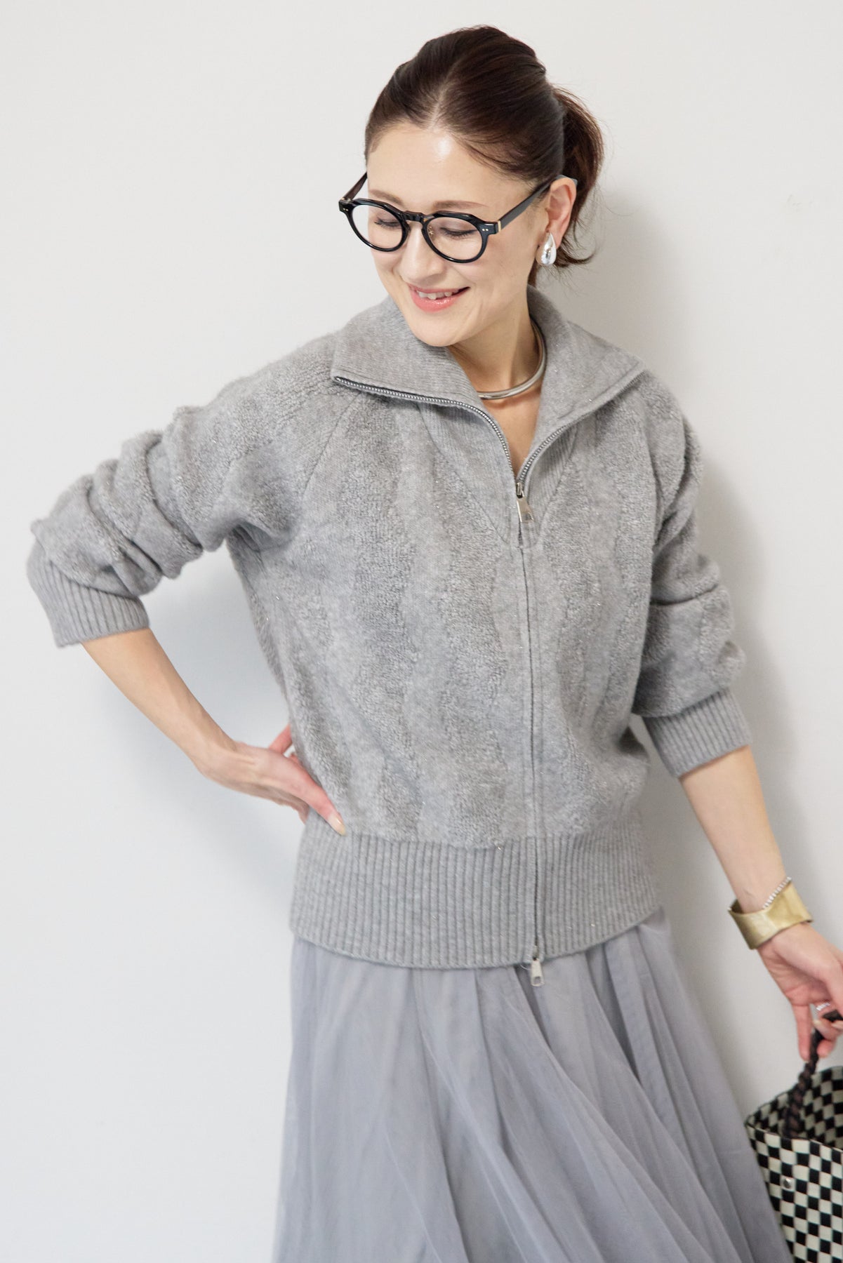 ラメダブルジップニット/チュールスカート