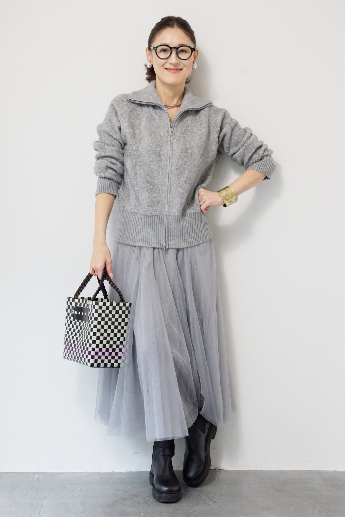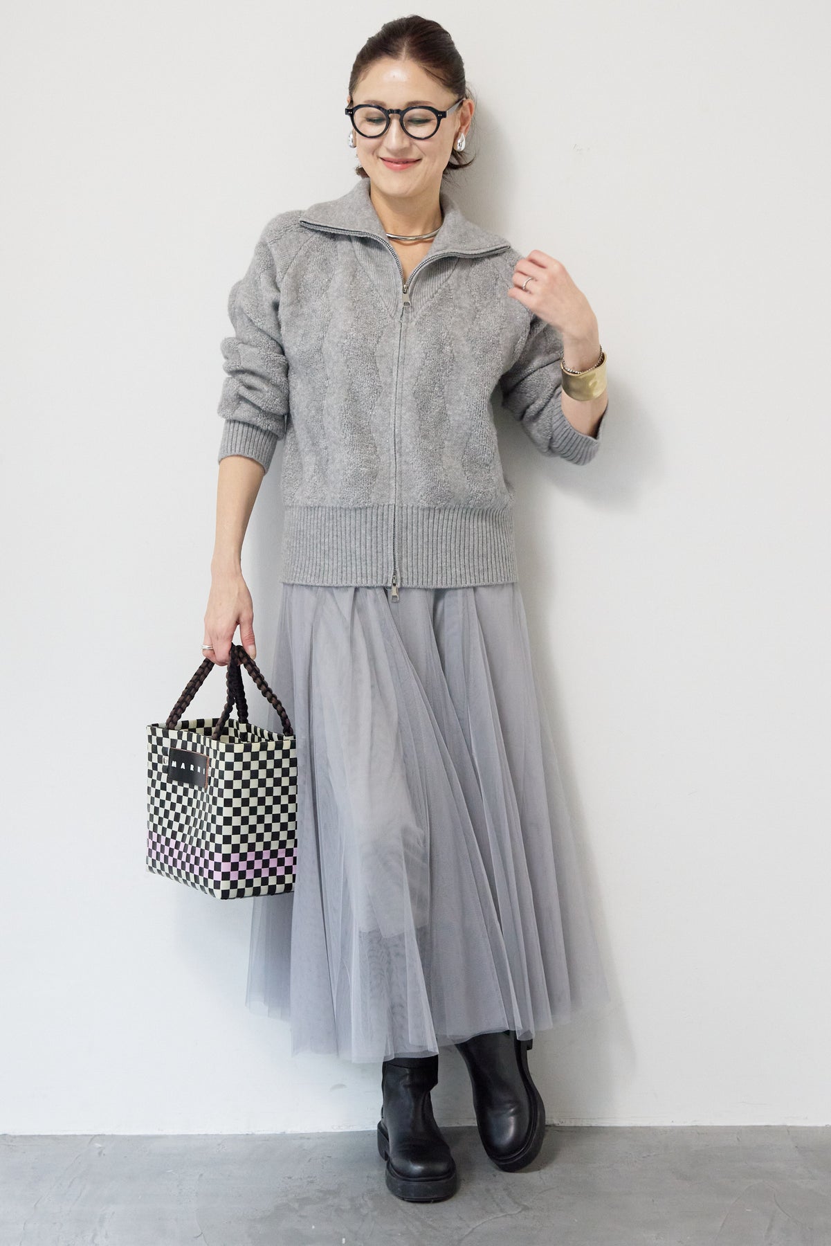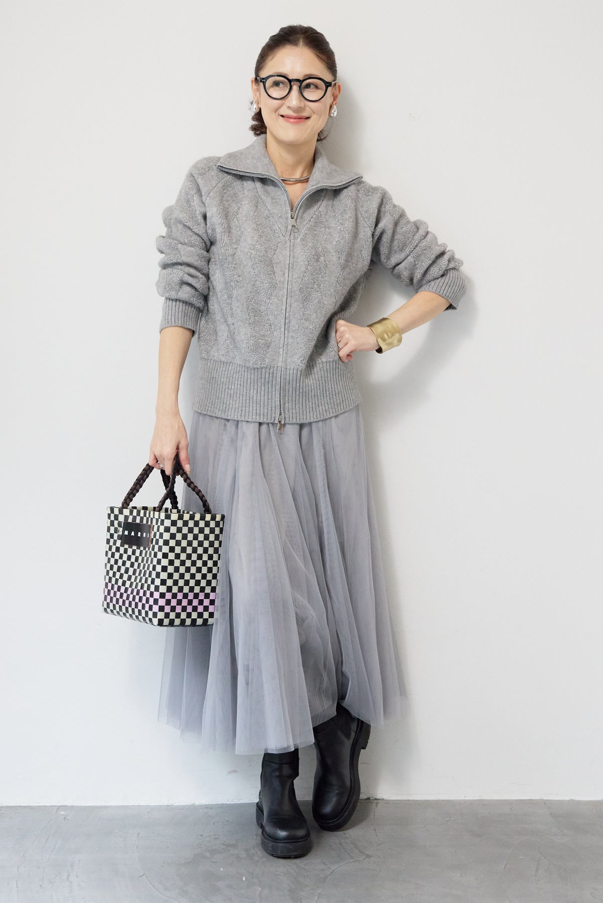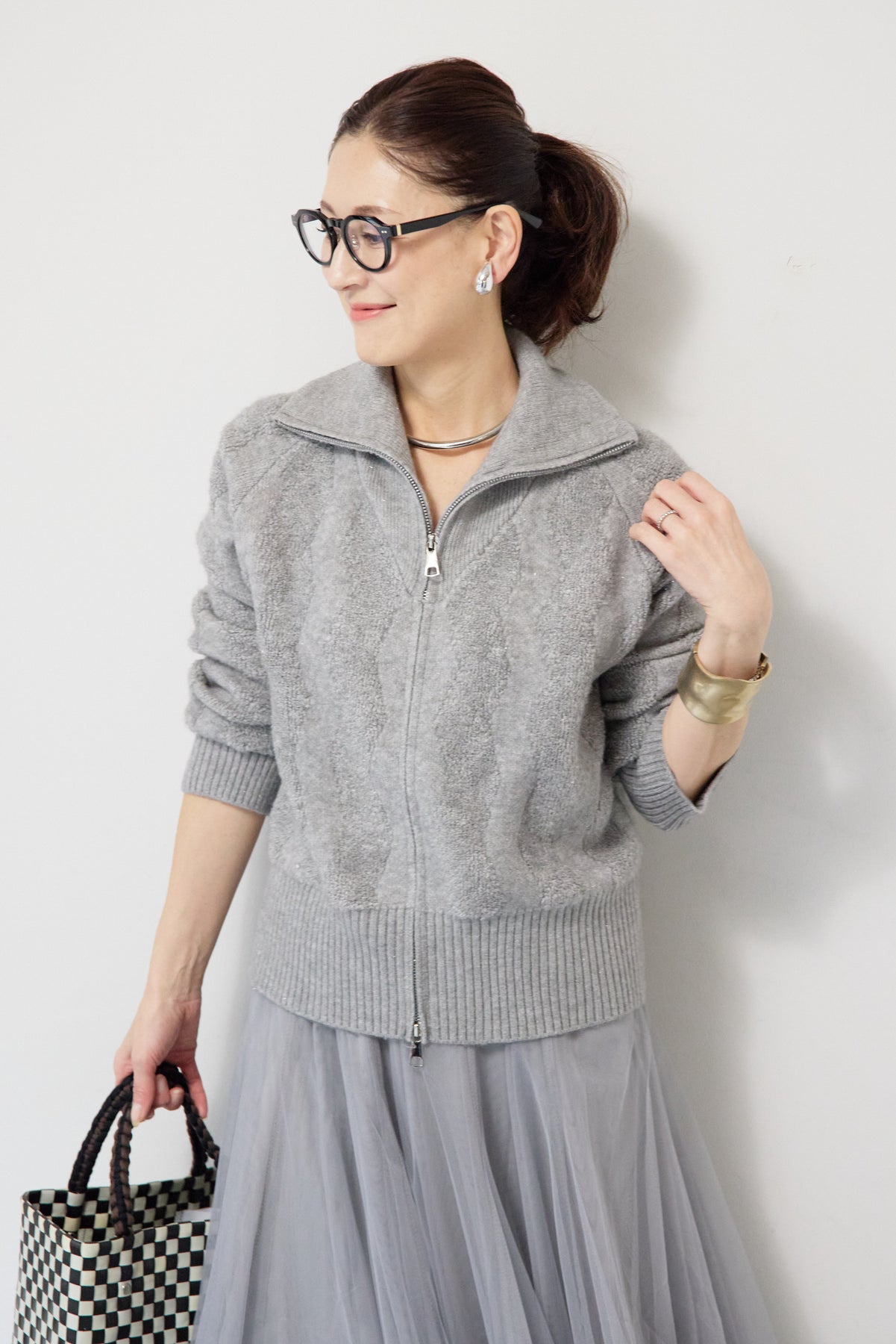 ラメダブルジップニット/チュールスカート