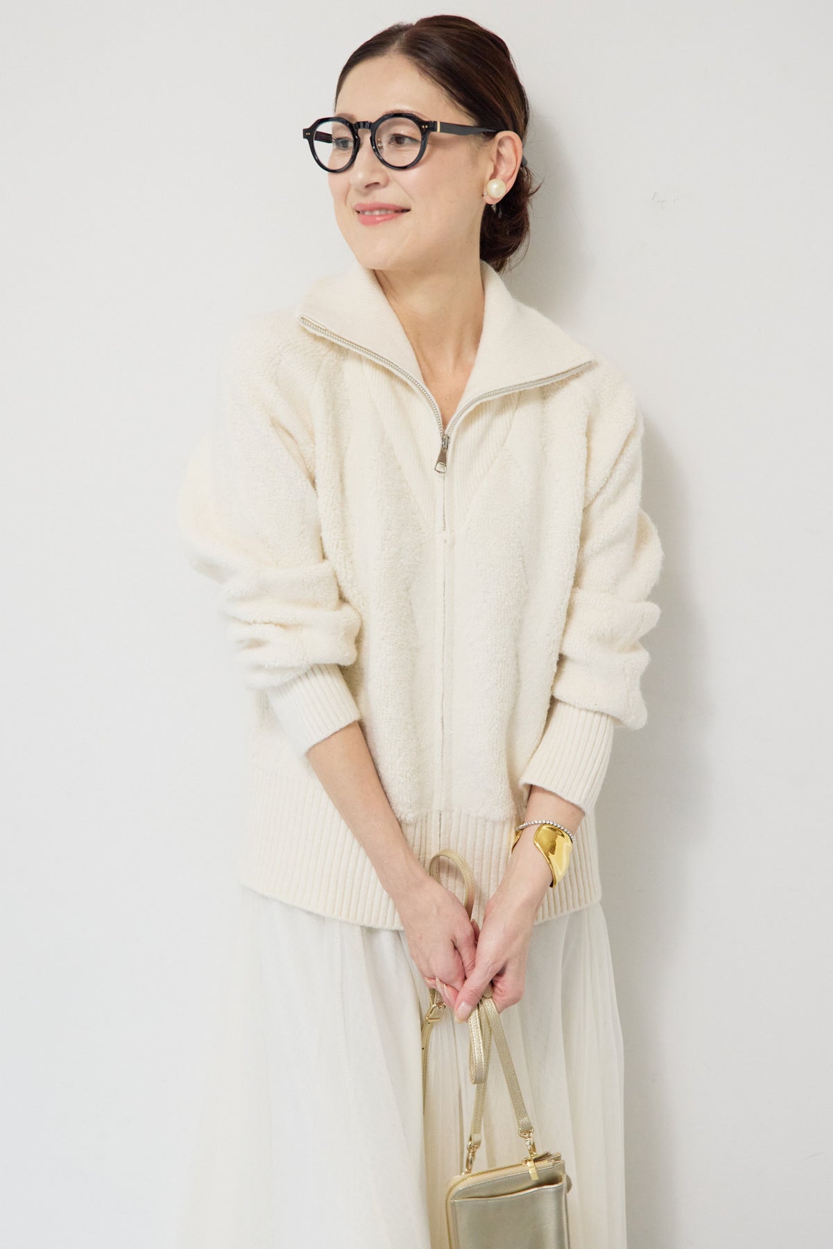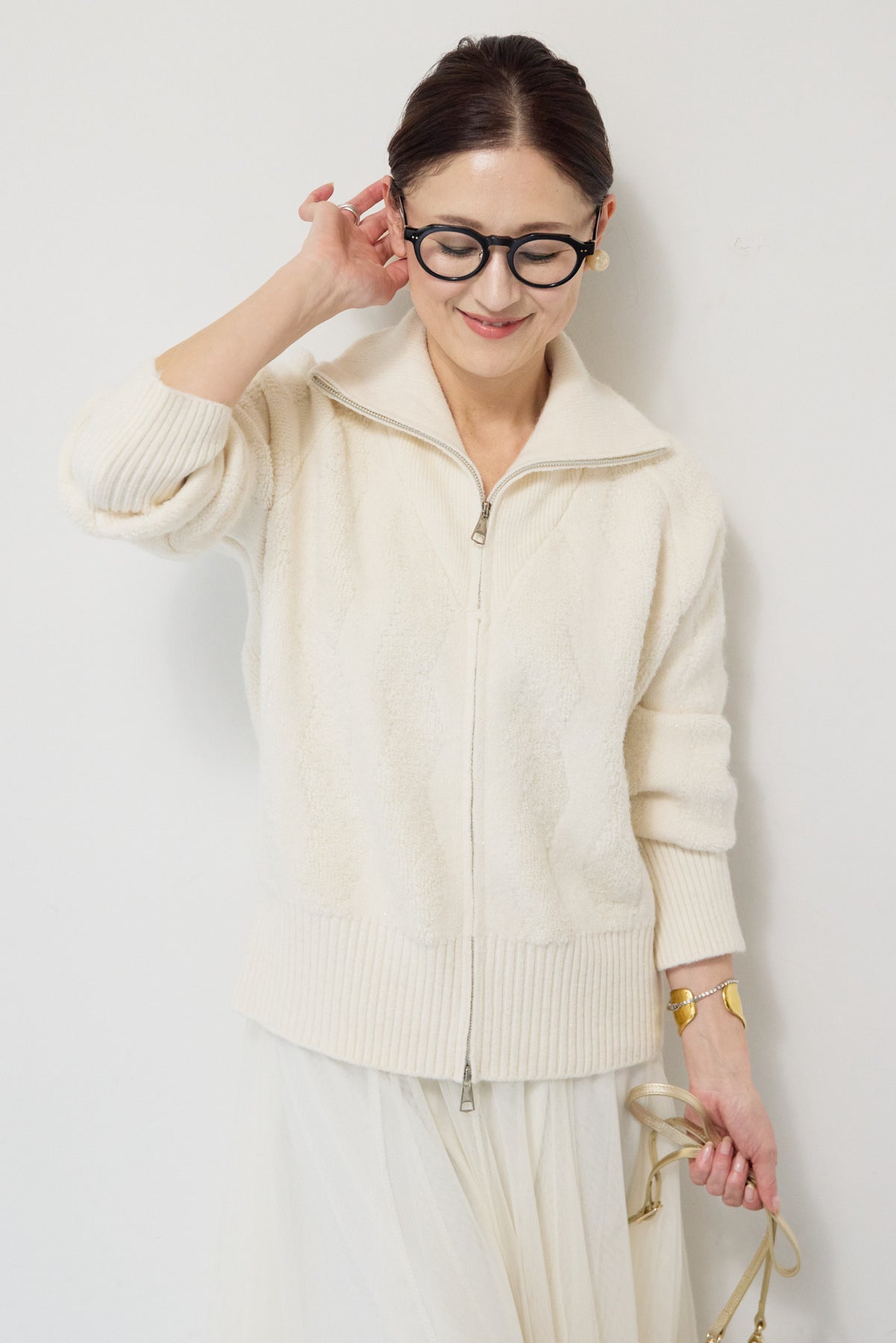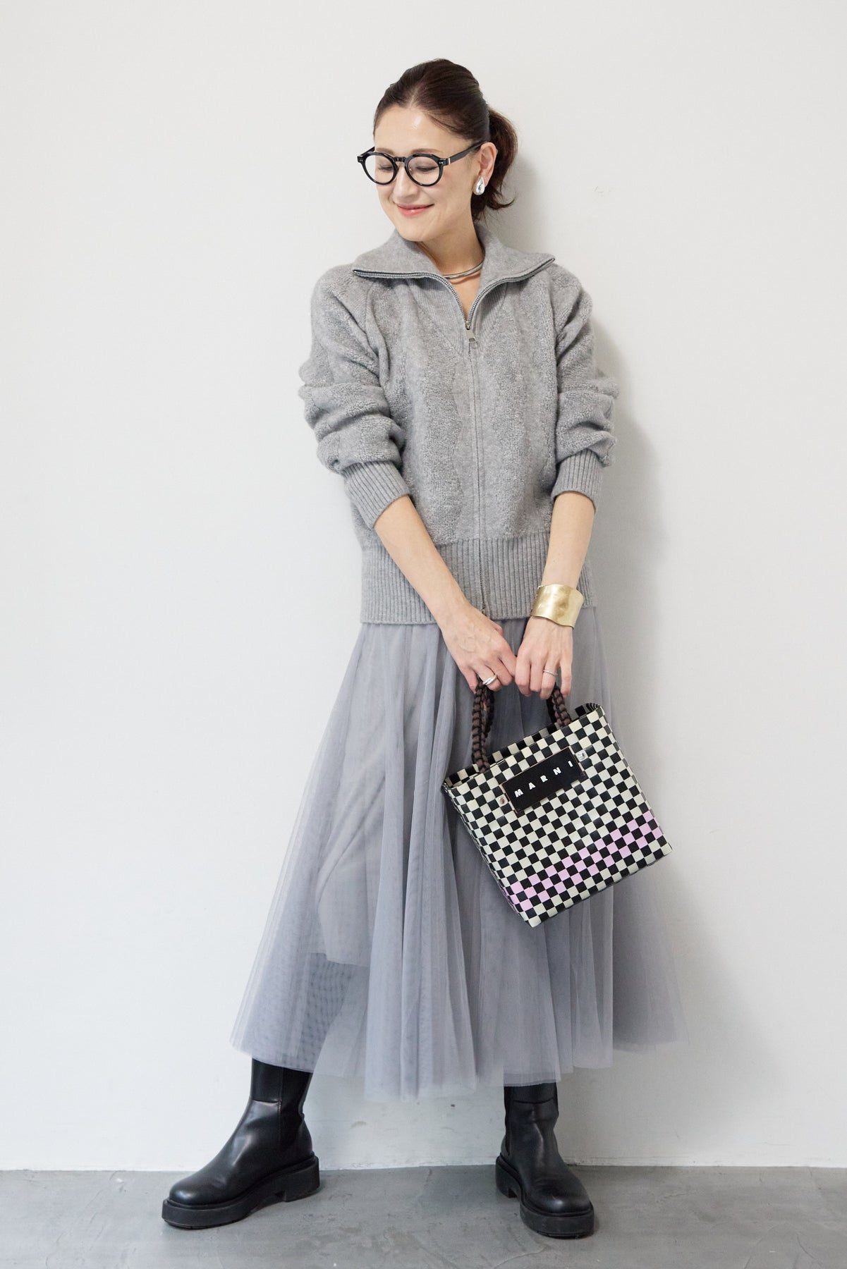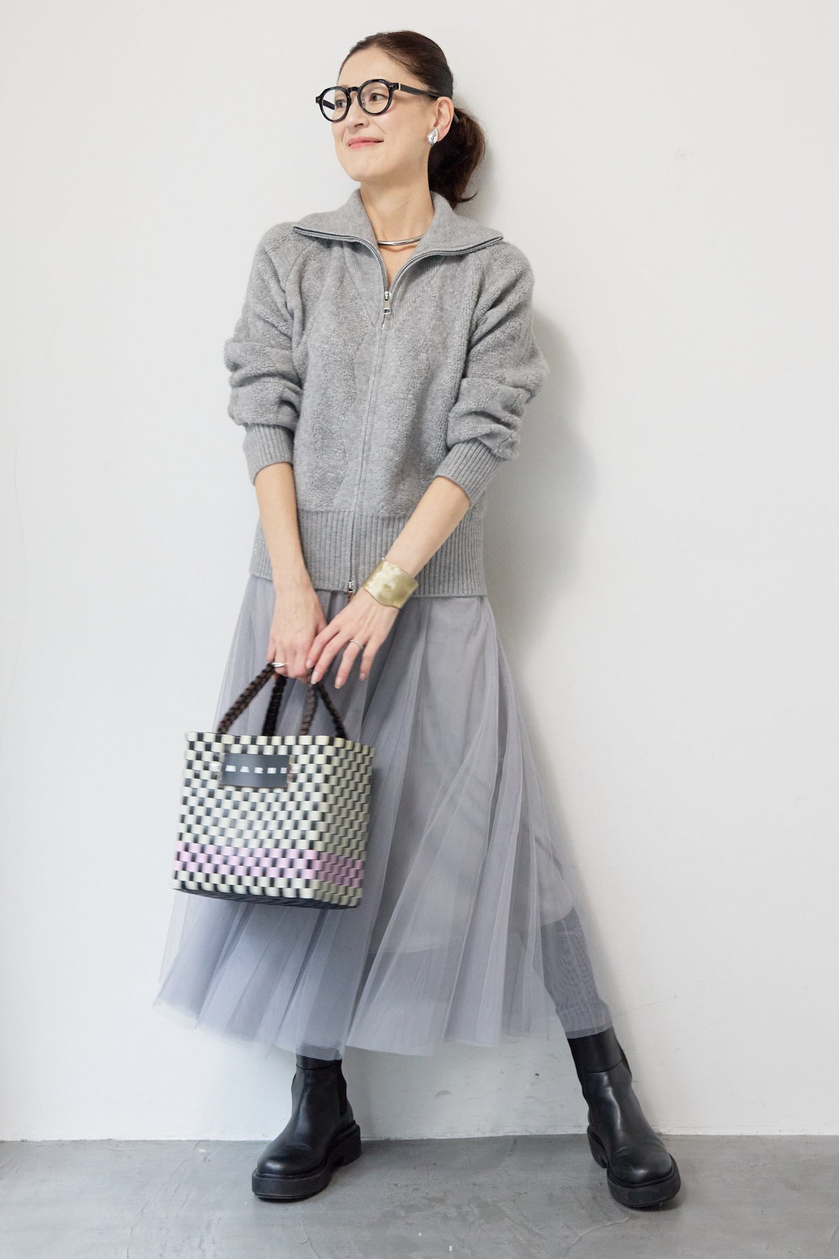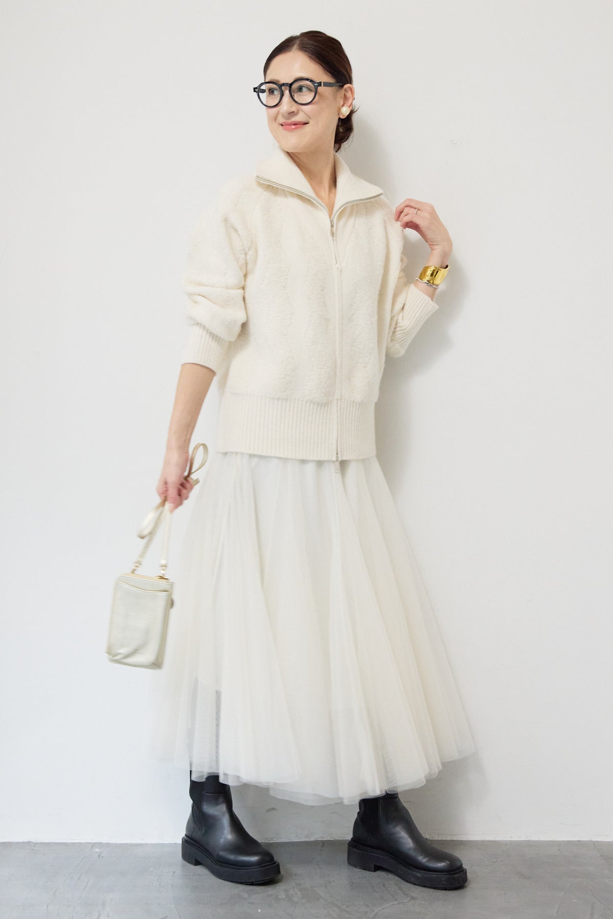 ラメダブルジップニット/チュールスカート