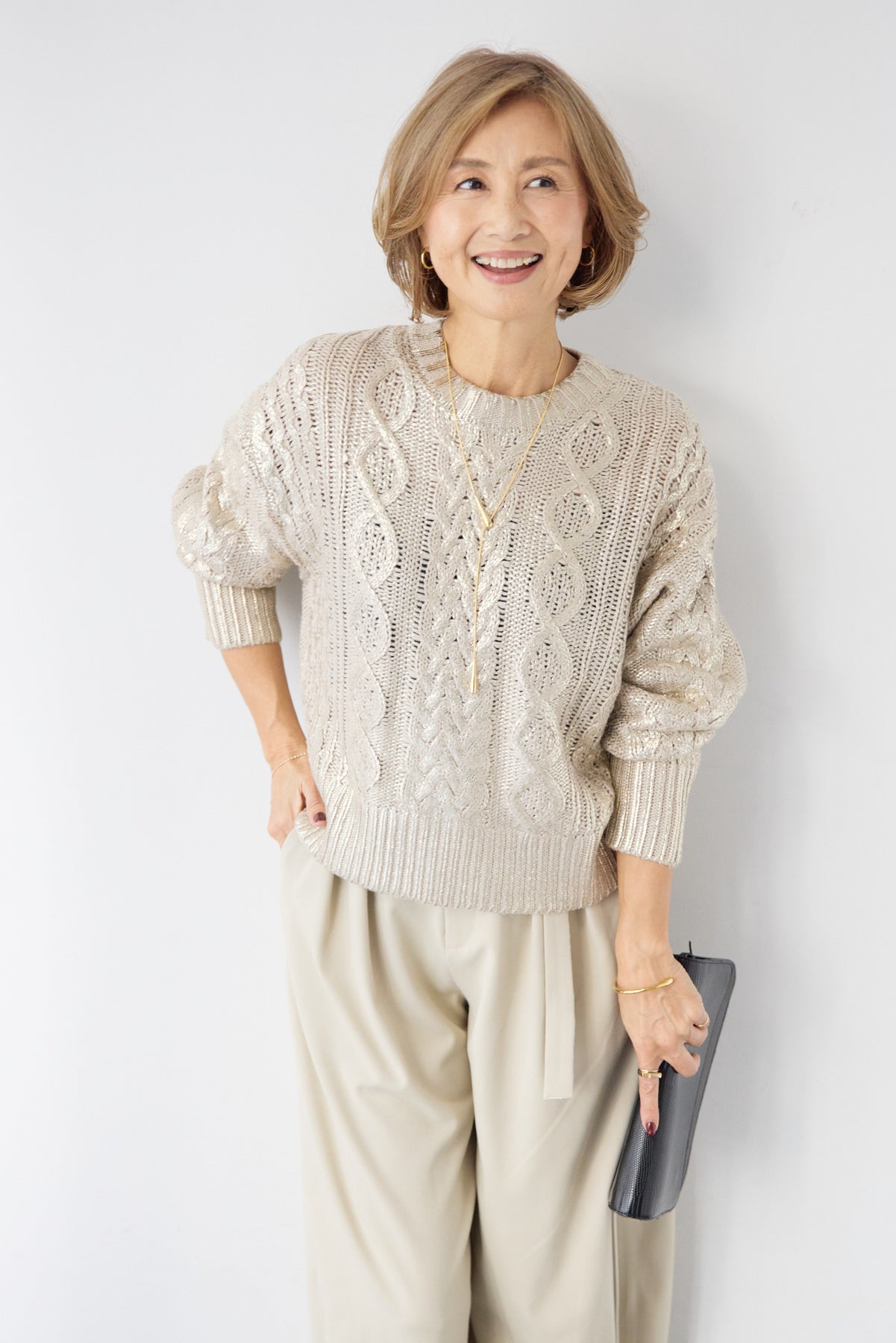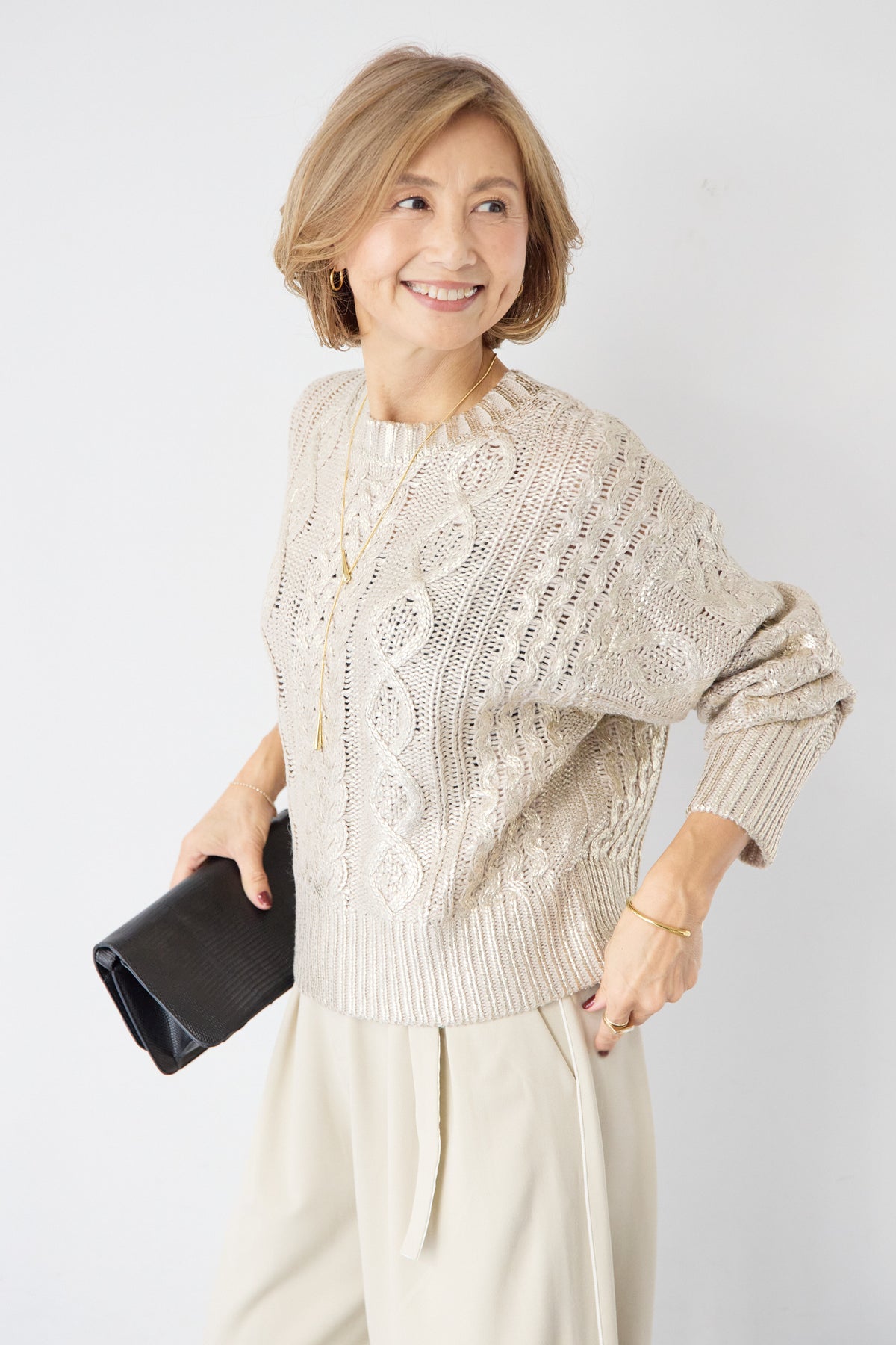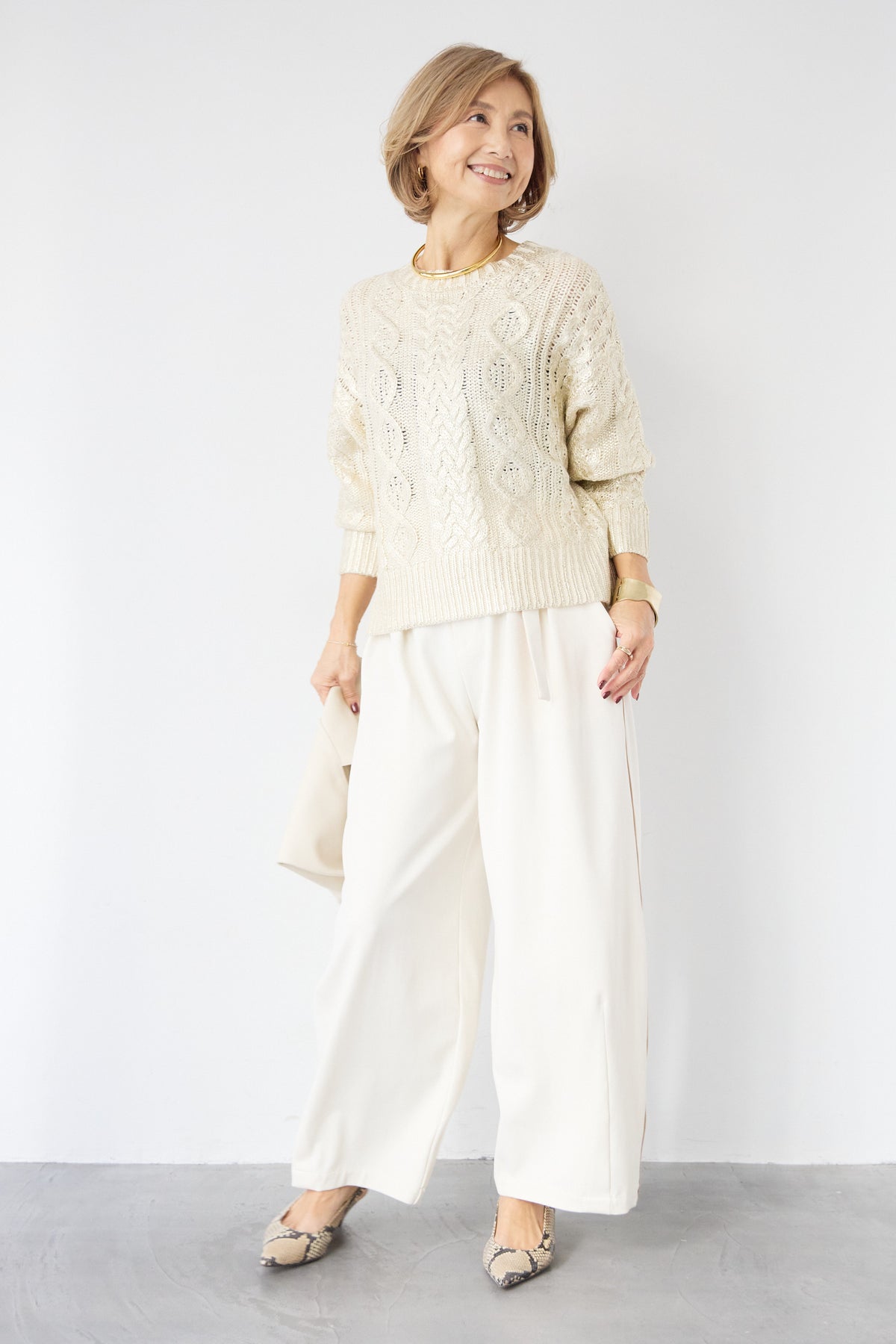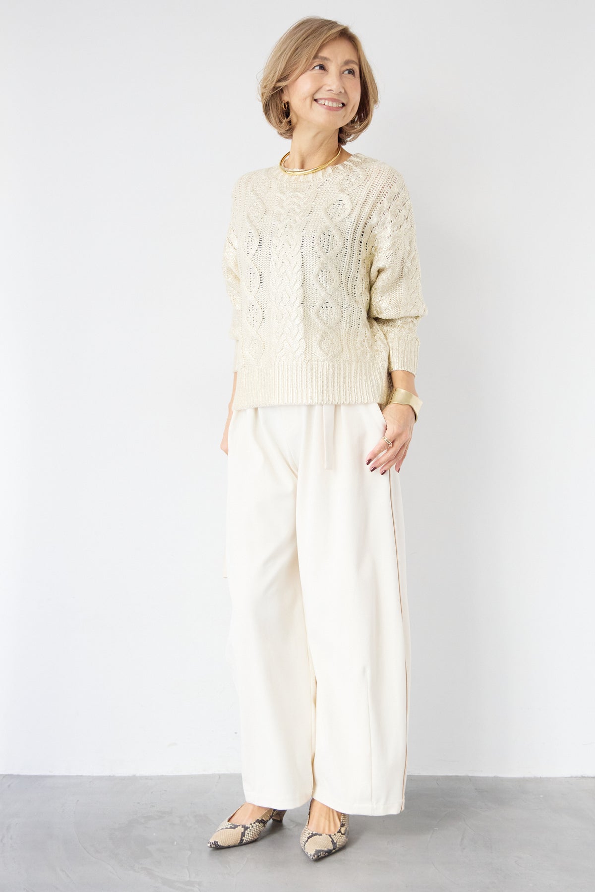 ◆ 箔デザインケーブルニット
