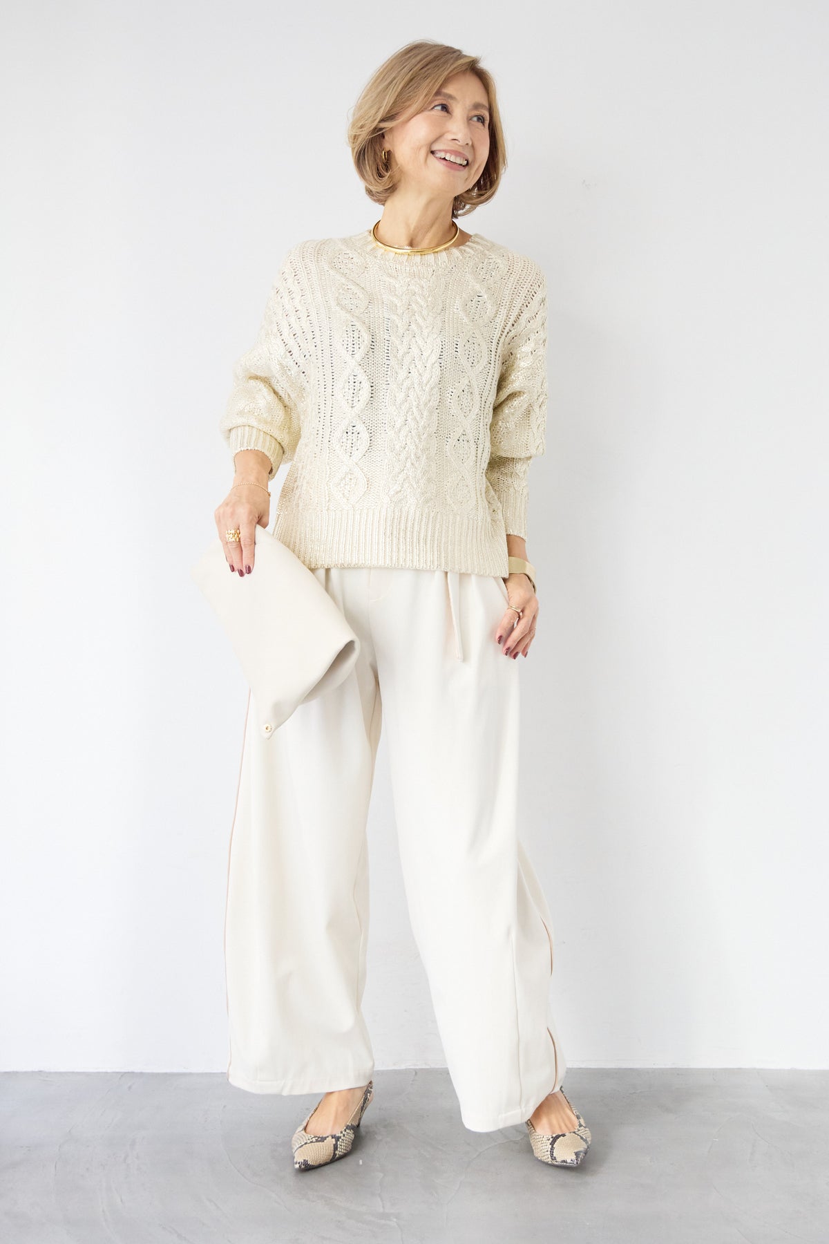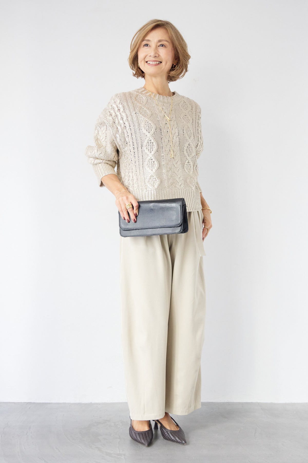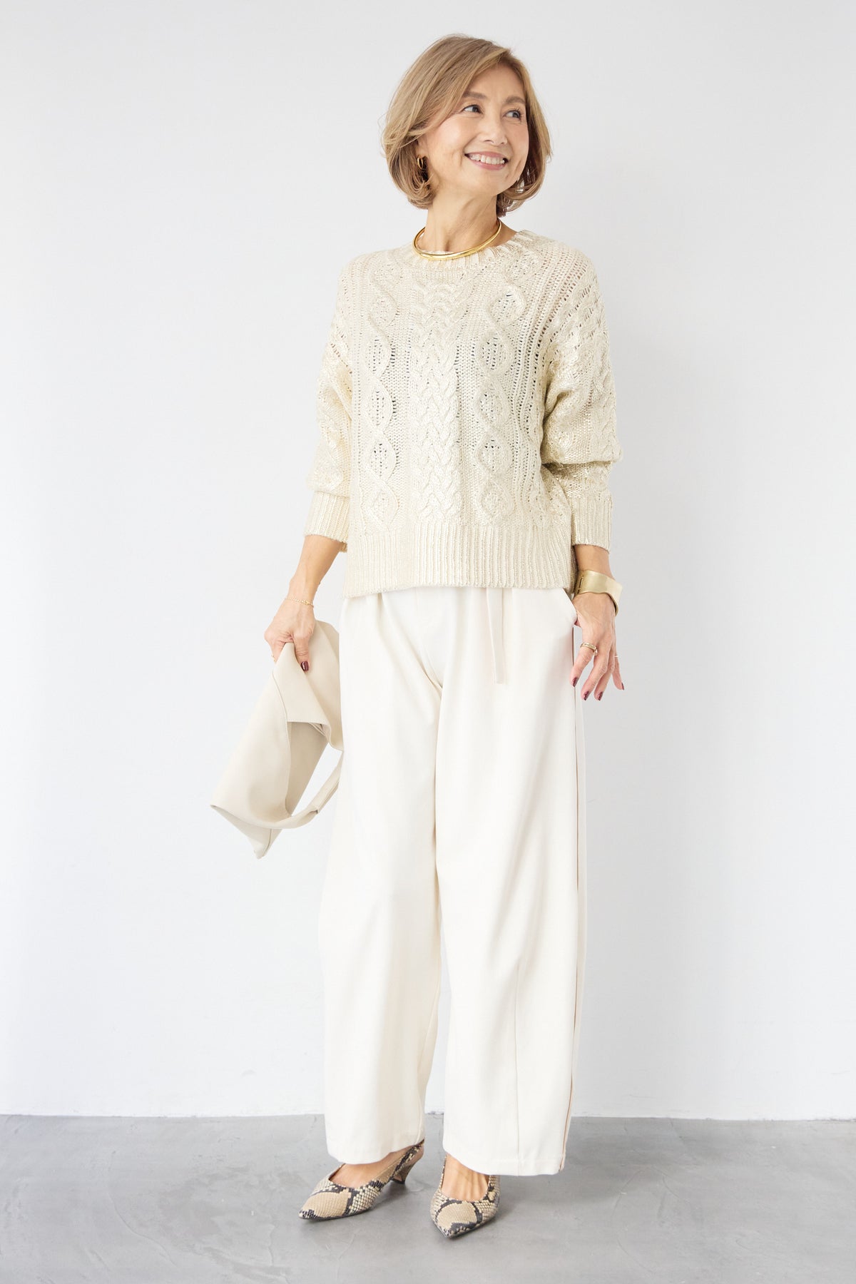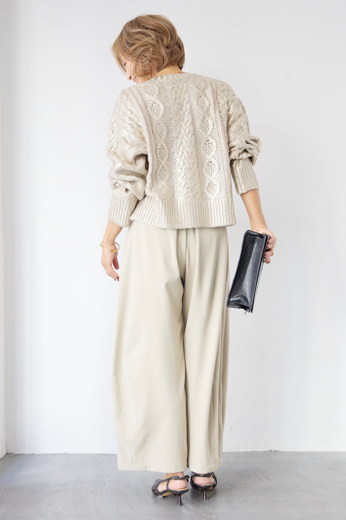 ◆ 箔デザインケーブルニット