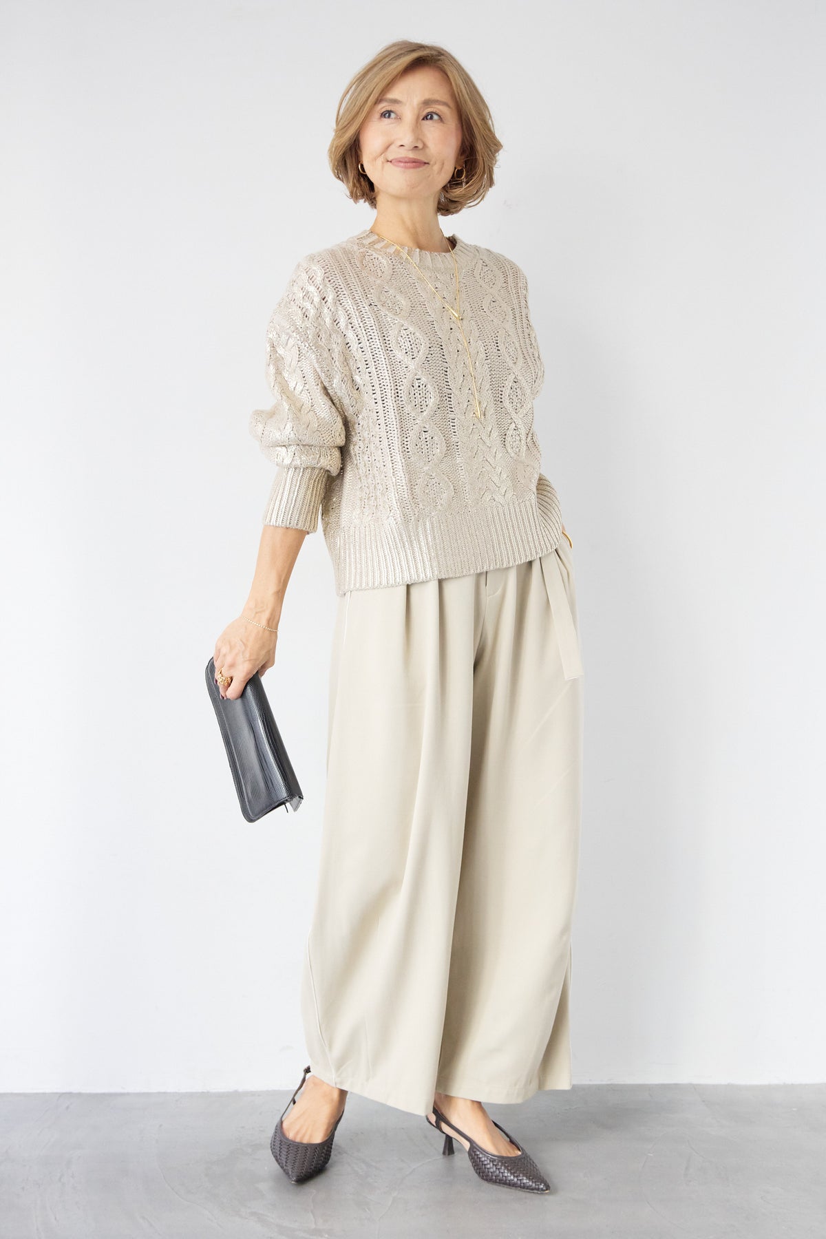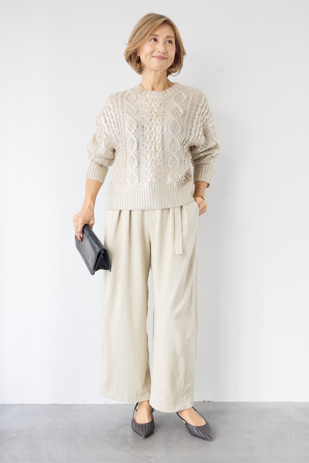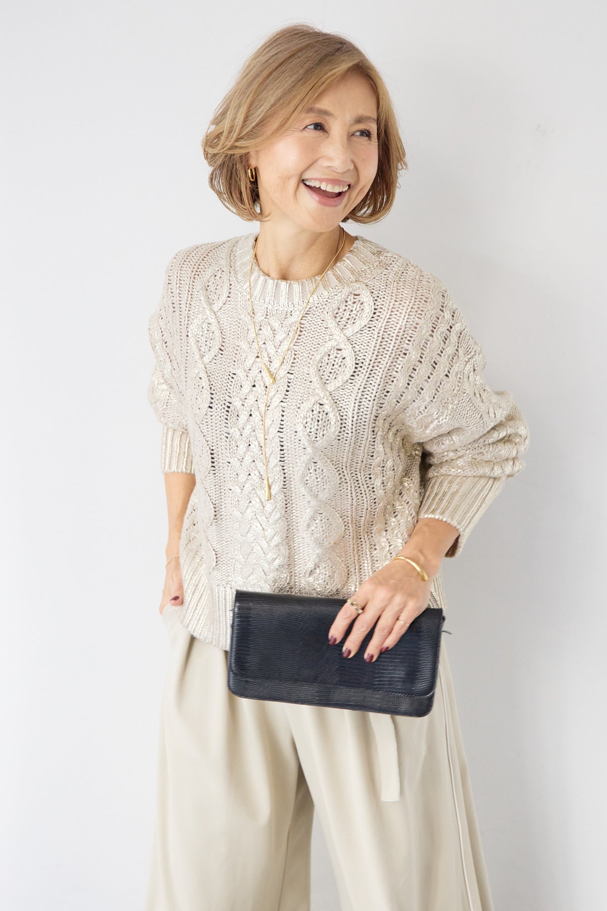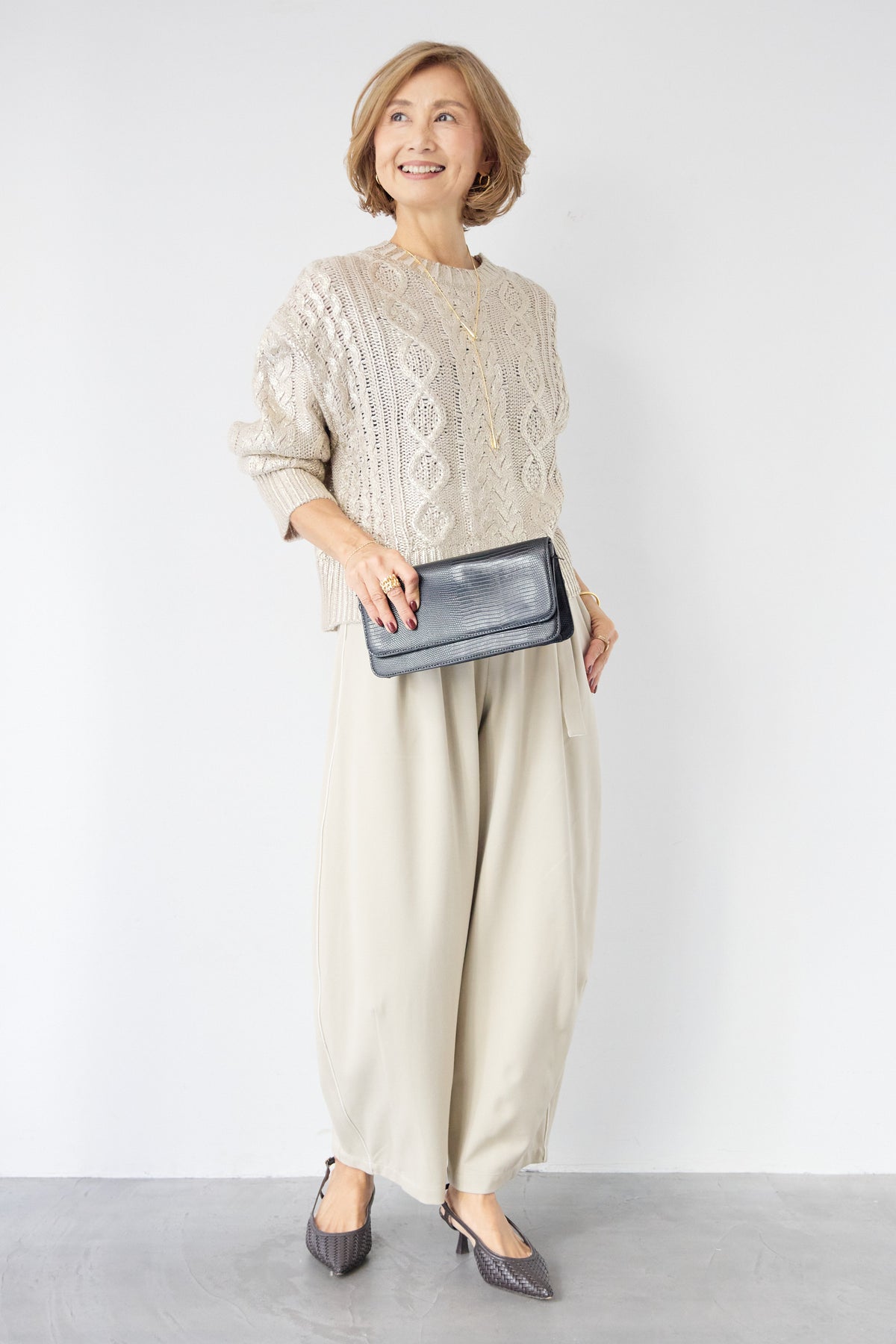 ◆ 箔デザインケーブルニット