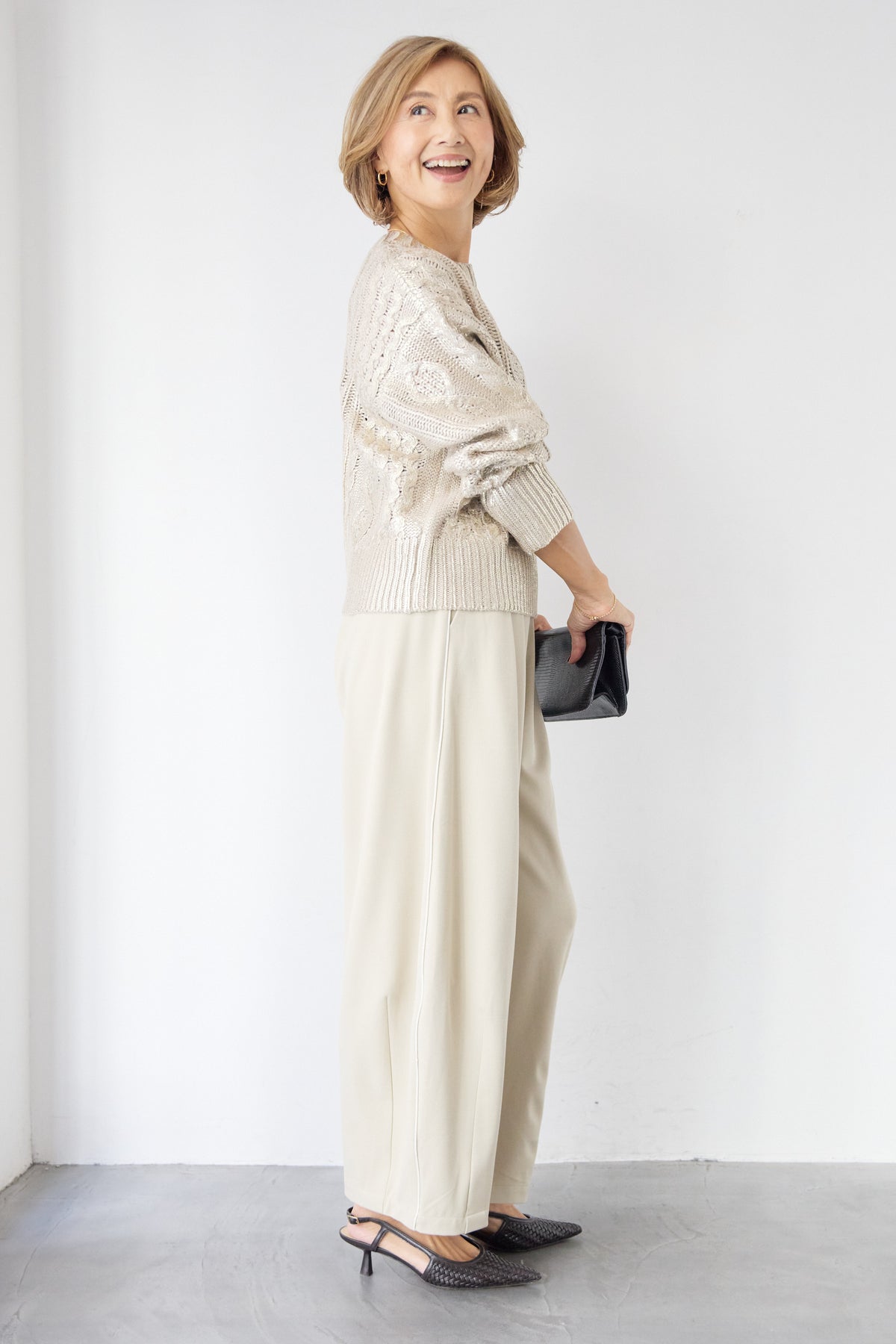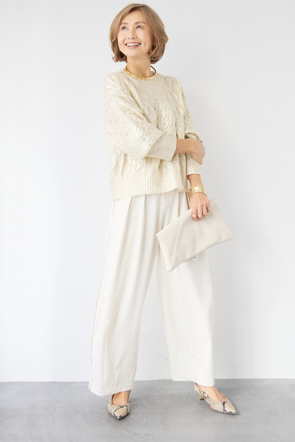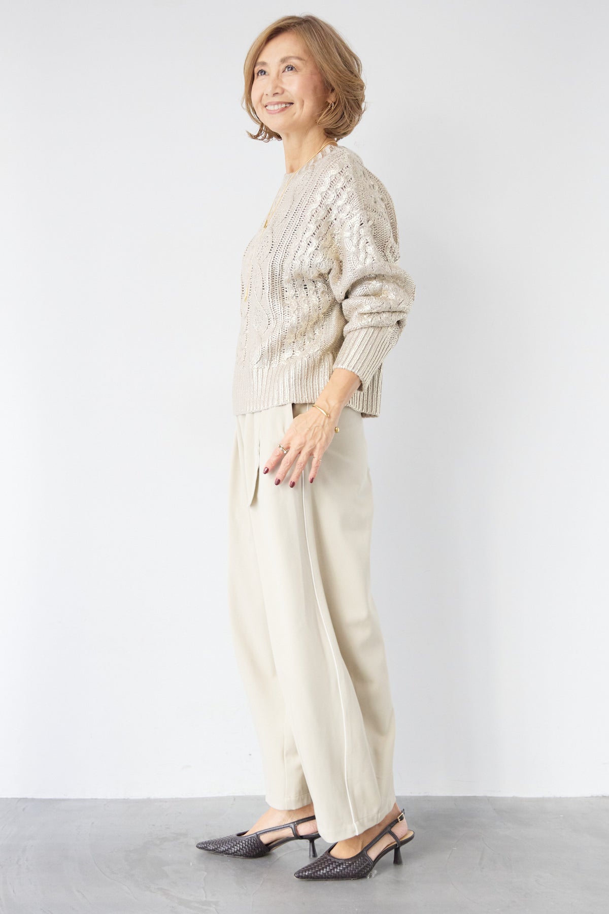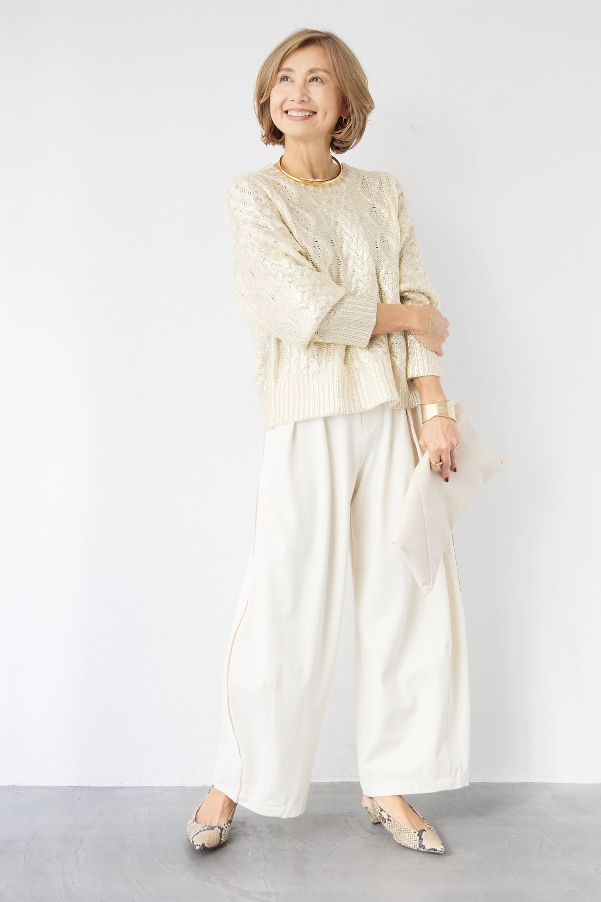 ◆ 箔デザインケーブルニット