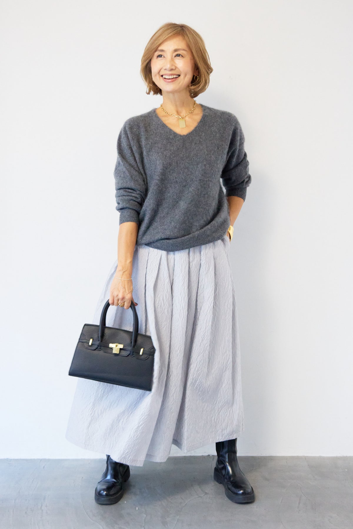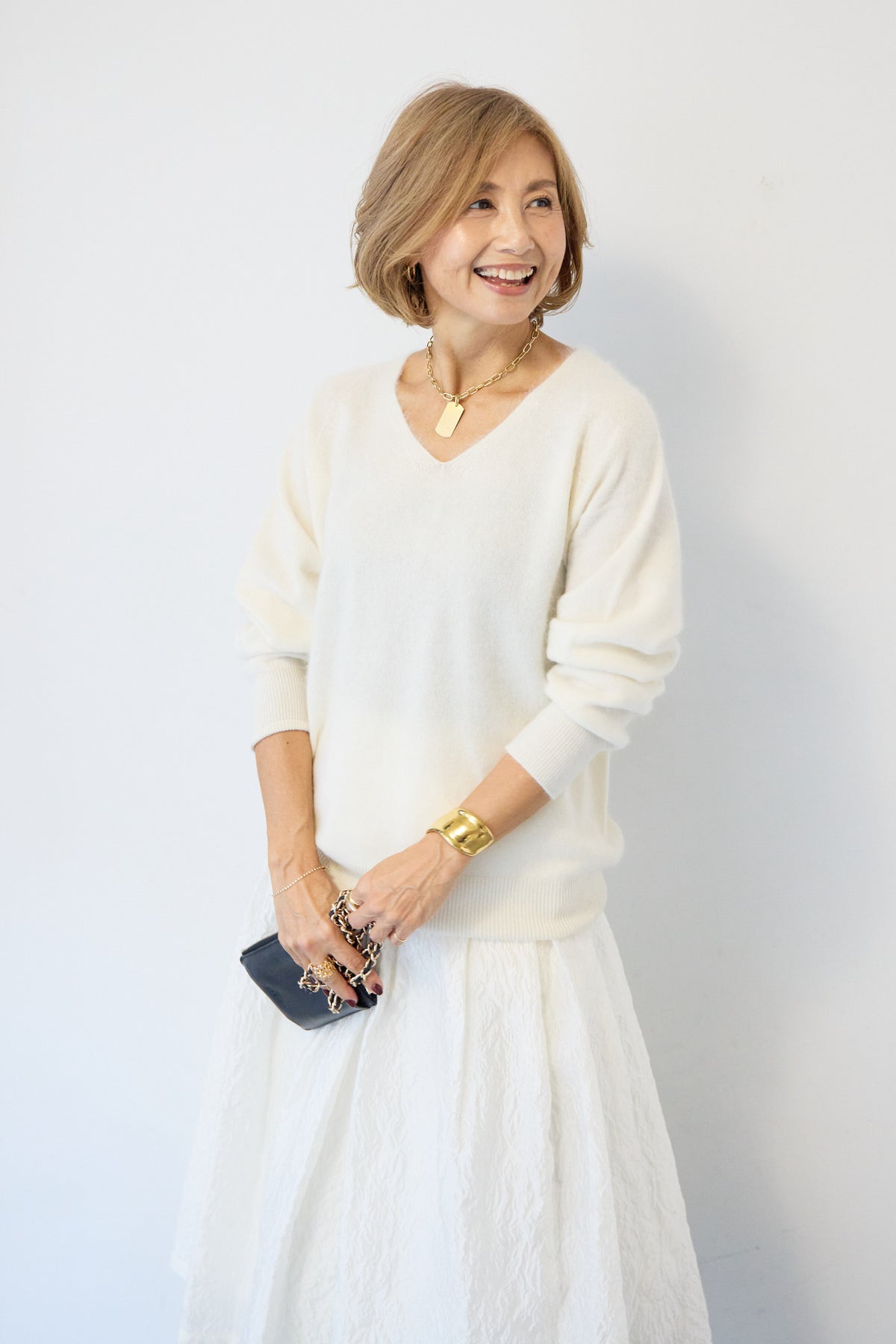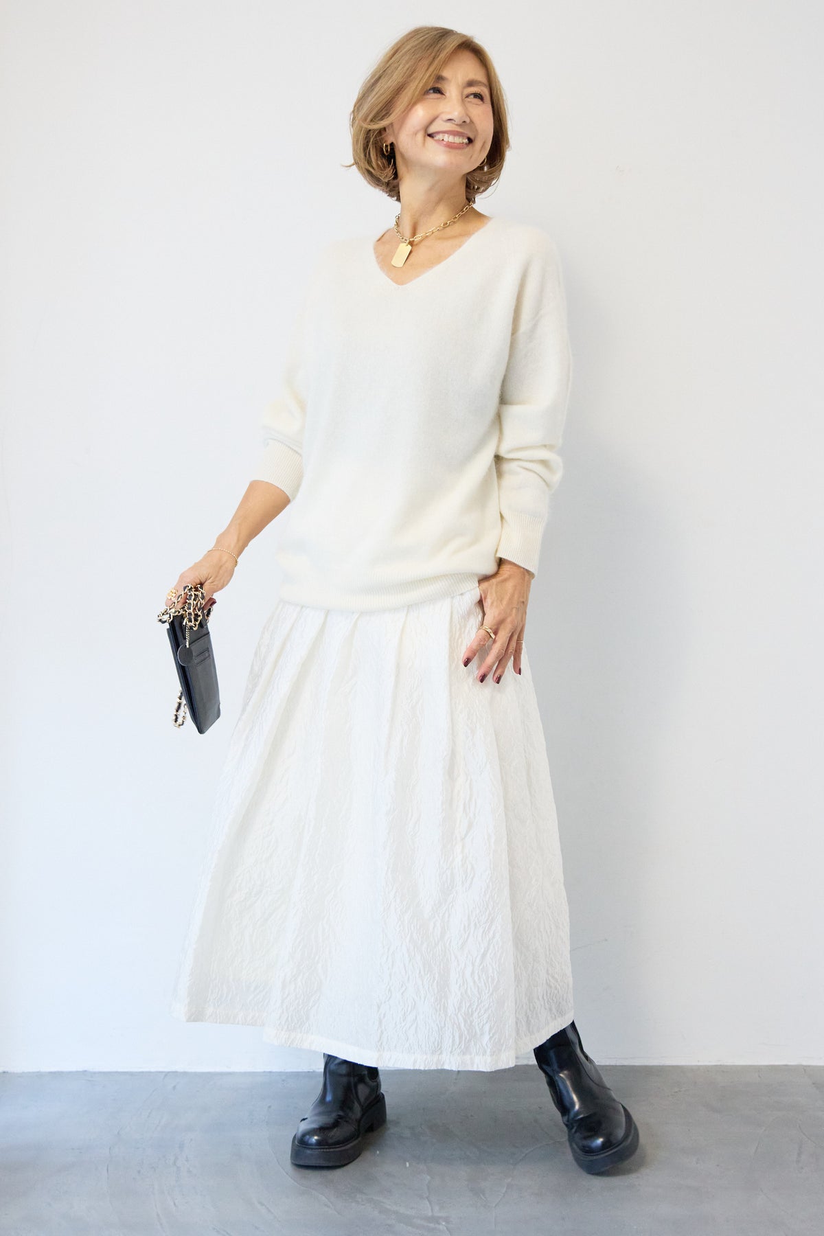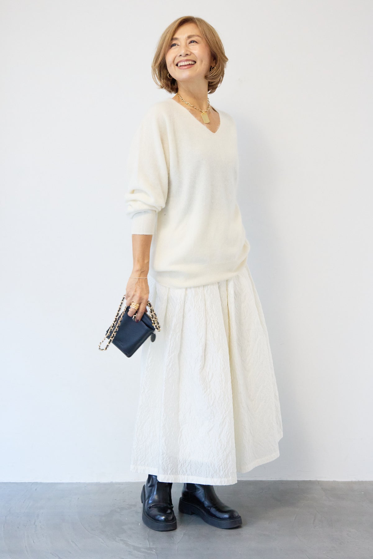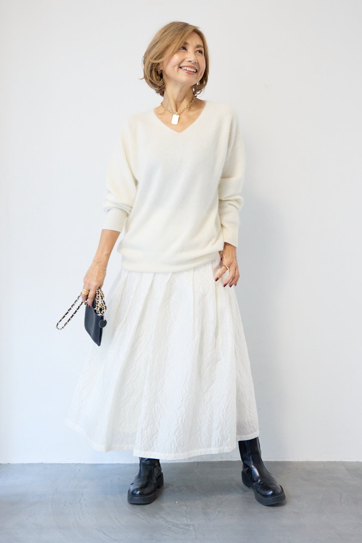 カシミヤウールVネックニット/ジャガードタックフレアスカート