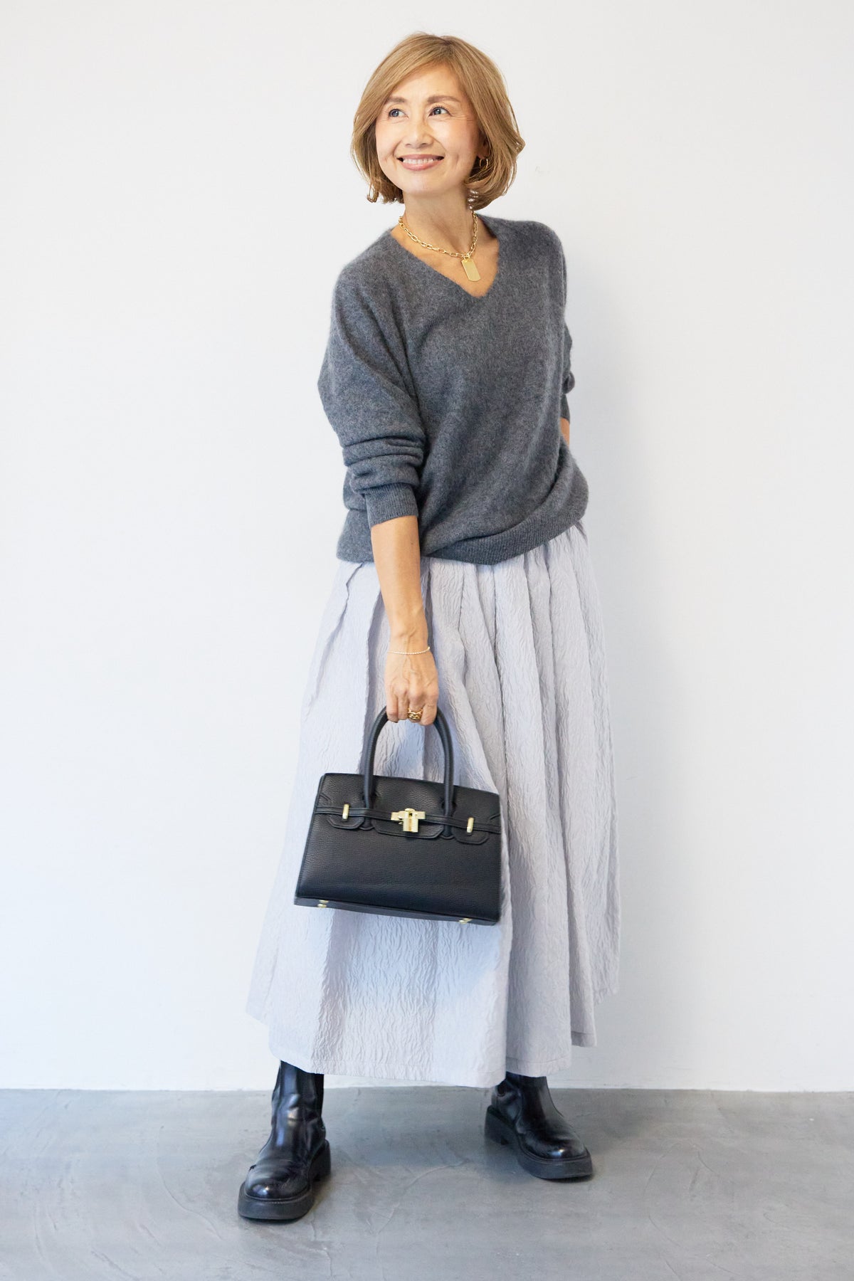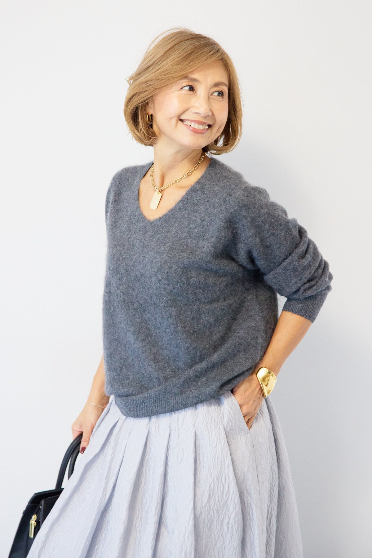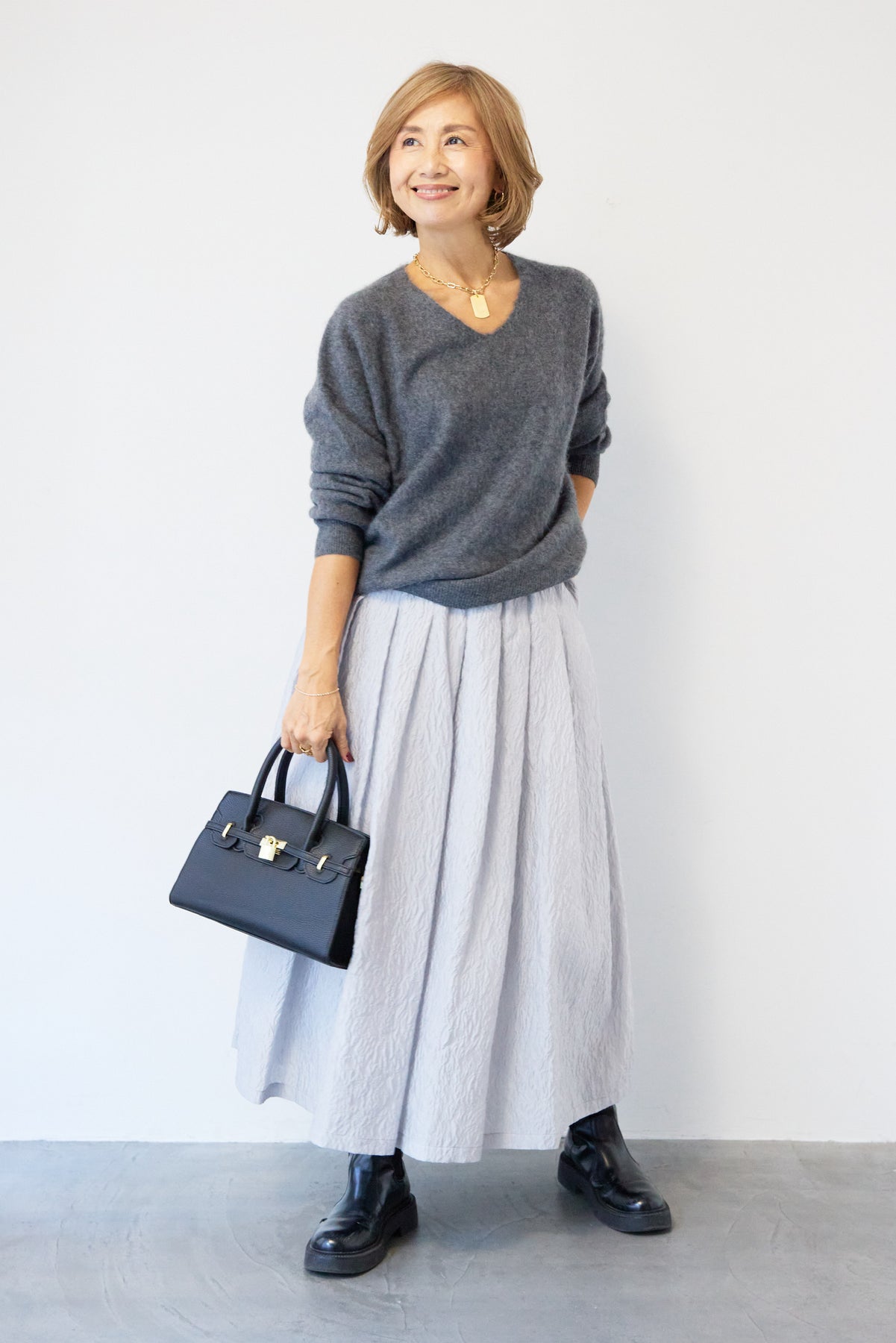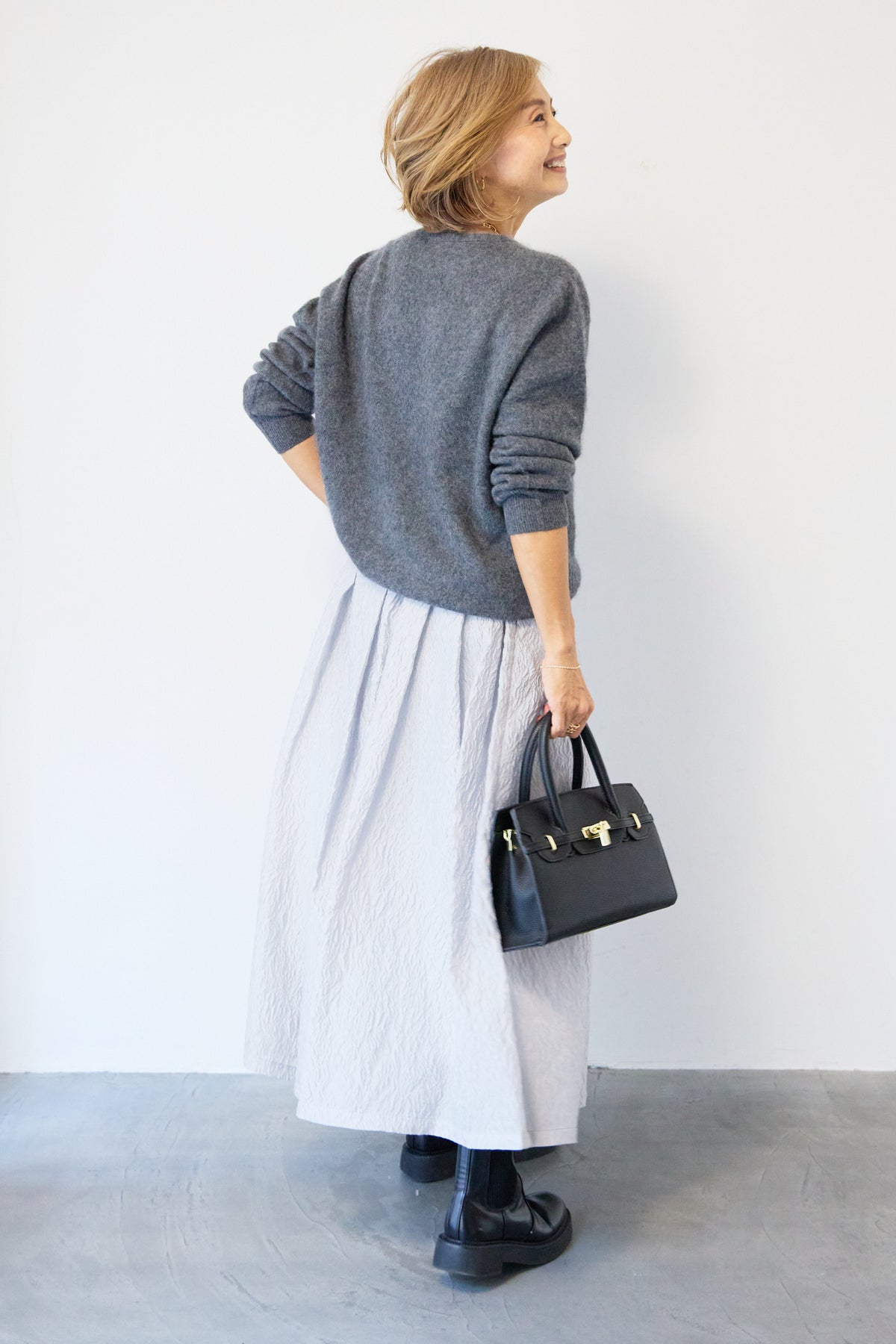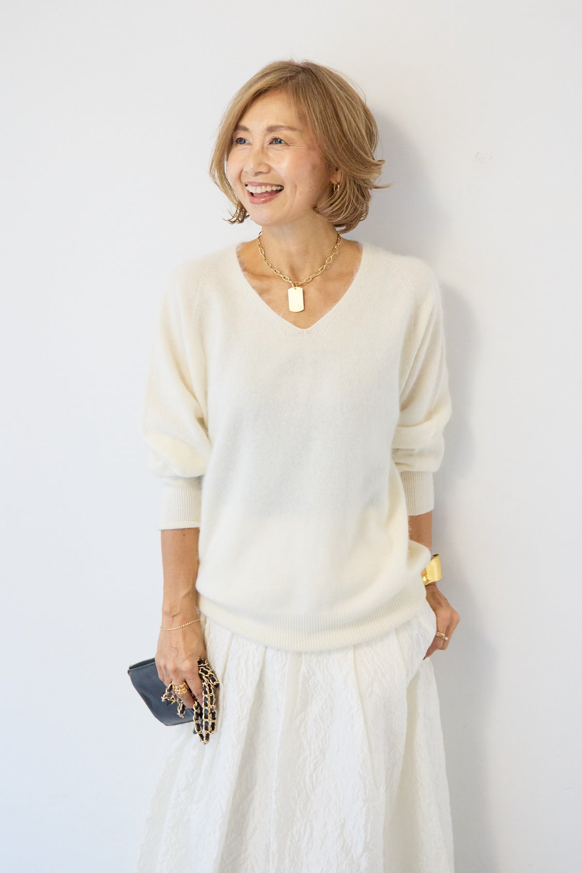カシミヤウールVネックニット/ジャガードタックフレアスカート