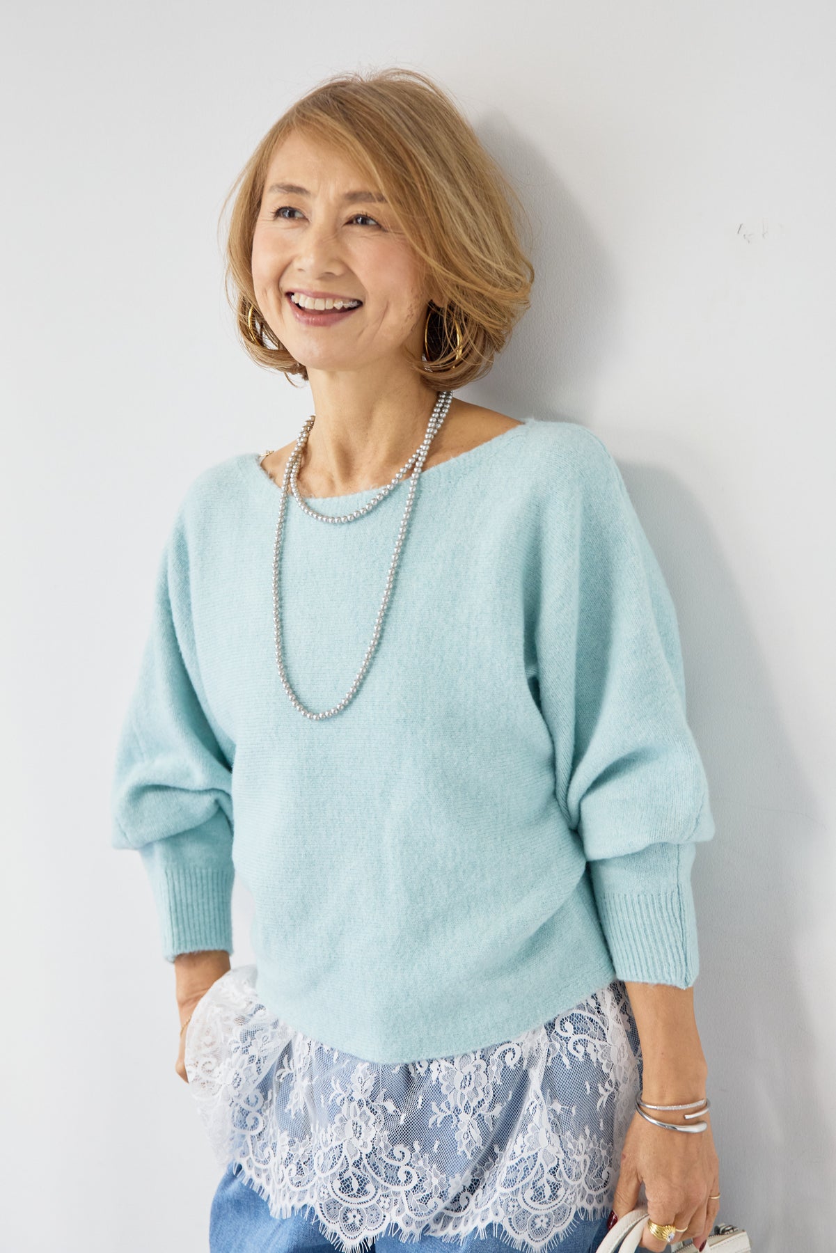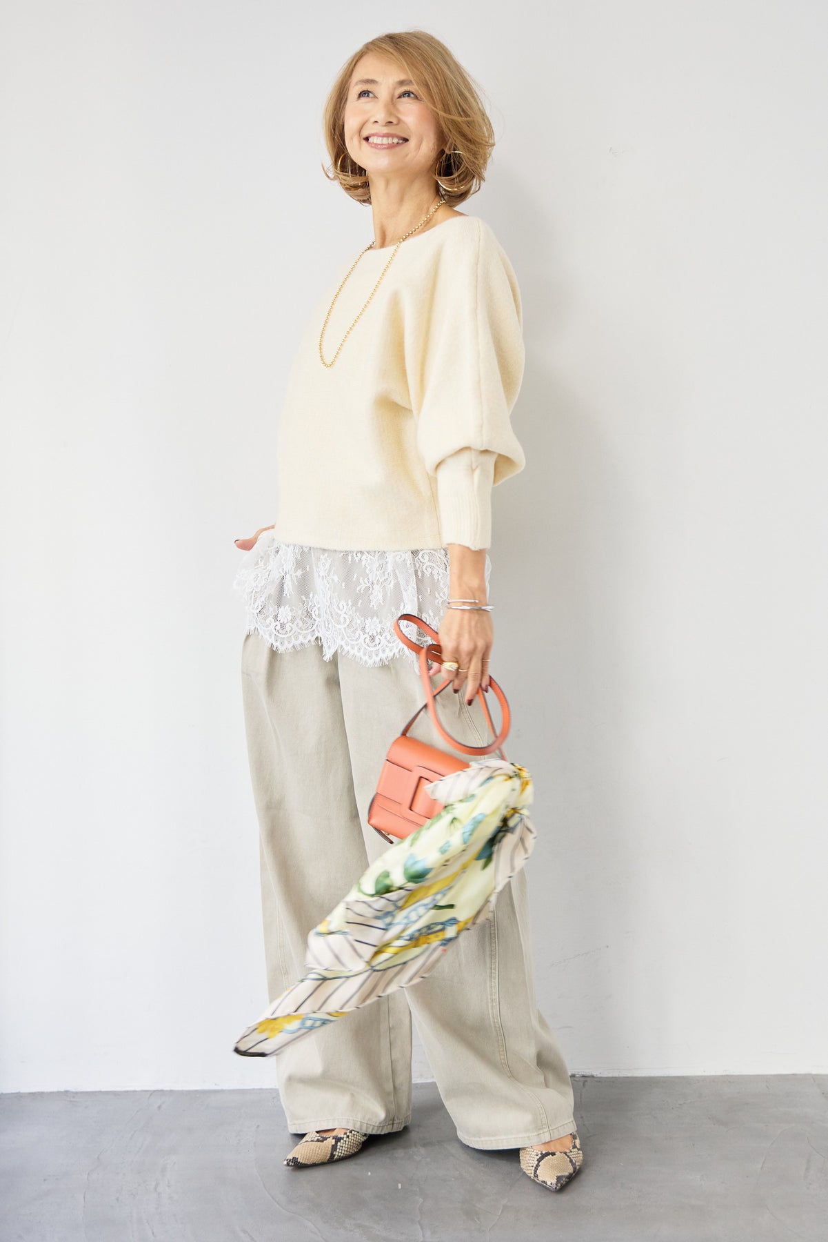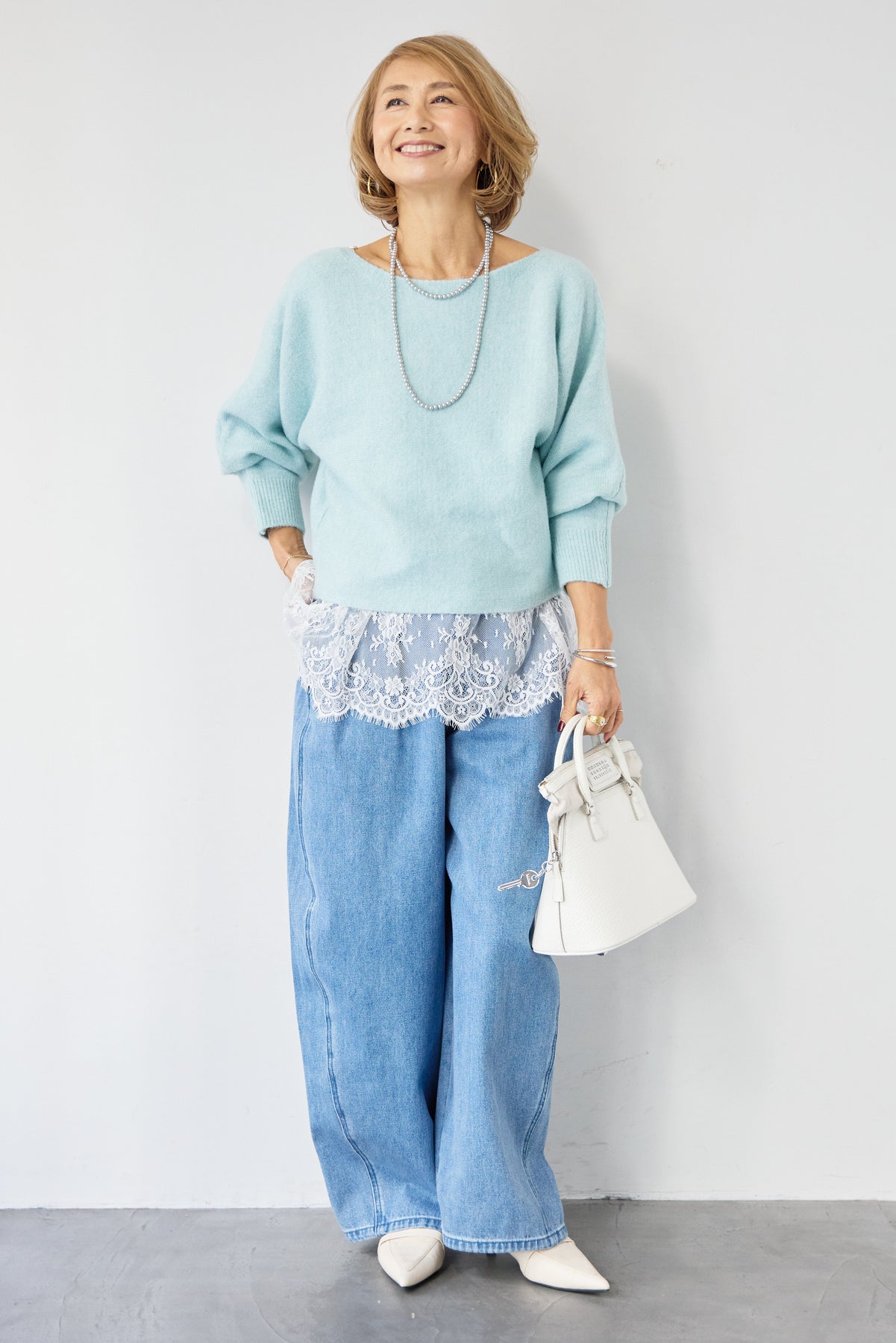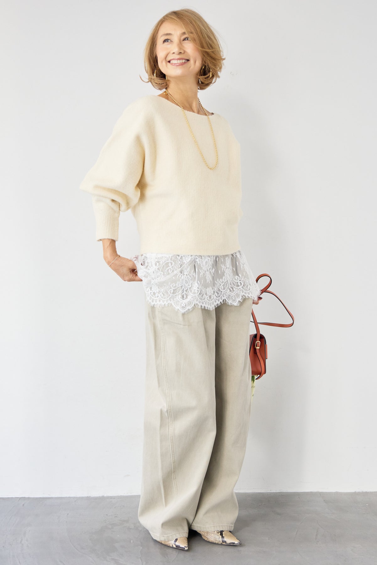 [SET]ふんわりシャギー ボートネックニットプルオーバー+裾レースキャミソール(2set)