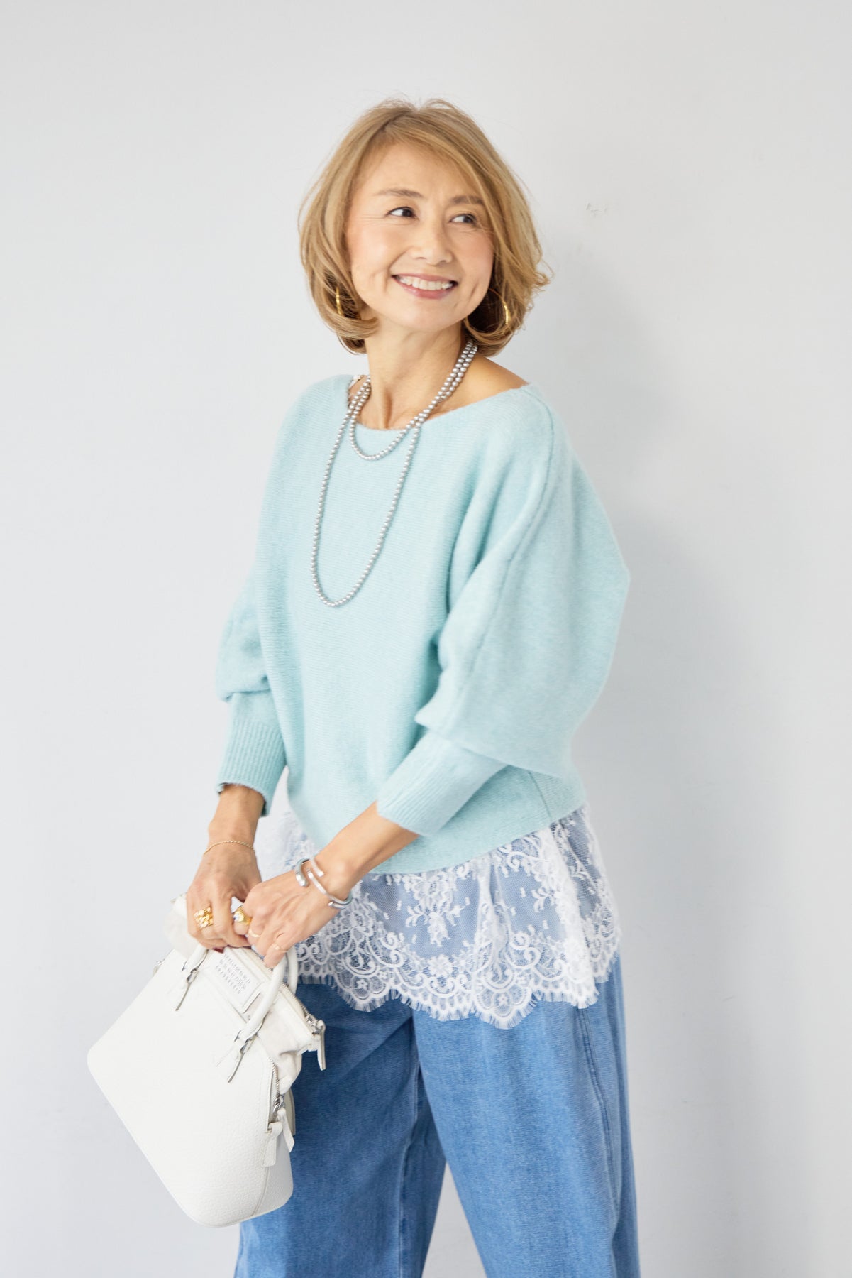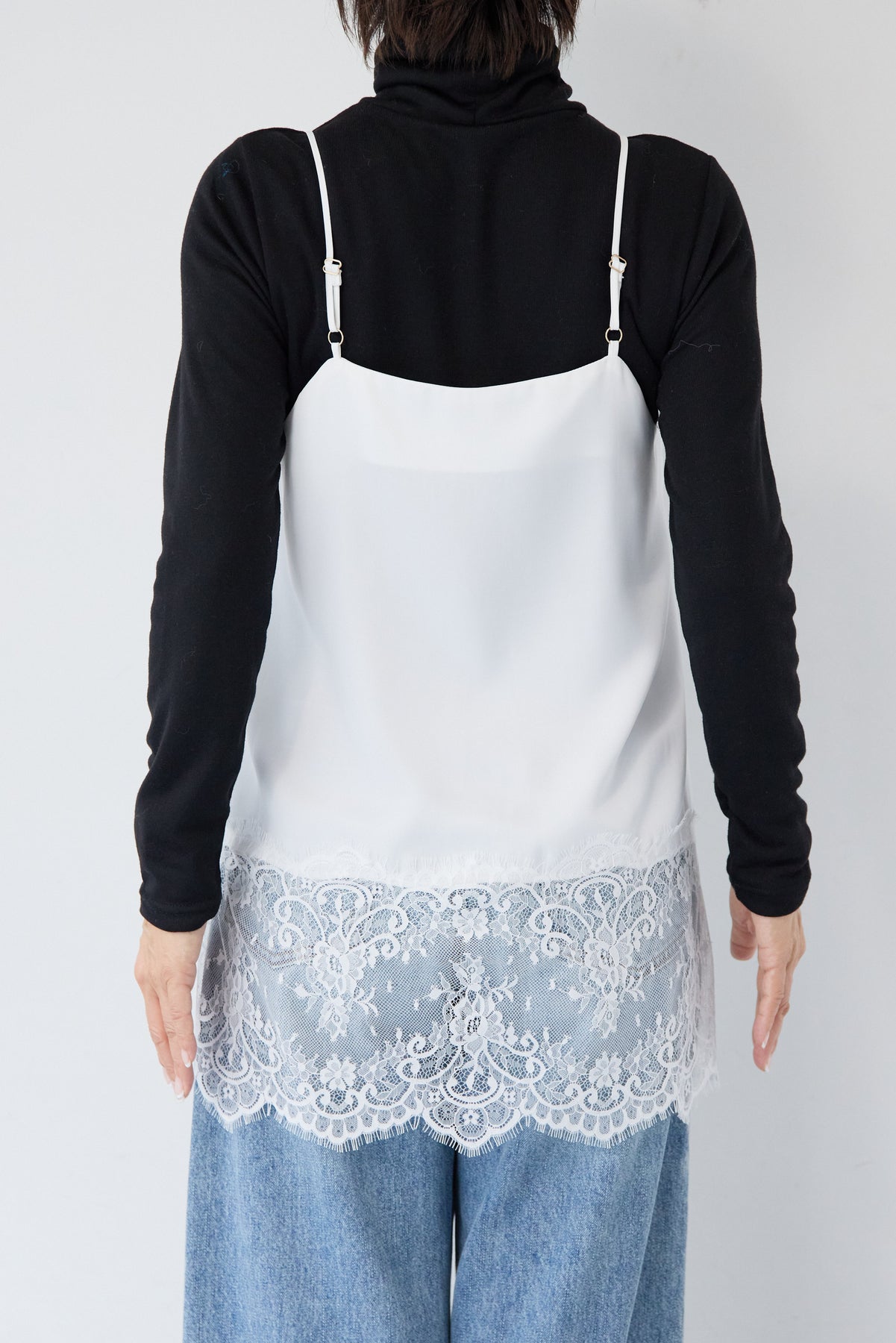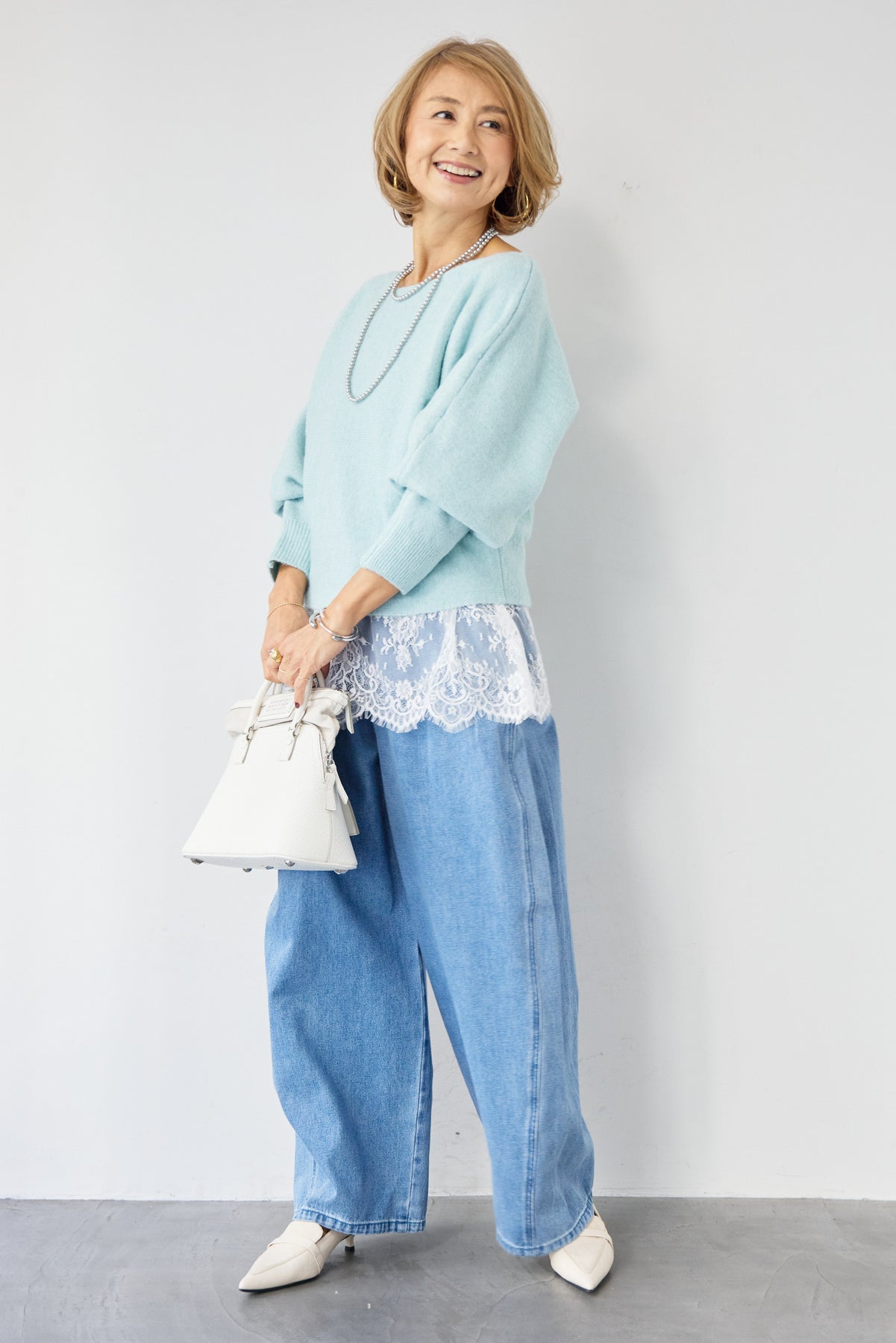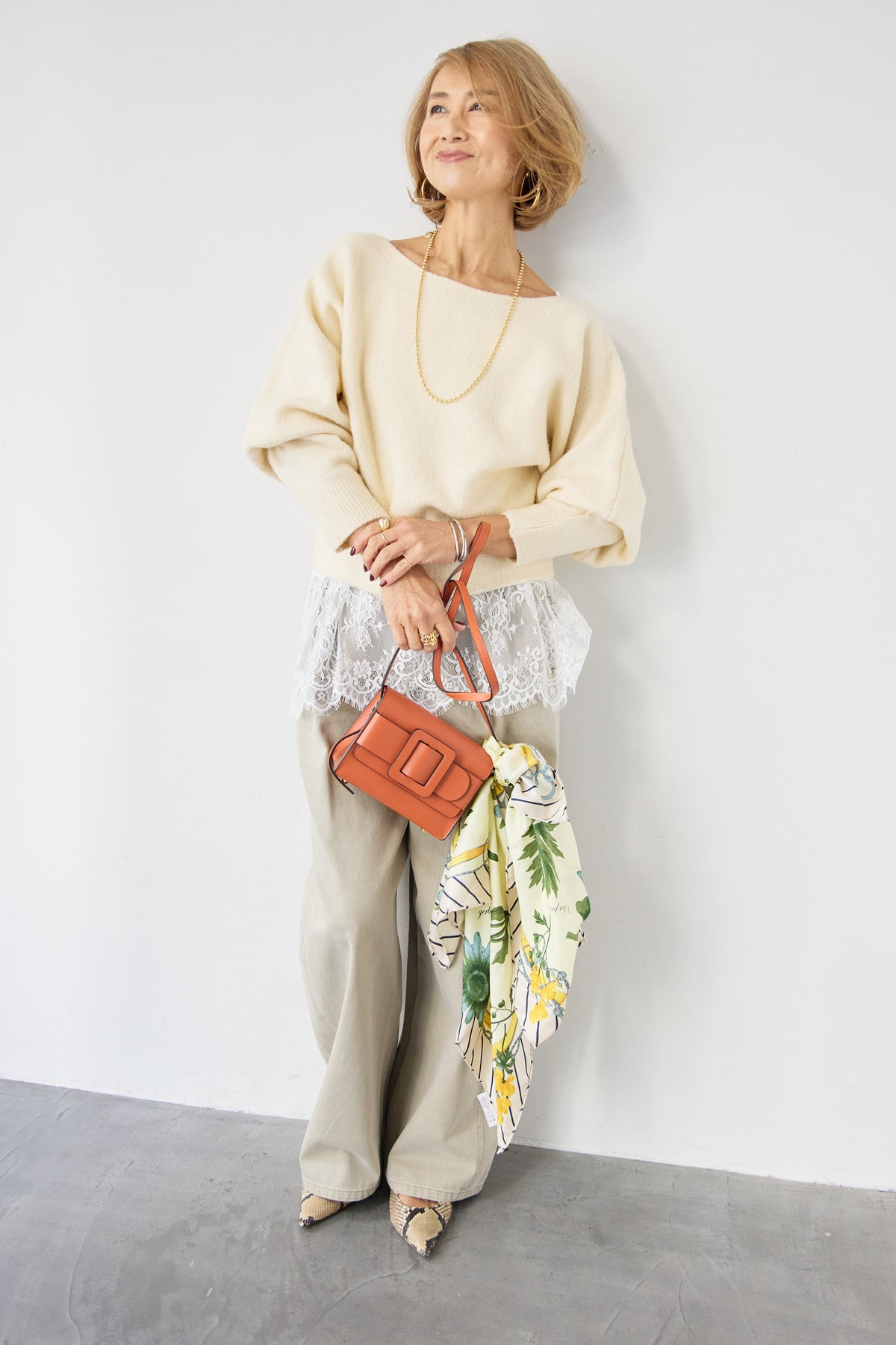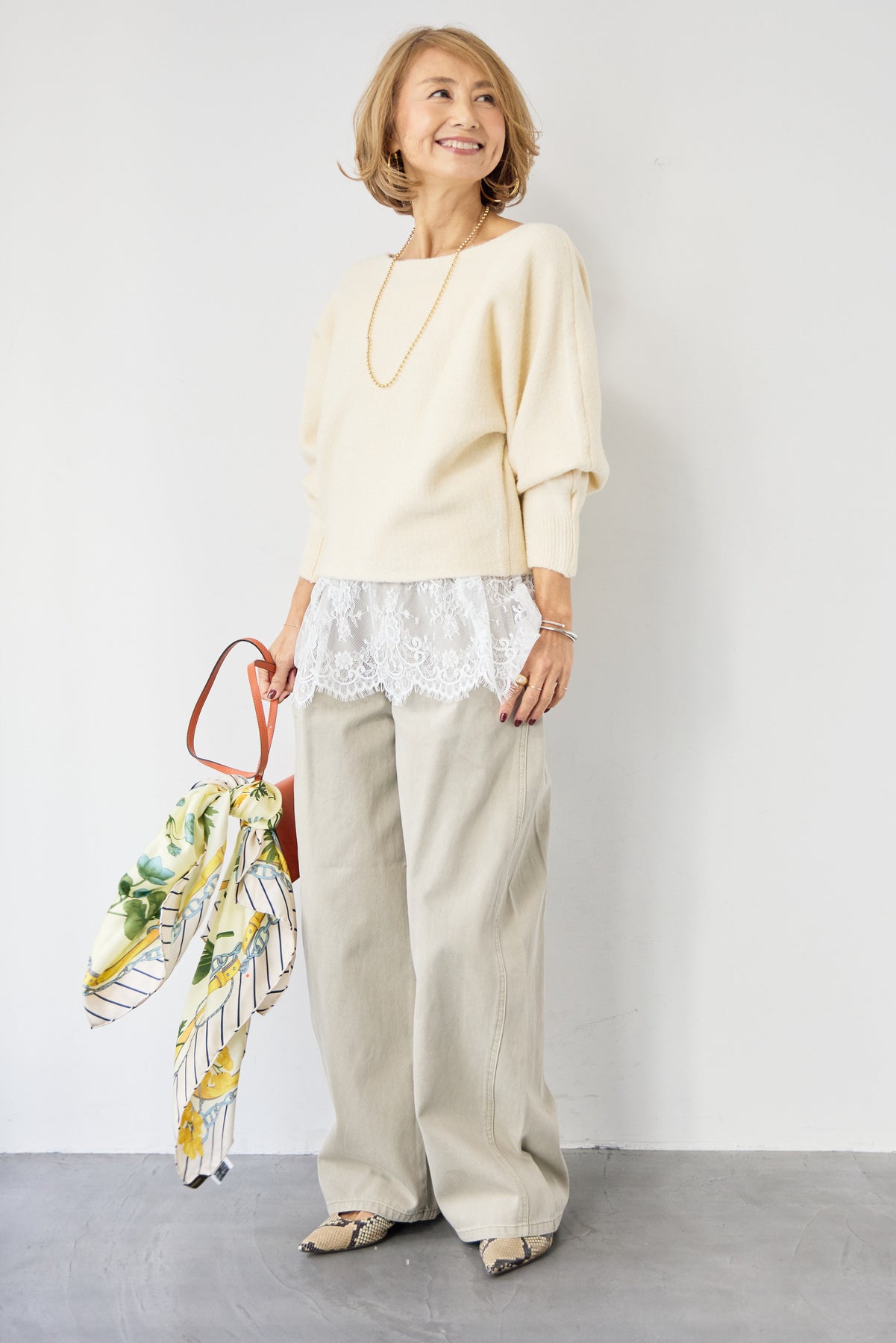 [SET]ふんわりシャギー ボートネックニットプルオーバー+裾レースキャミソール(2set)