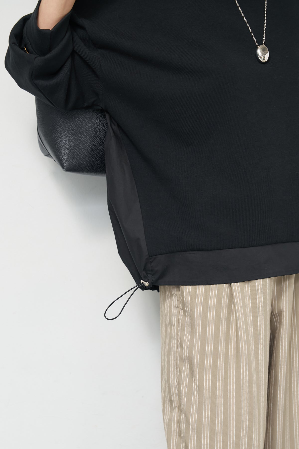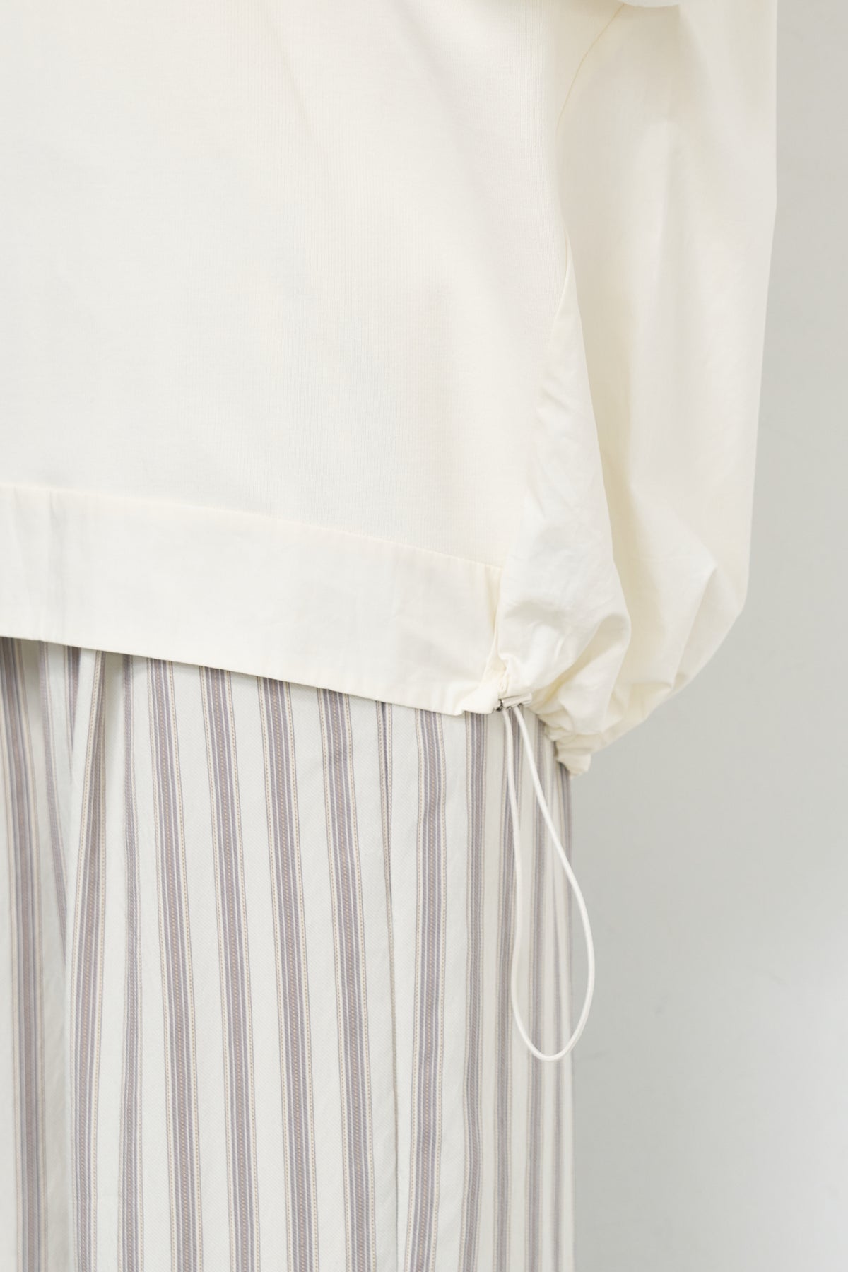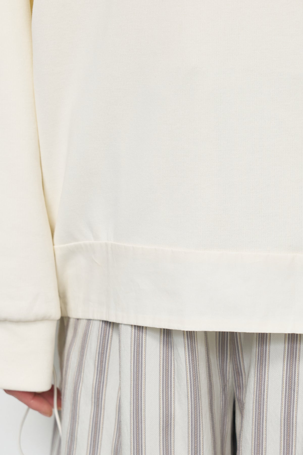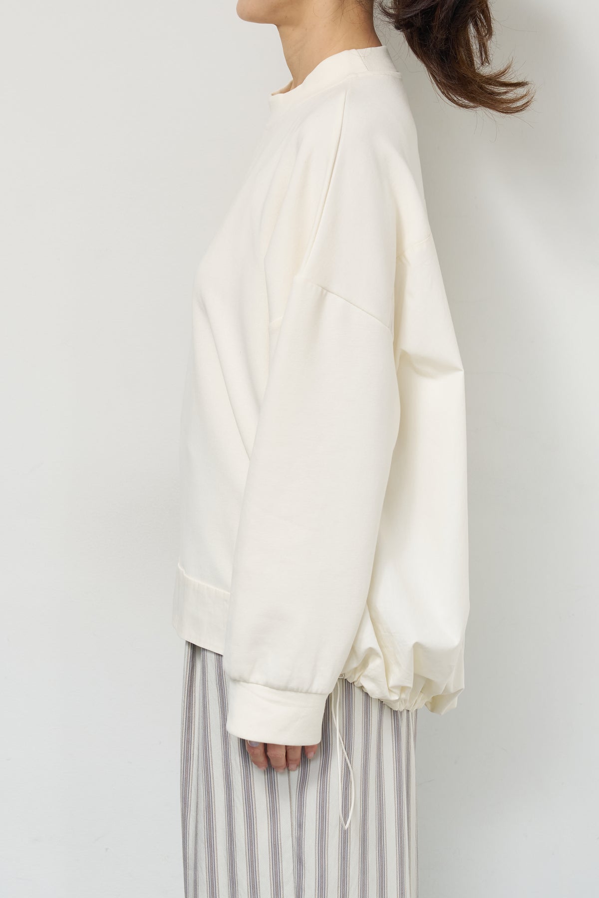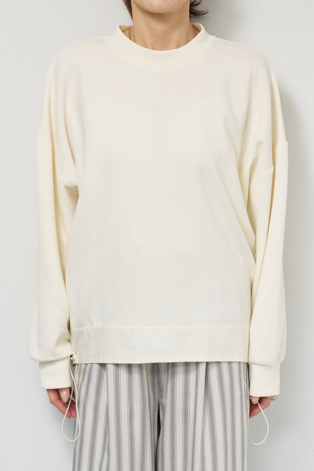 裾切替ハイネックプルオーバー/ストライプイージーパンツ