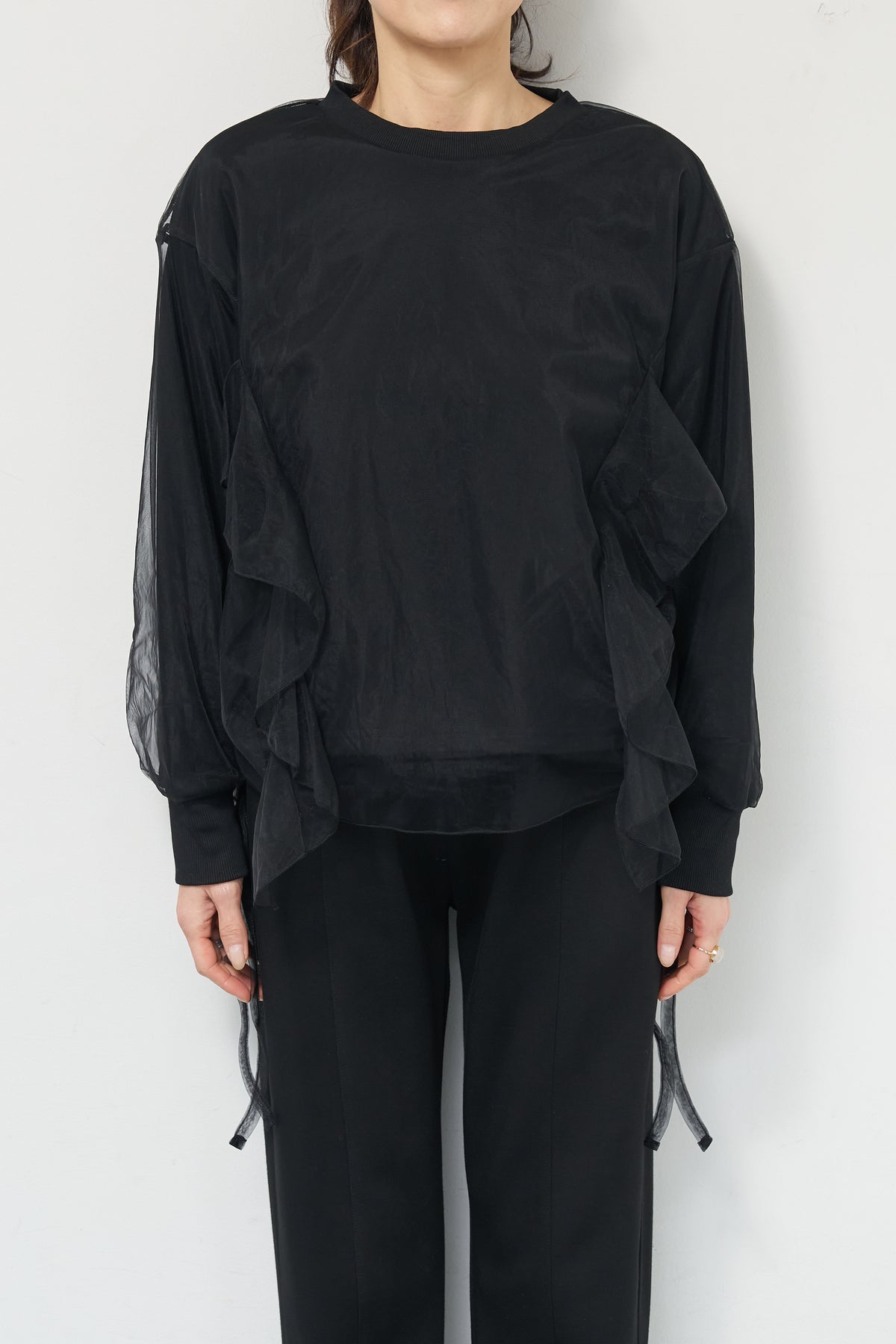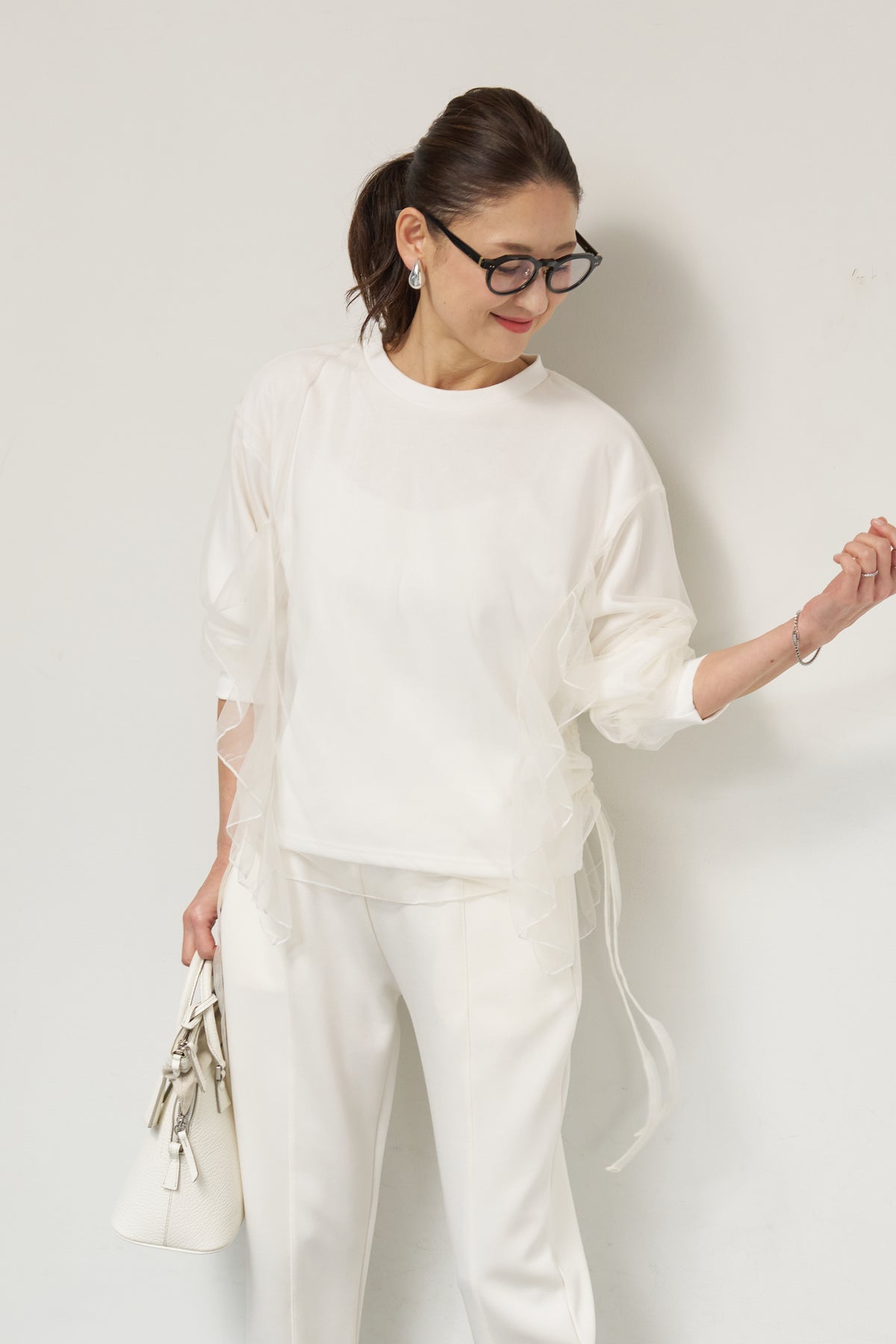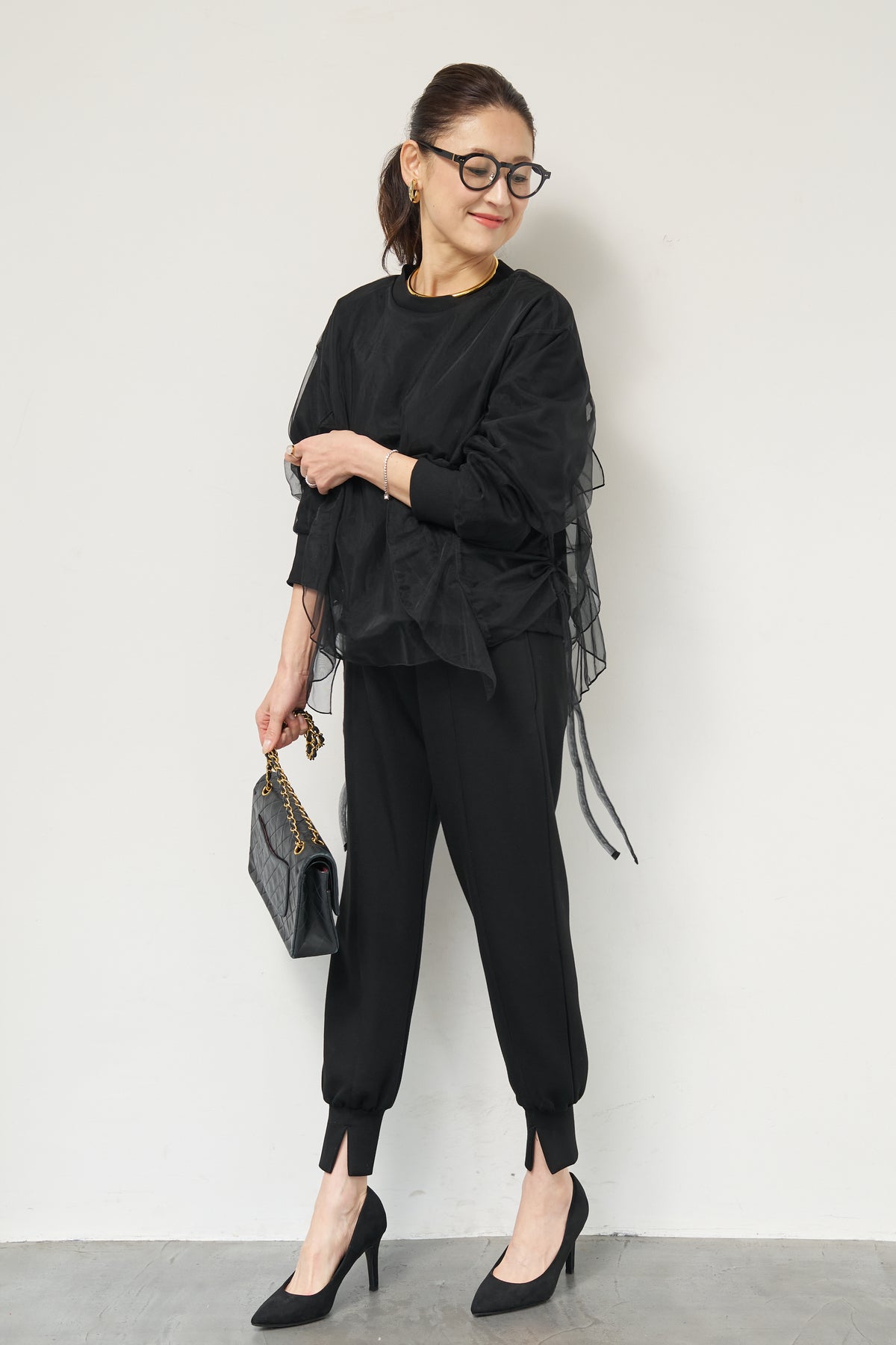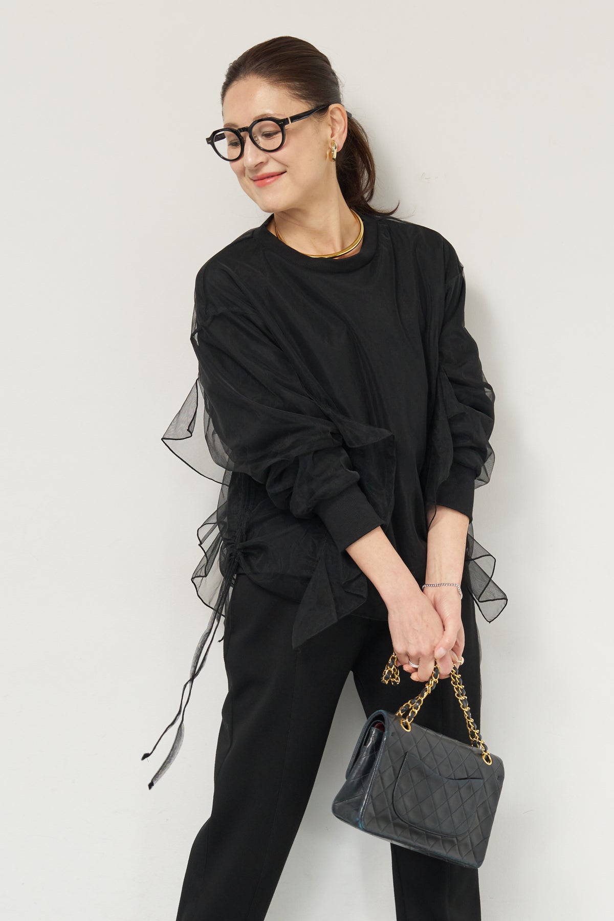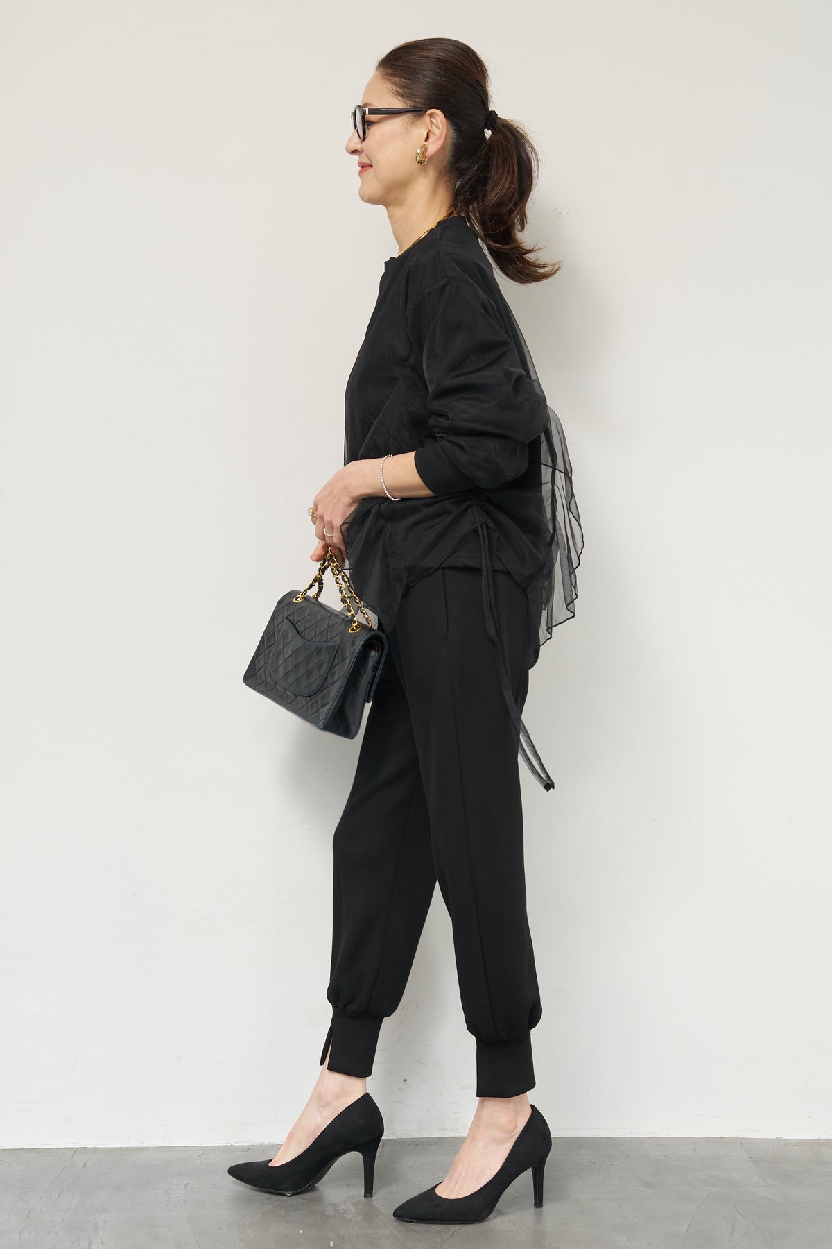 チュールレイヤード裏毛プルオーバー/ライトダンボールジョガーパンツ