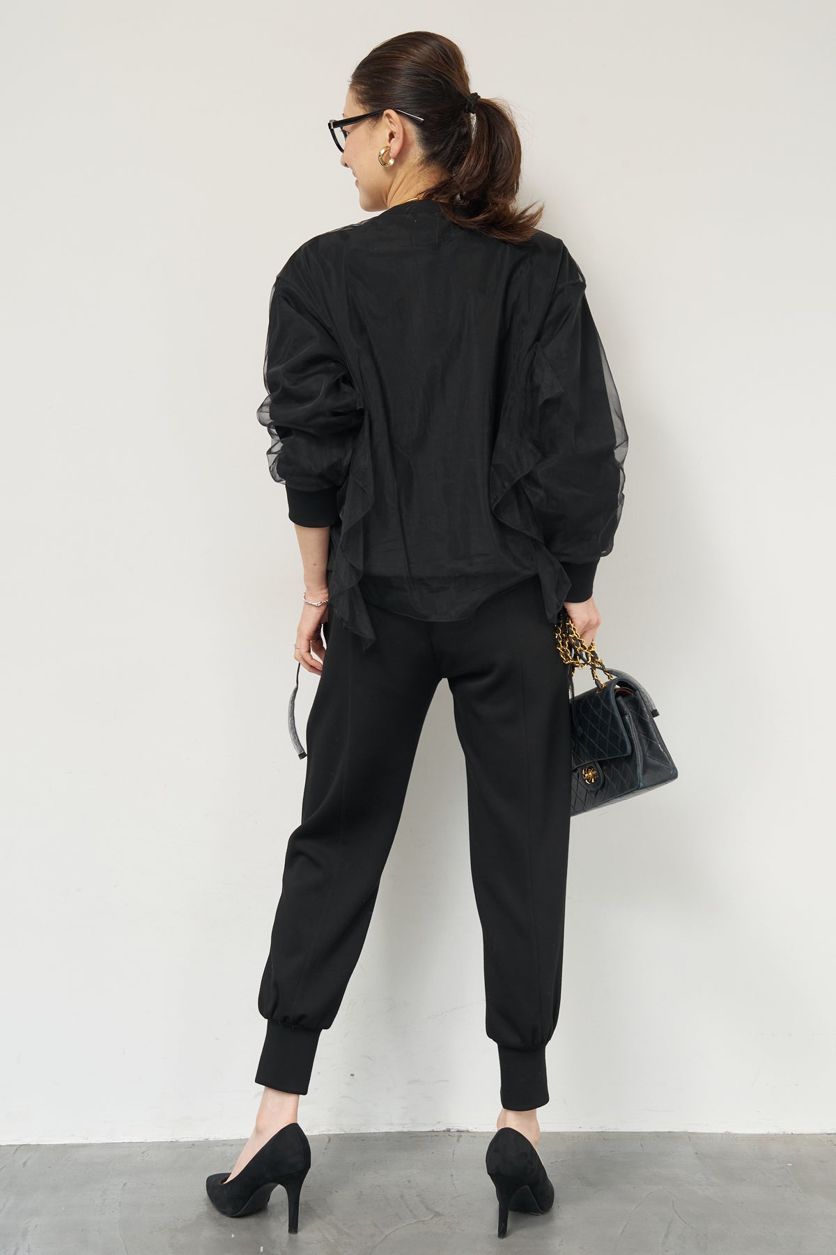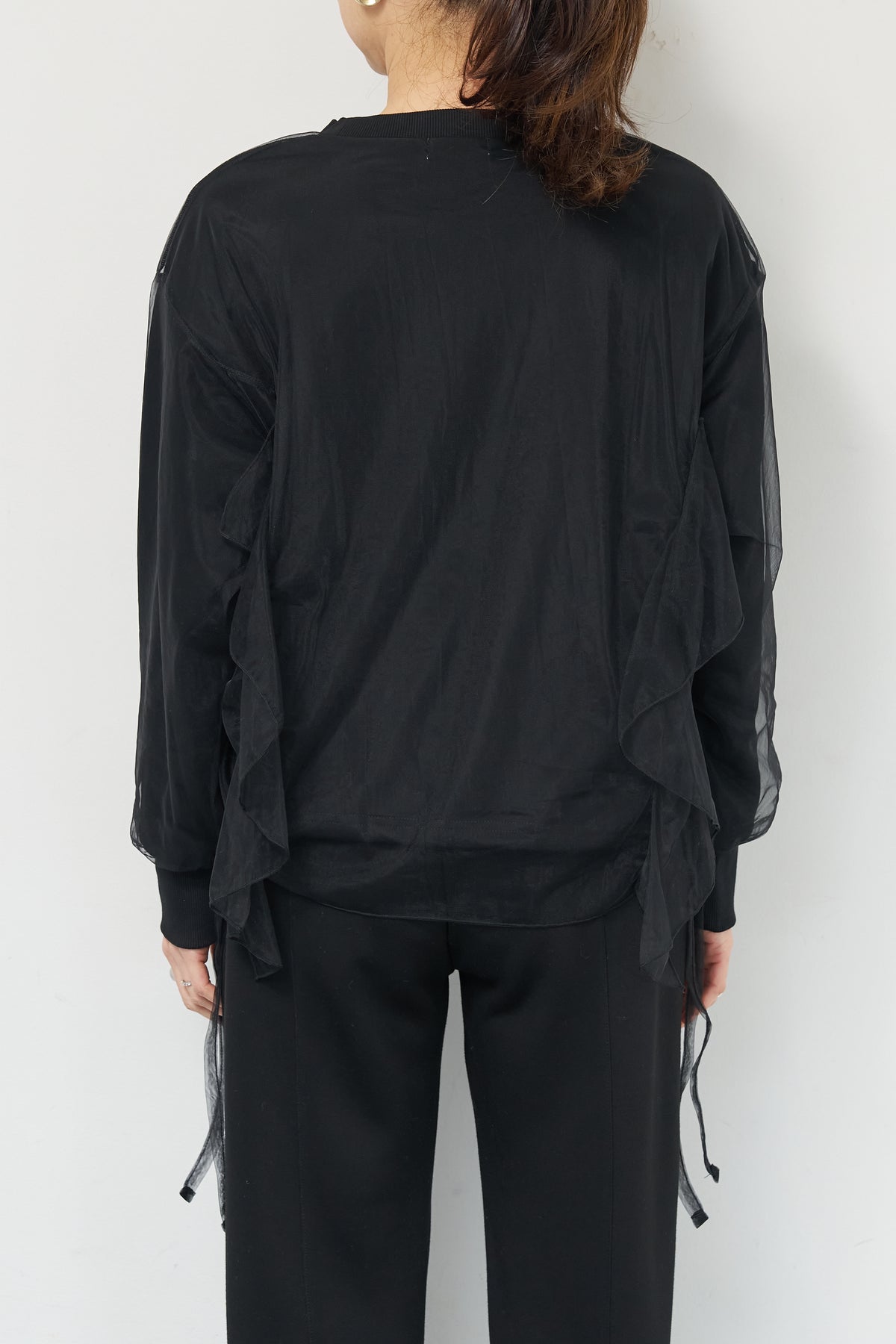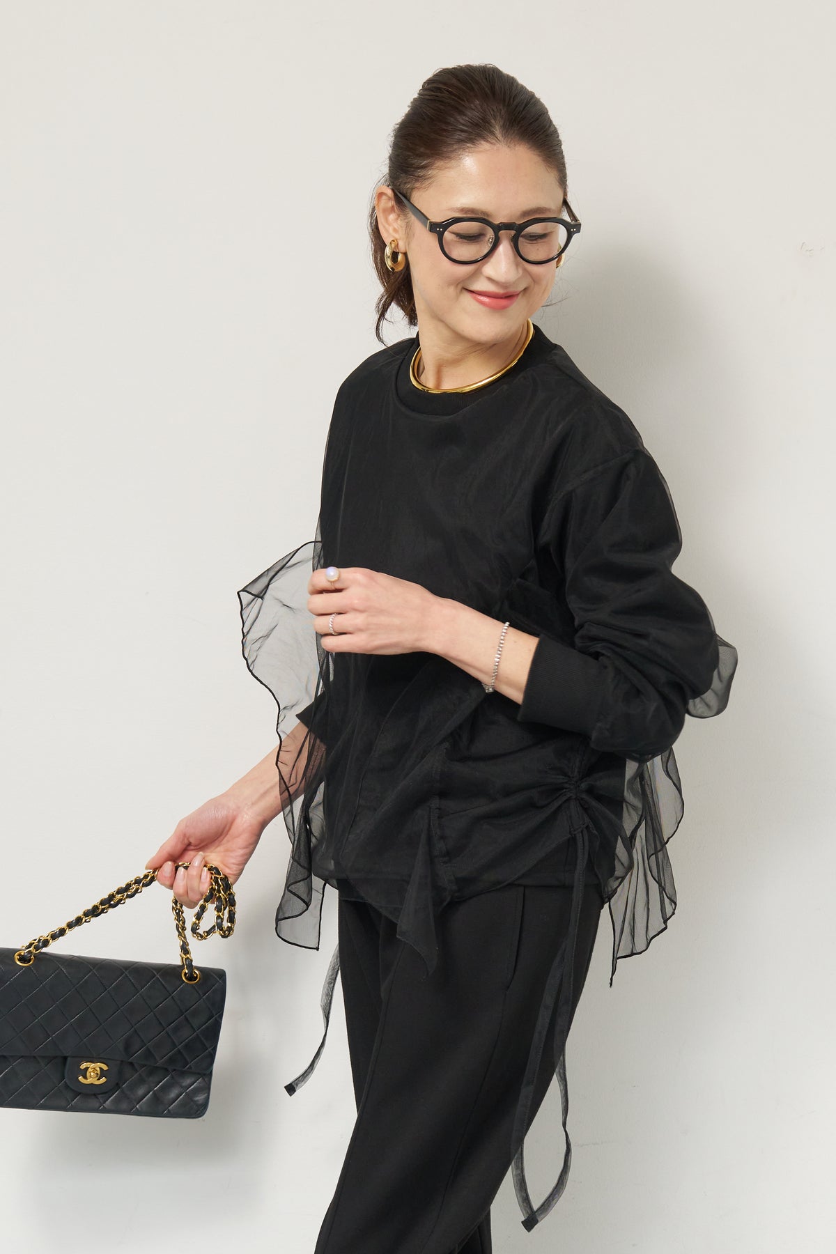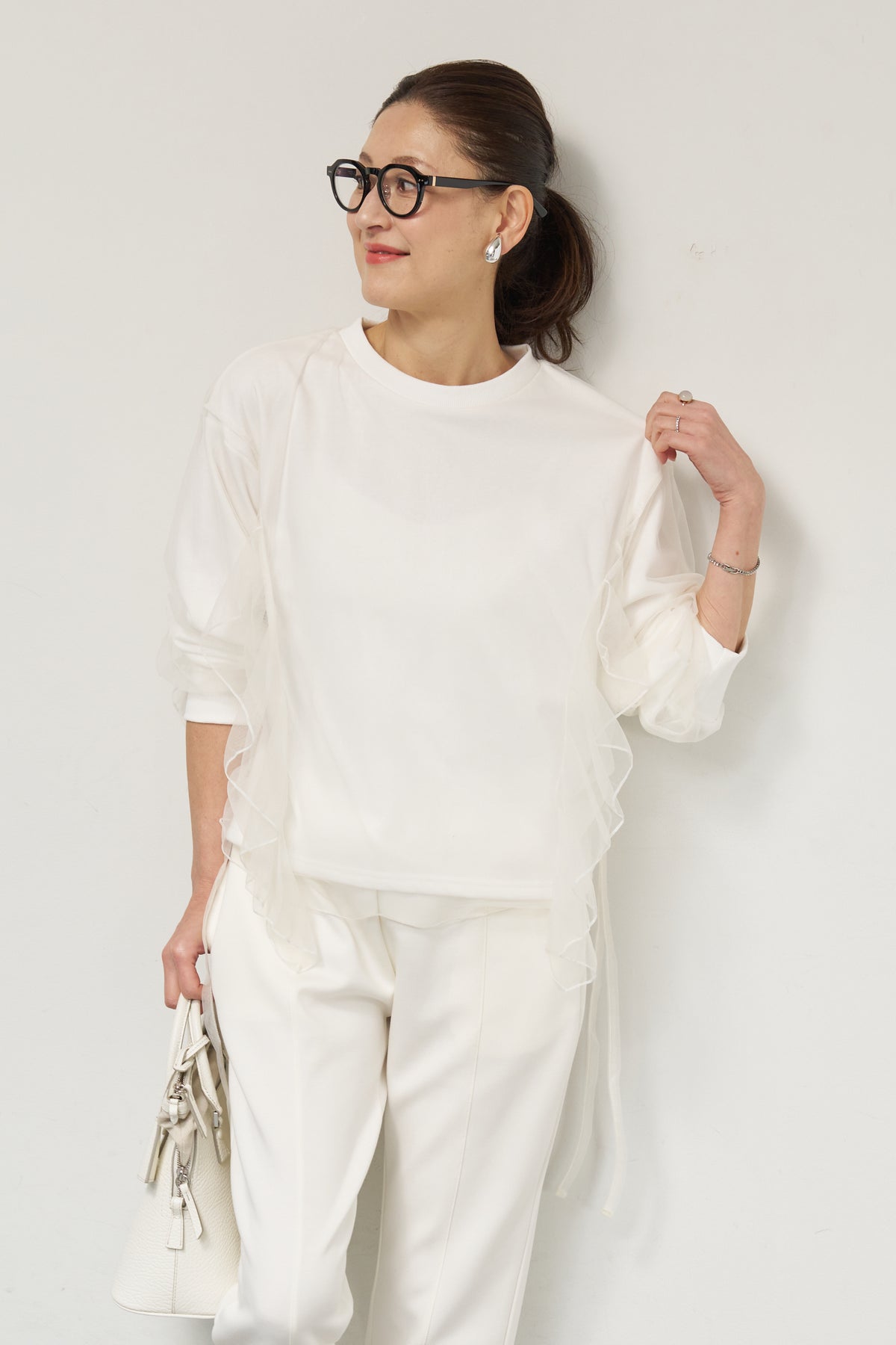 チュールレイヤード裏毛プルオーバー/ライトダンボールジョガーパンツ