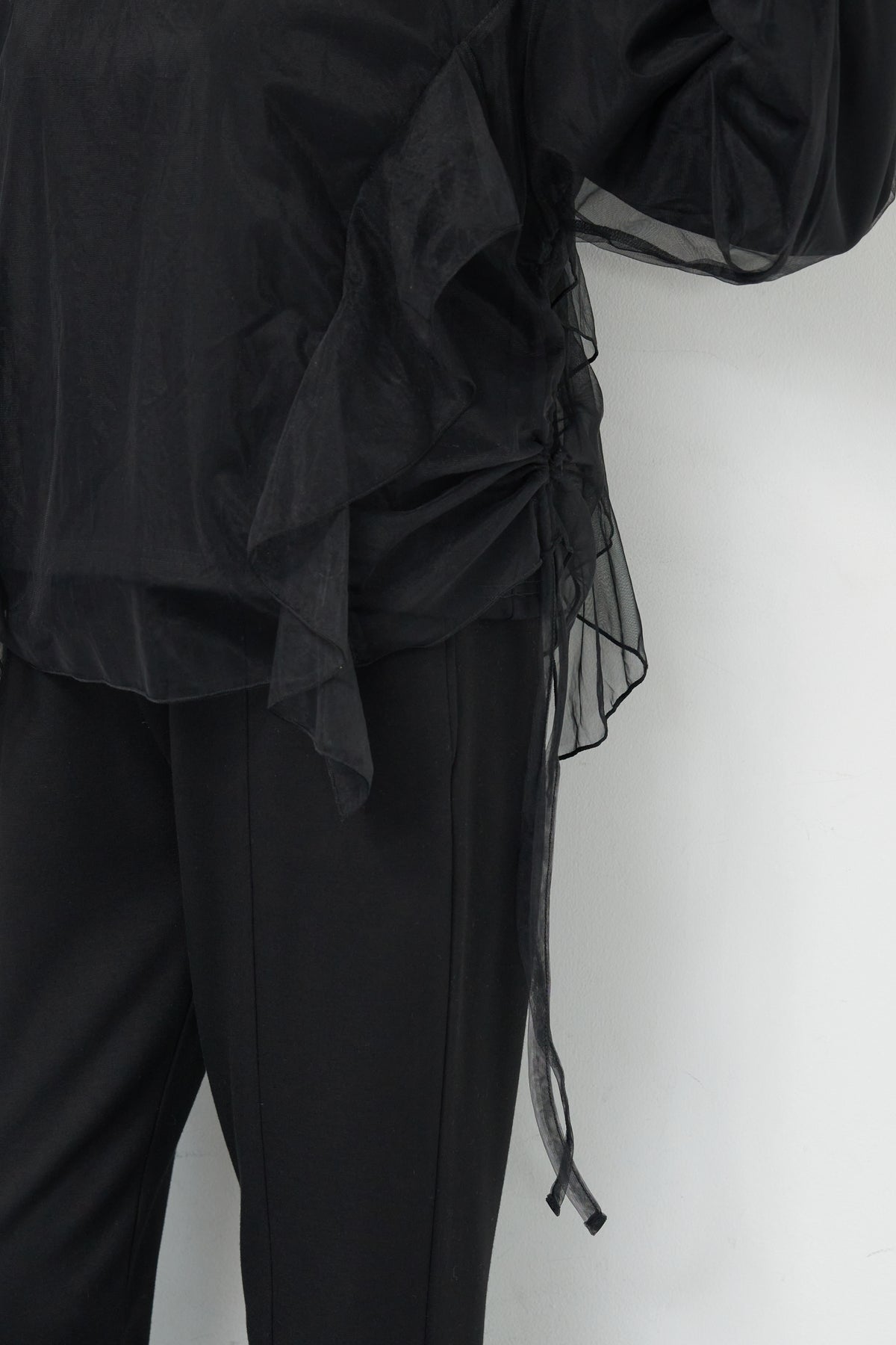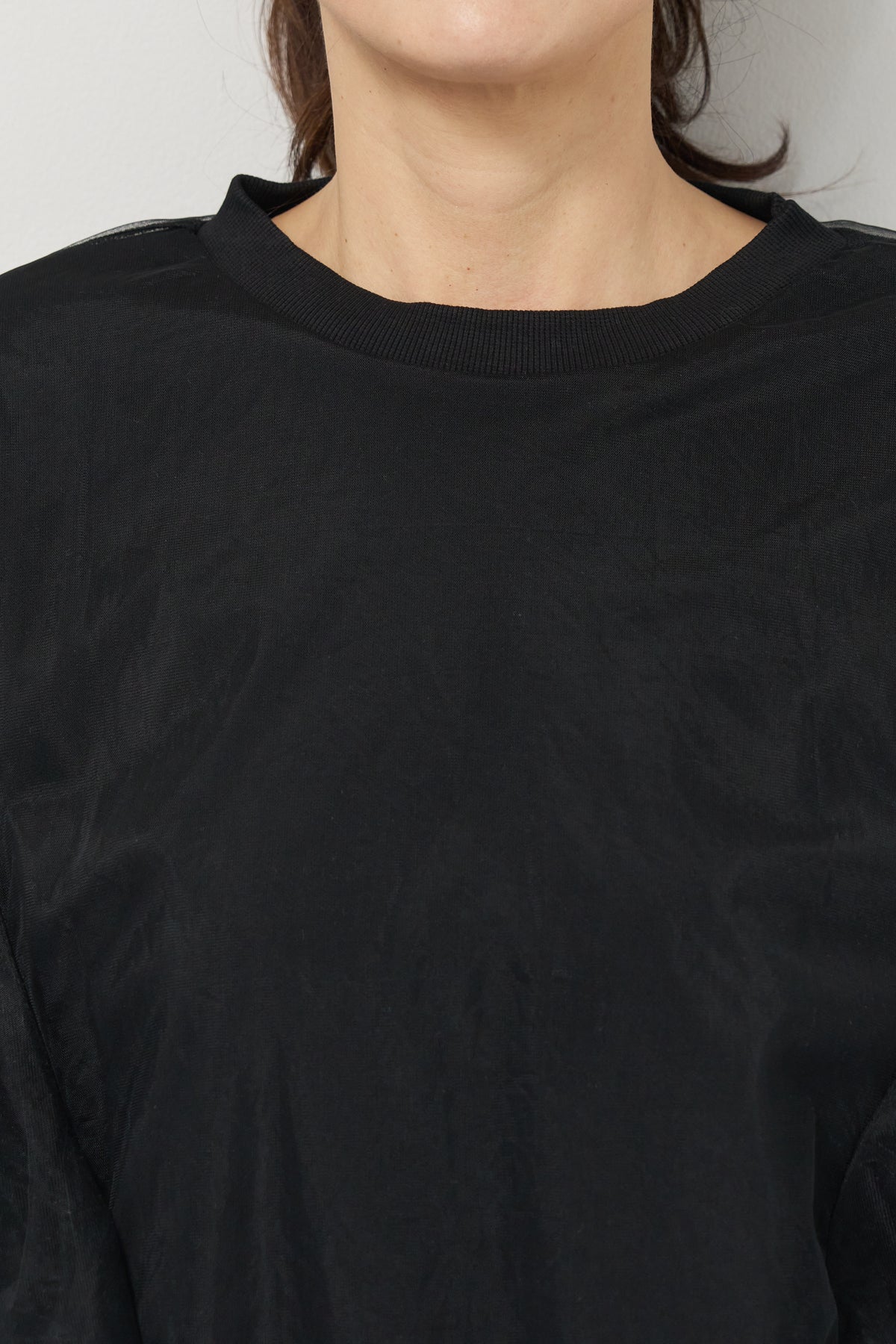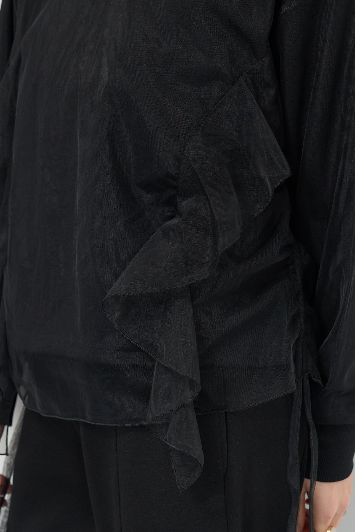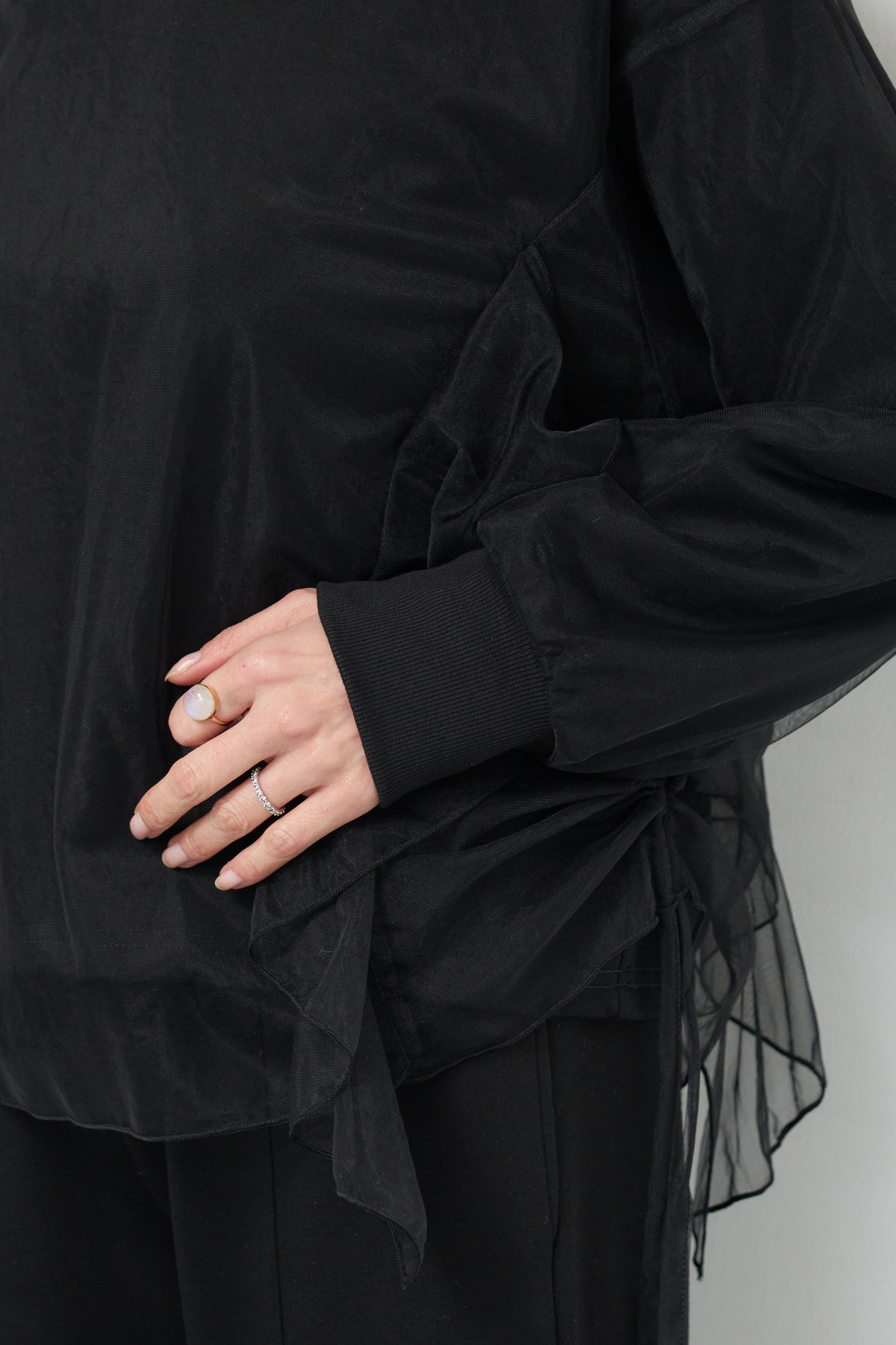 チュールレイヤード裏毛プルオーバー/ライトダンボールジョガーパンツ
