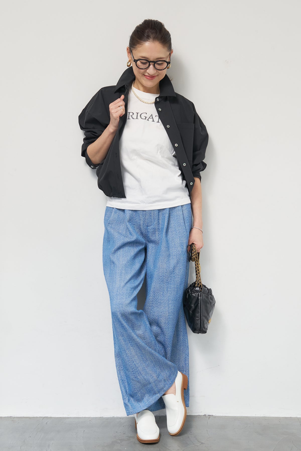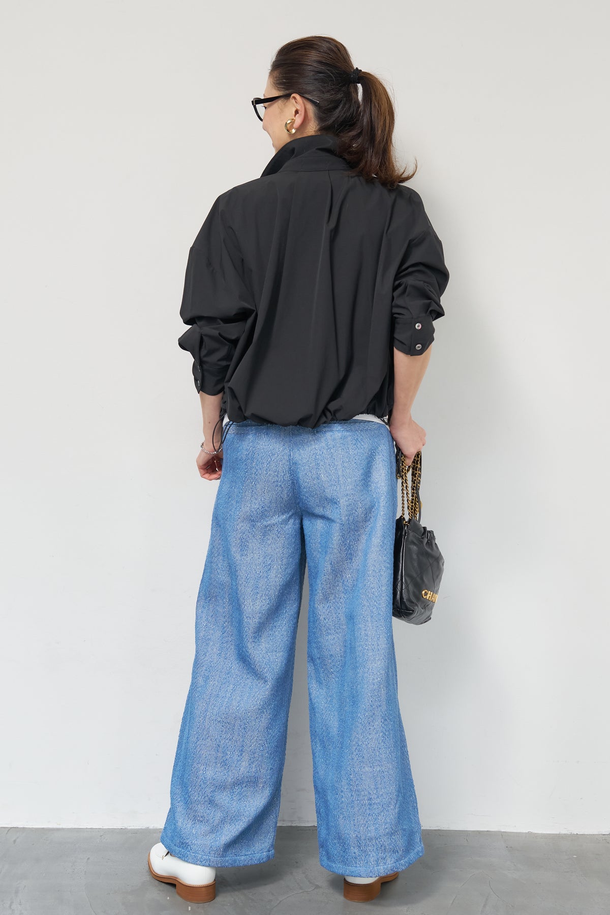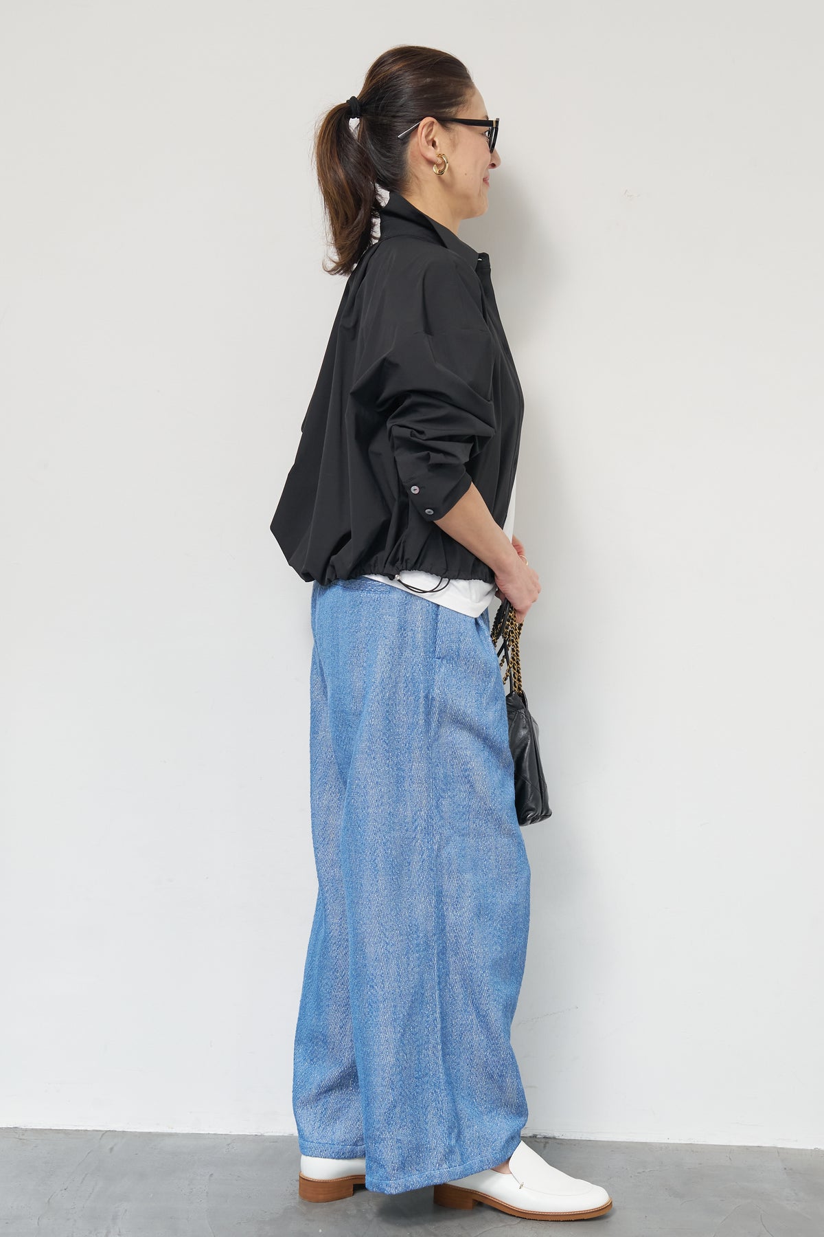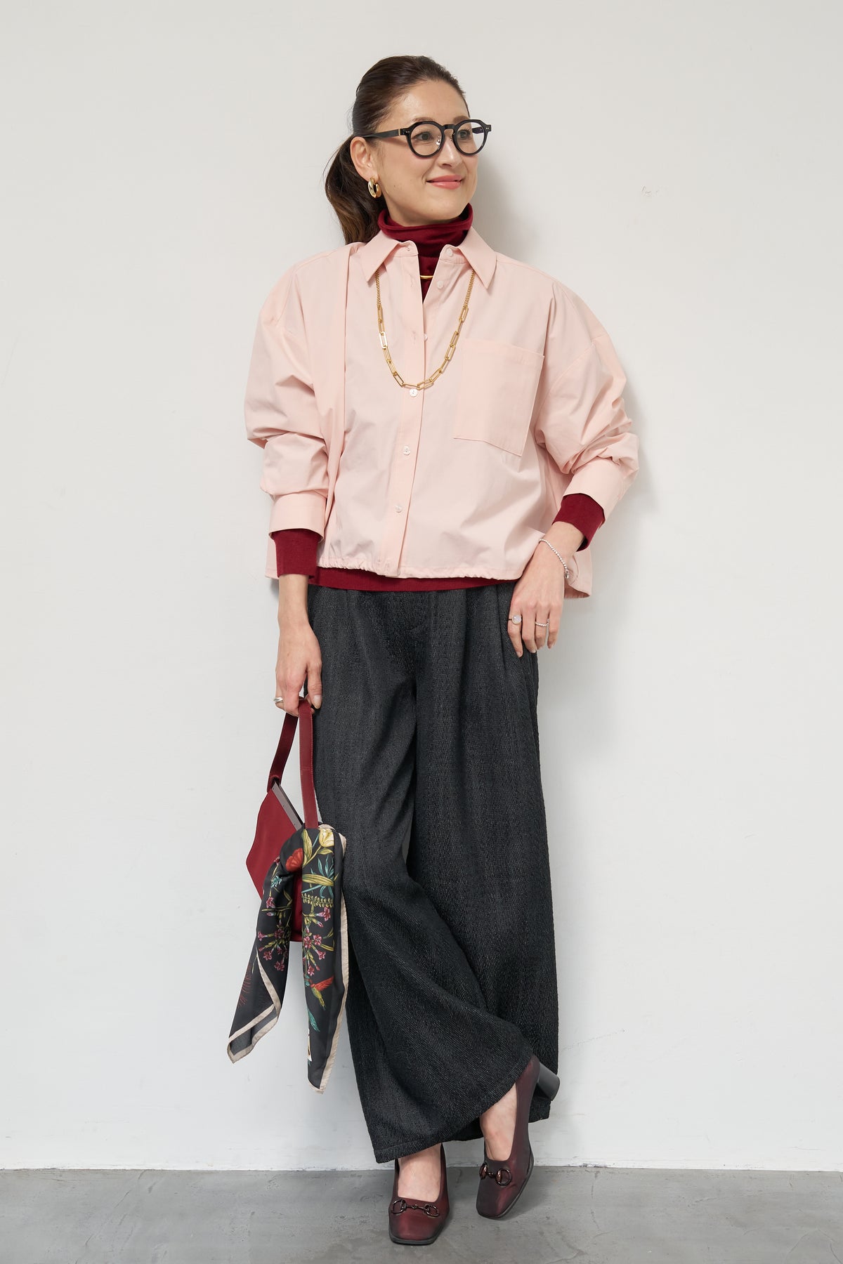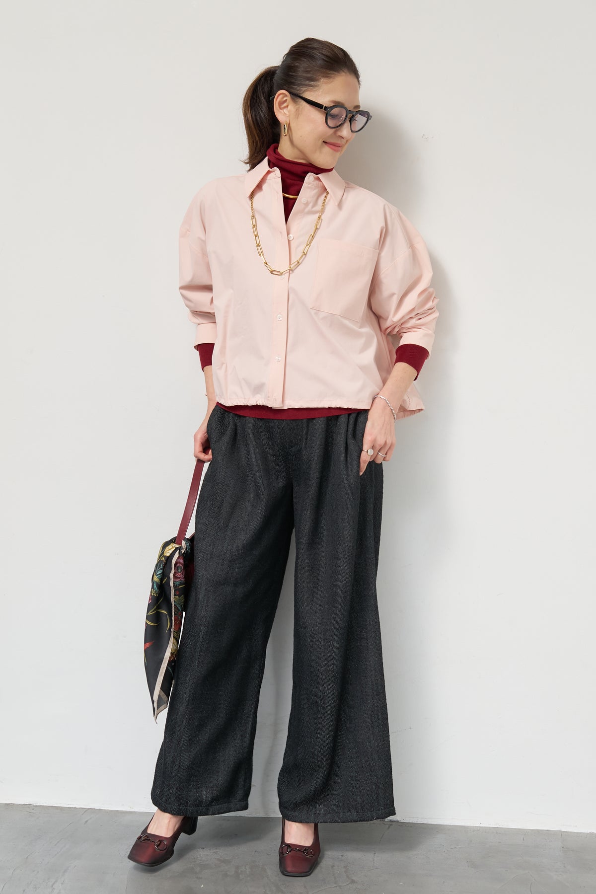裾ドロストクロップドシャツ/デニムライクヘリンボーンパンツ