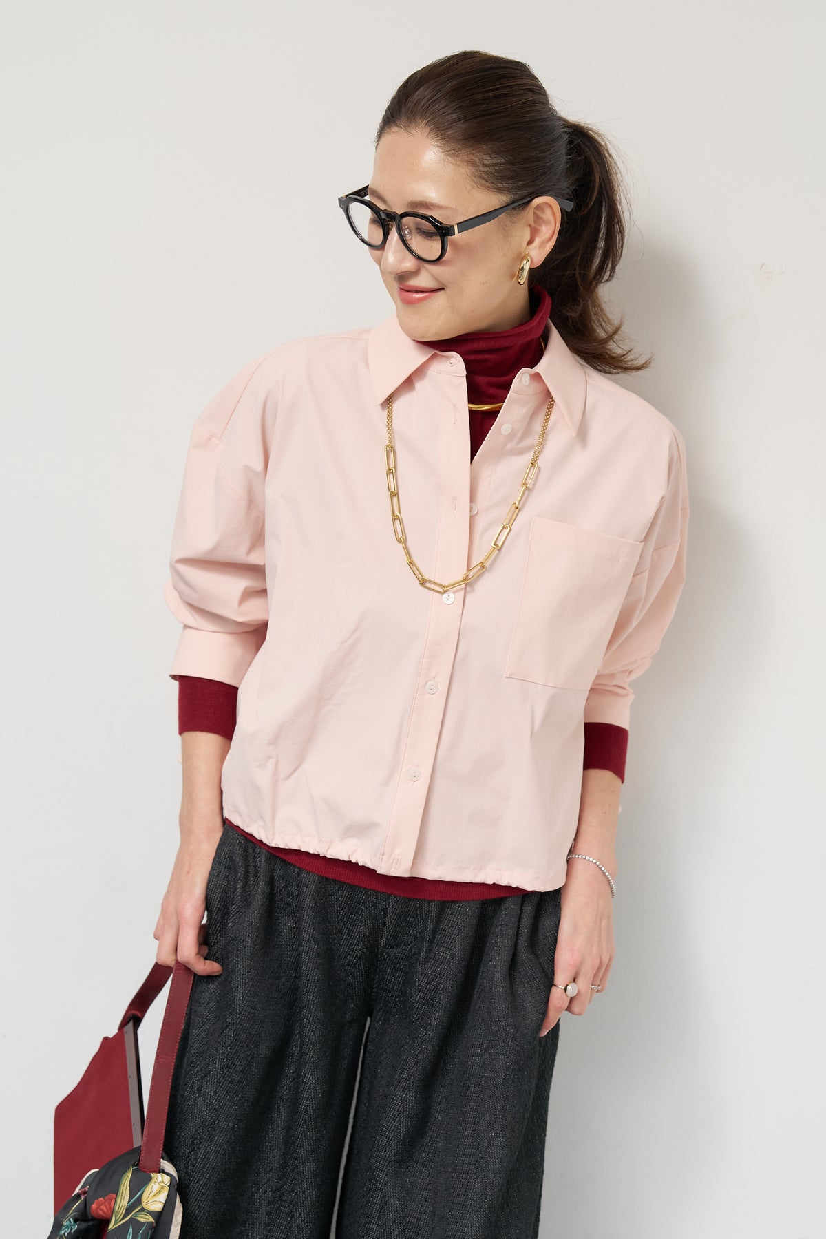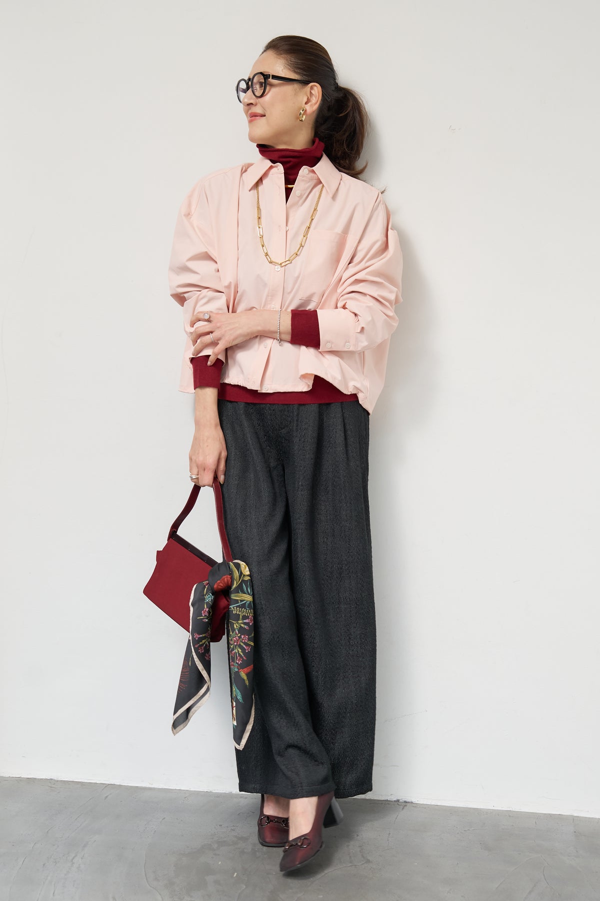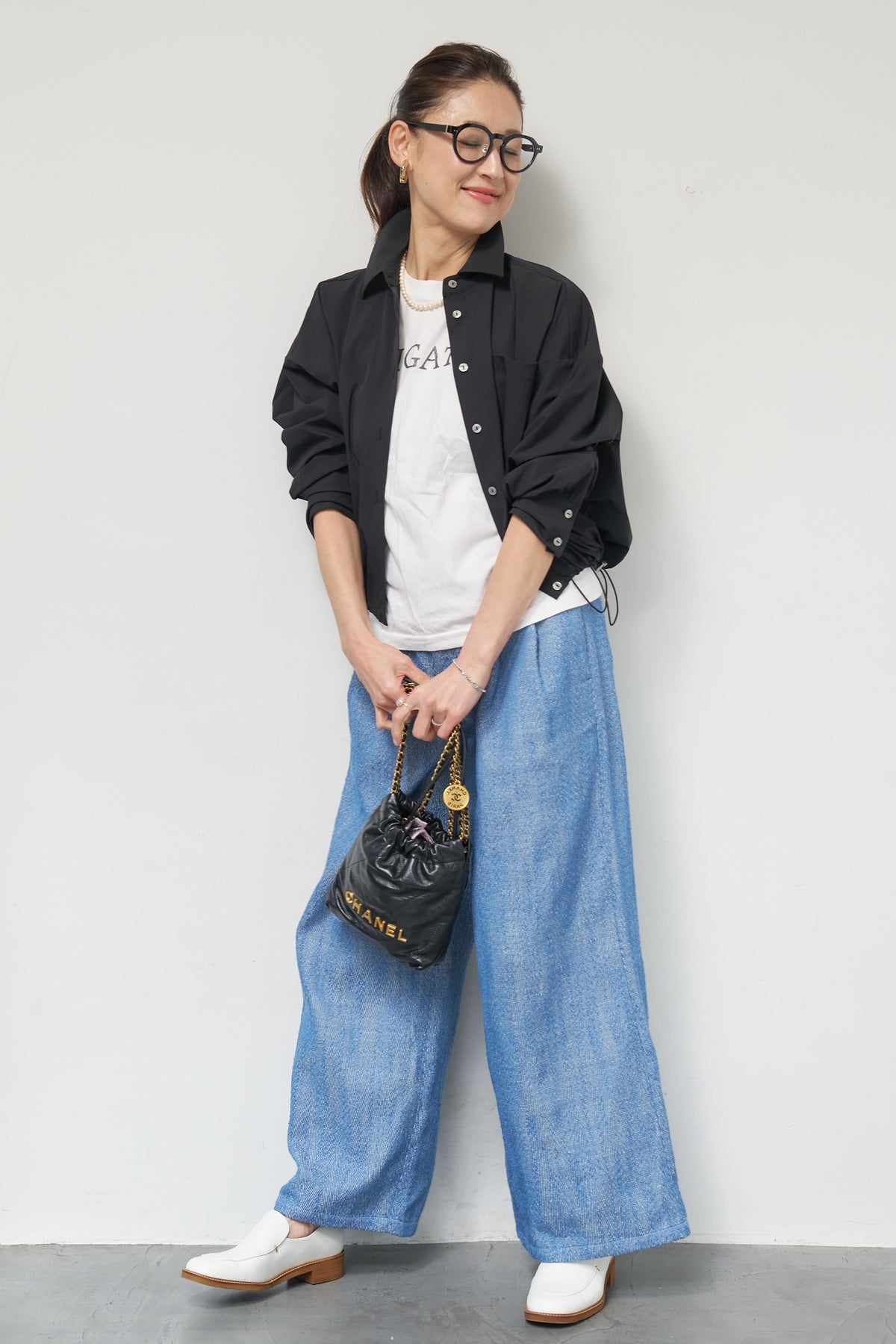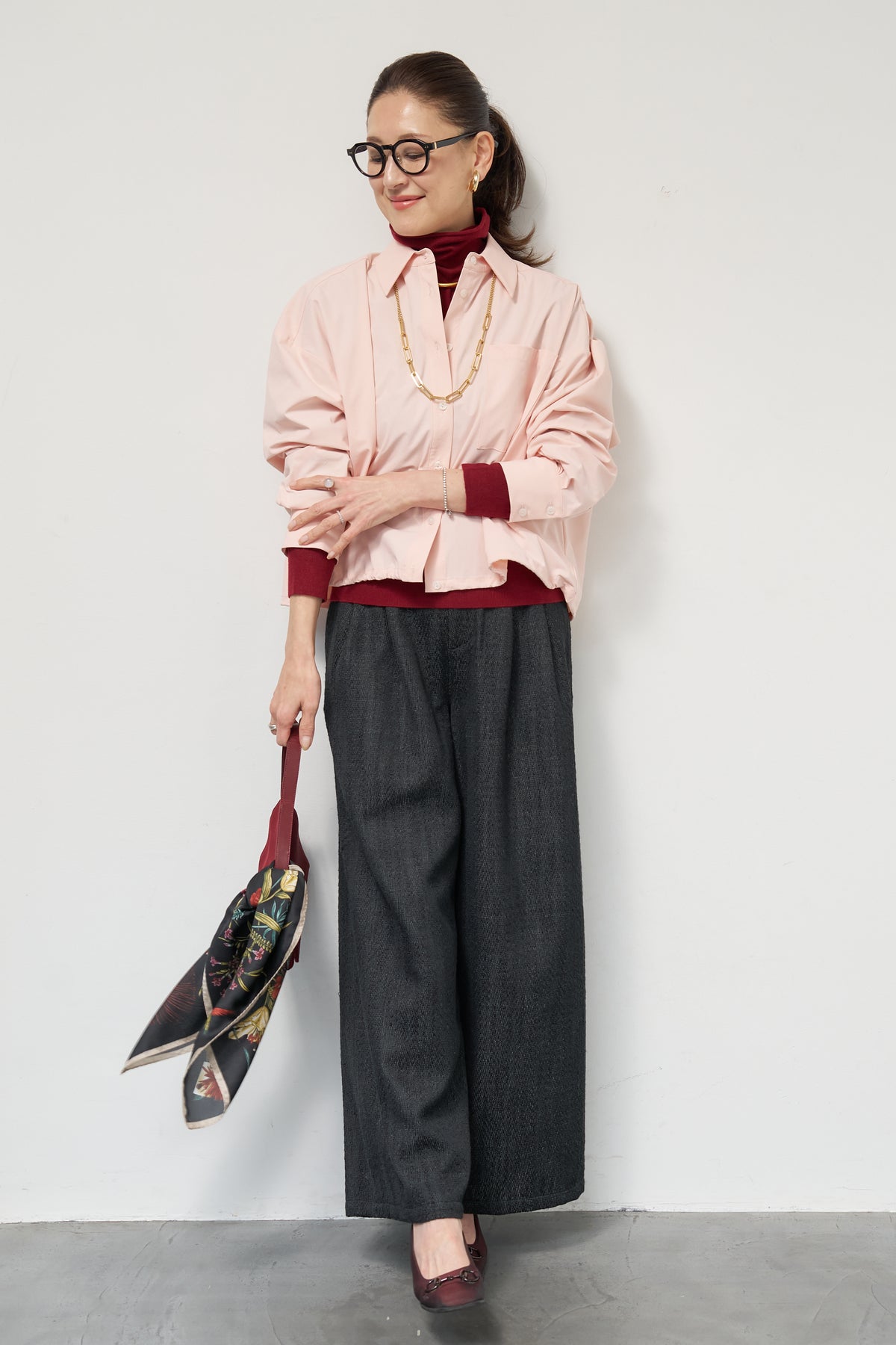 裾ドロストクロップドシャツ/デニムライクヘリンボーンパンツ