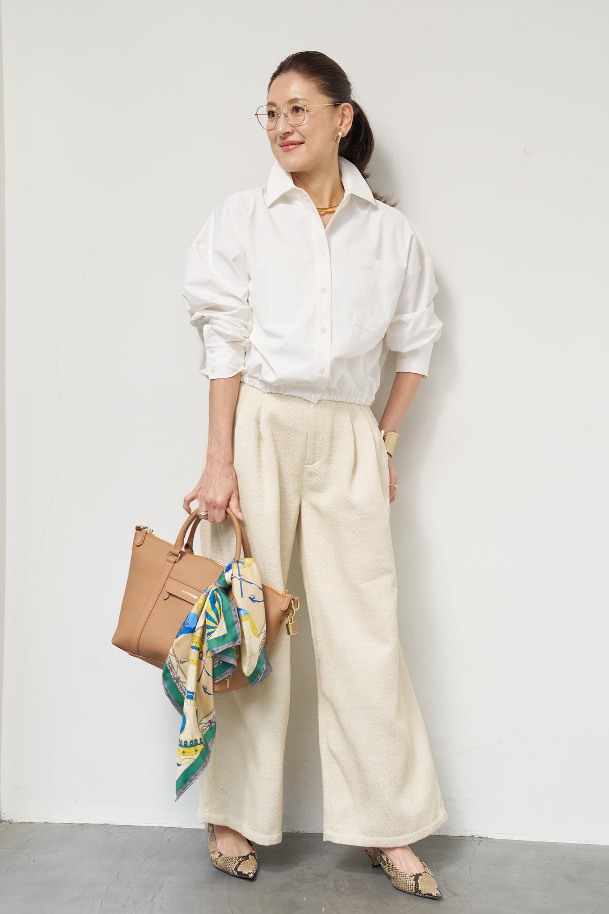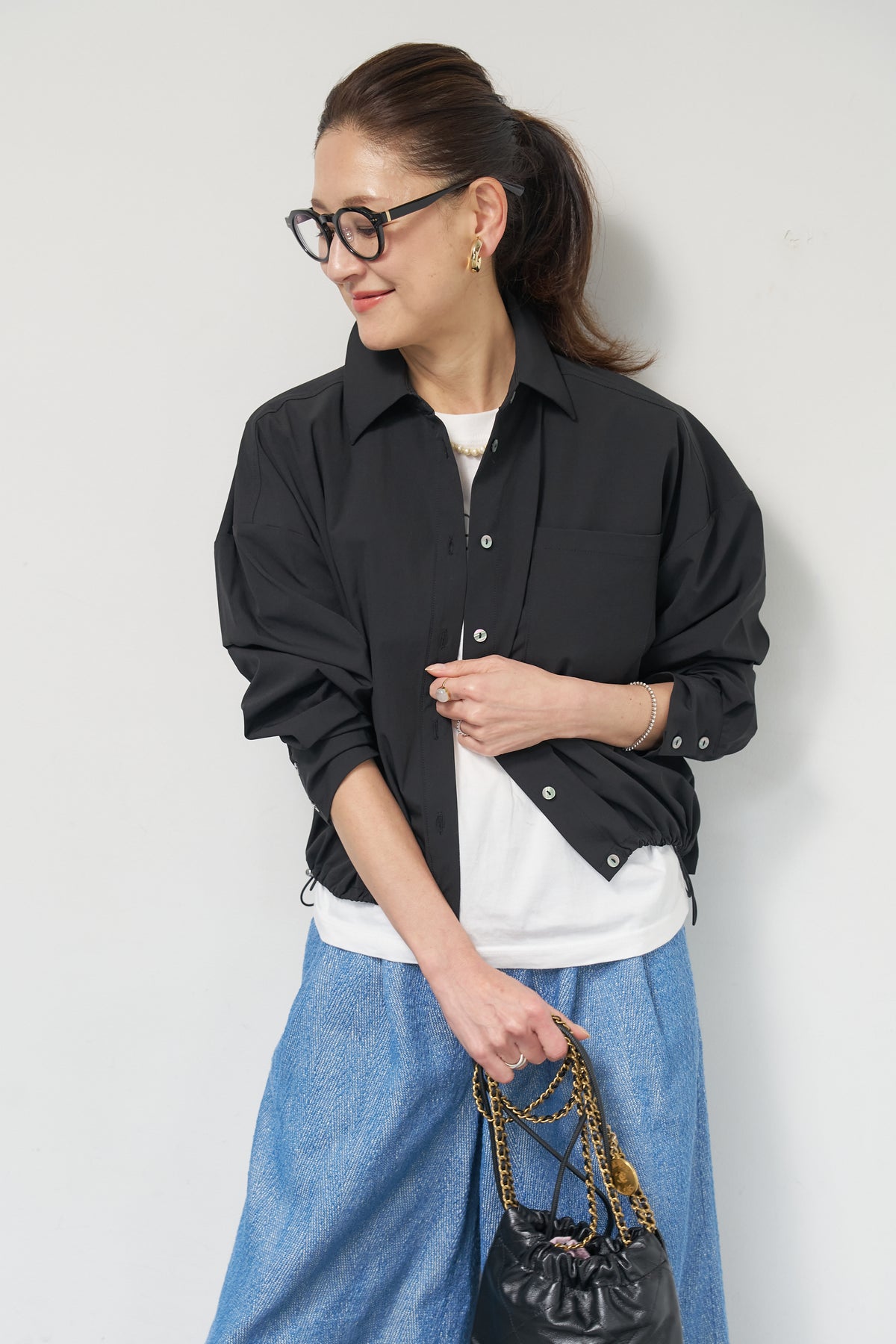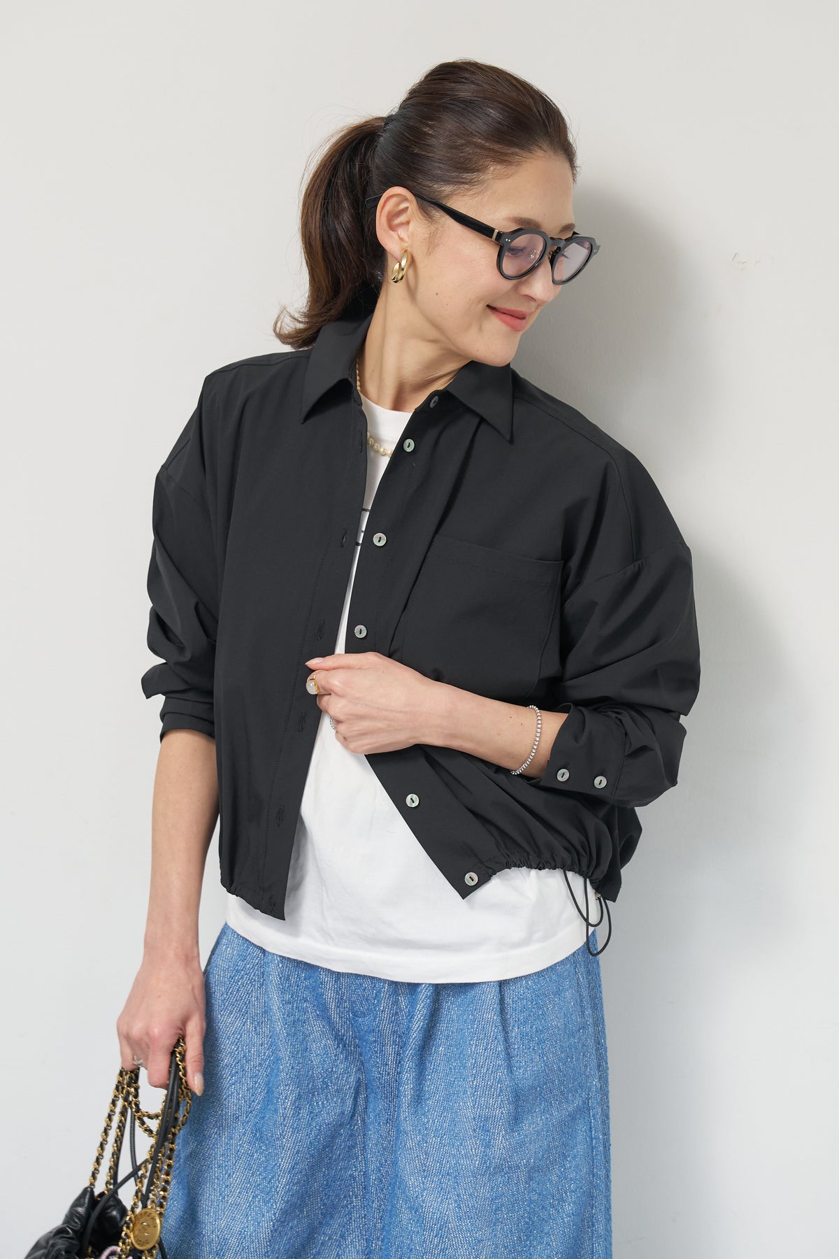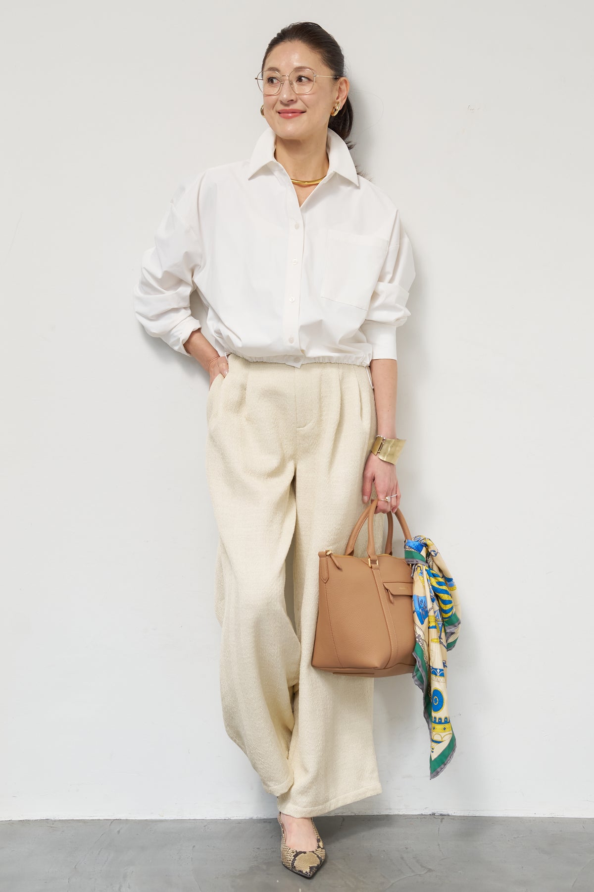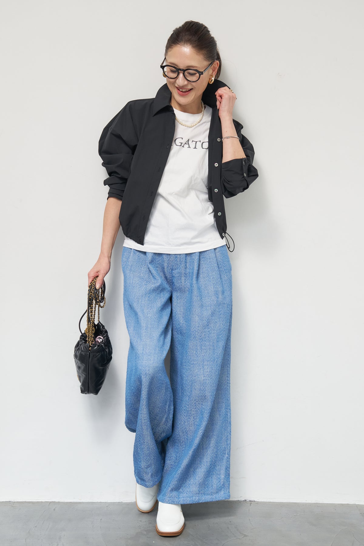 裾ドロストクロップドシャツ/デニムライクヘリンボーンパンツ