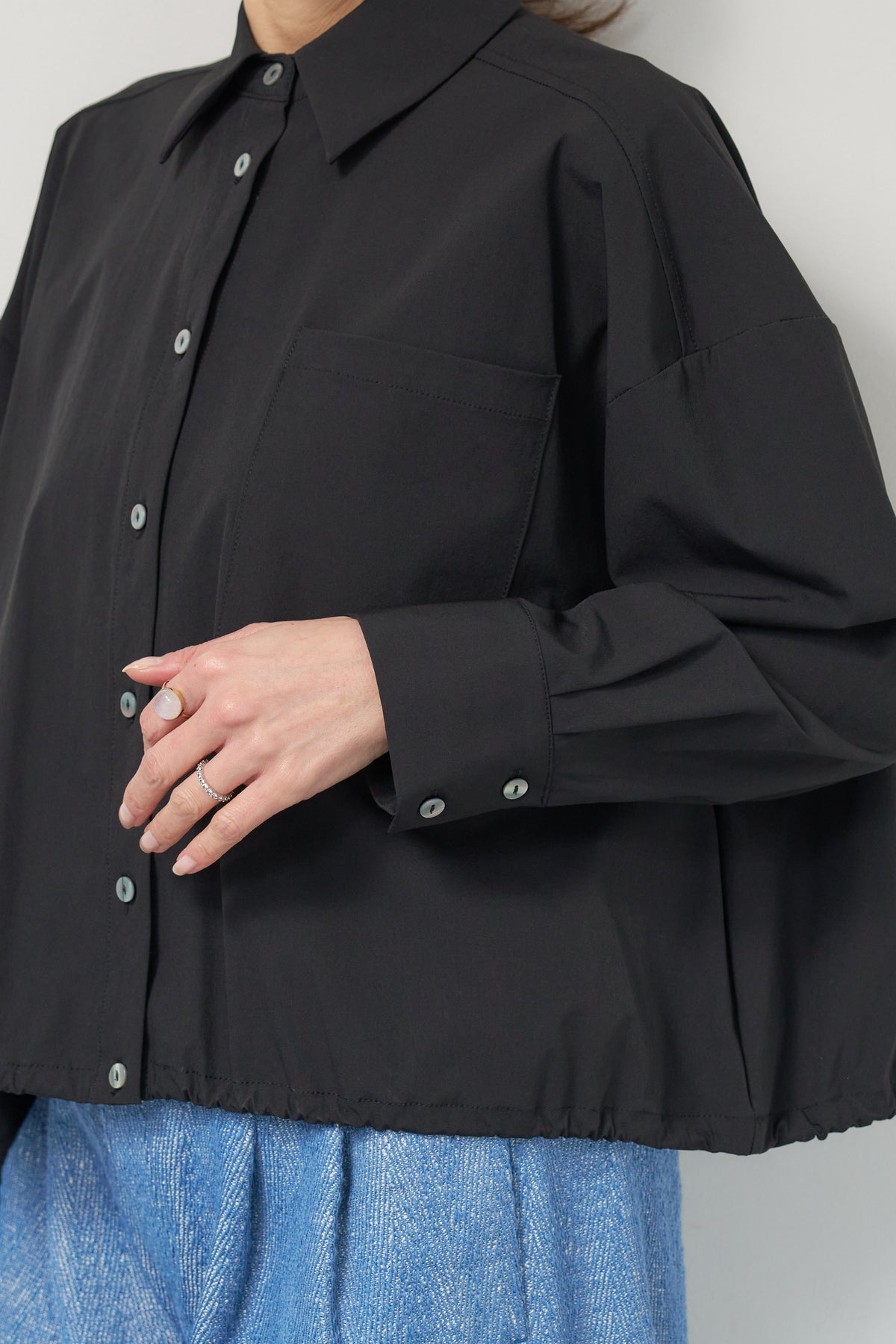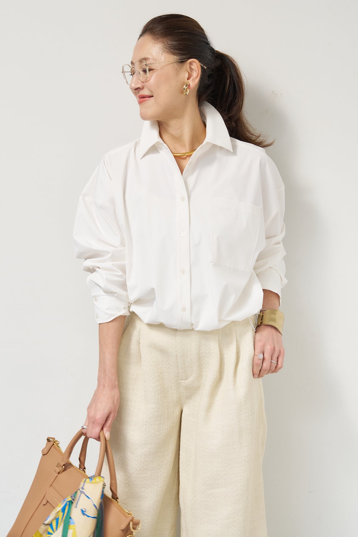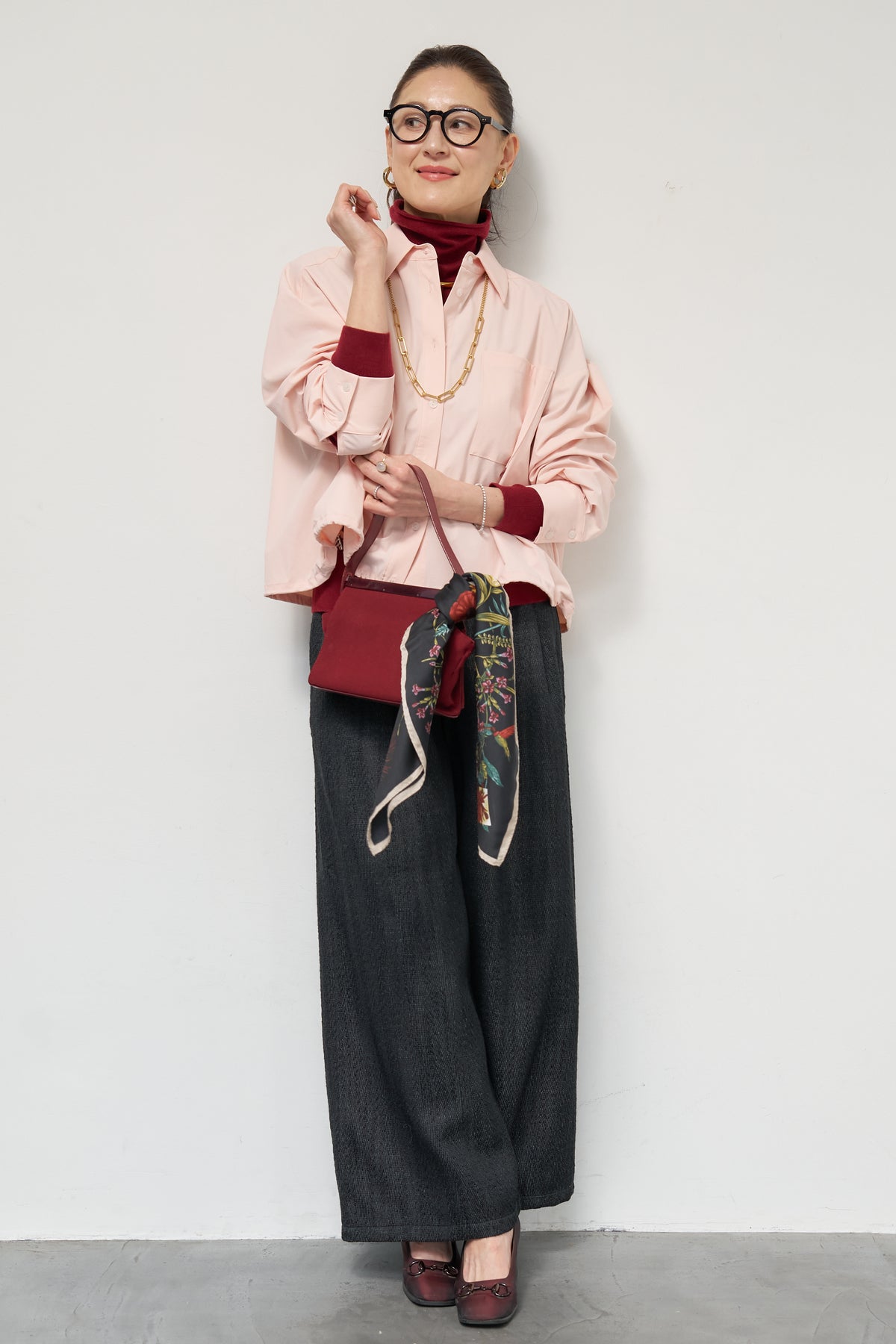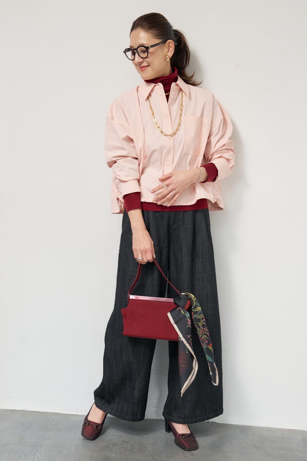 裾ドロストクロップドシャツ/デニムライクヘリンボーンパンツ