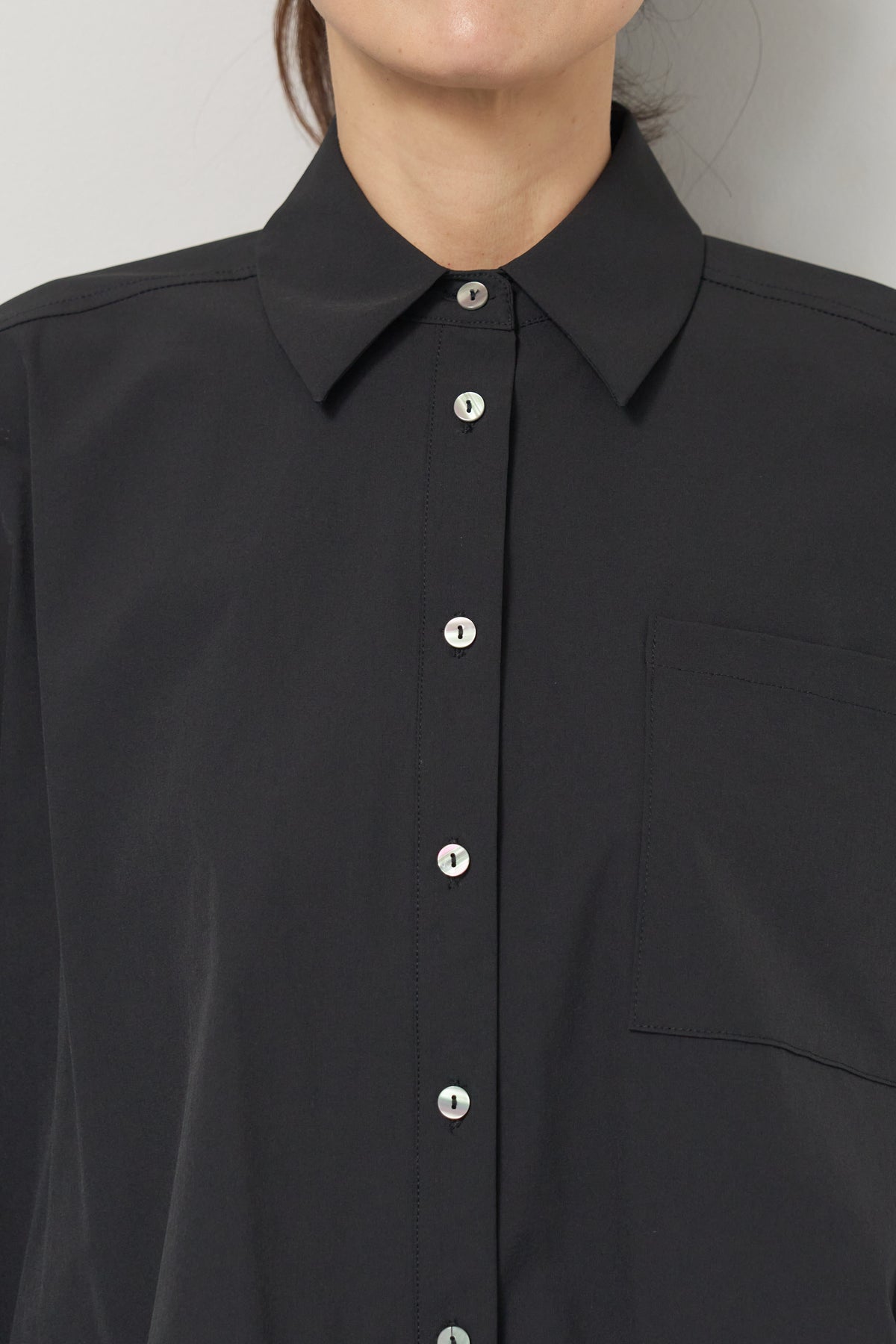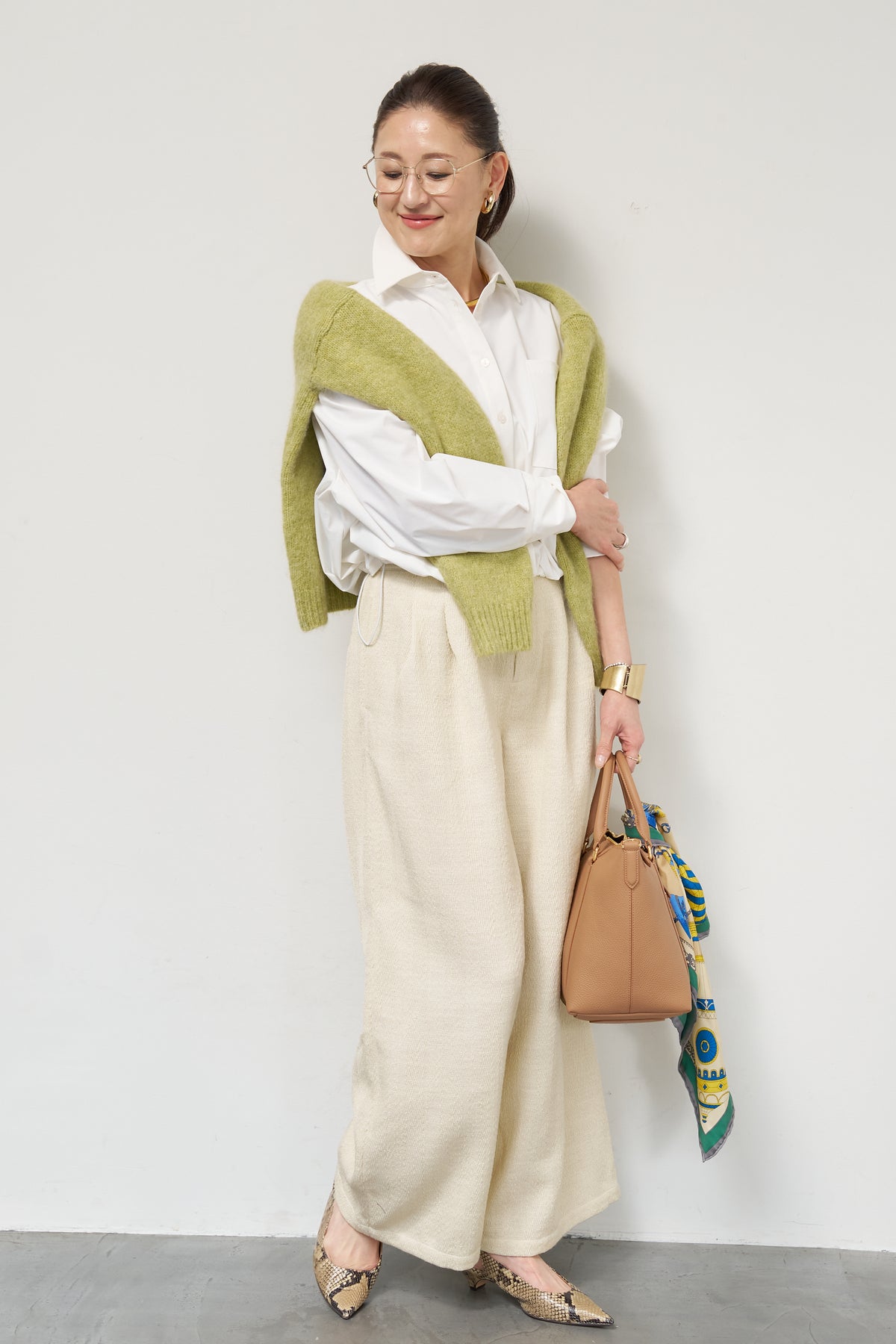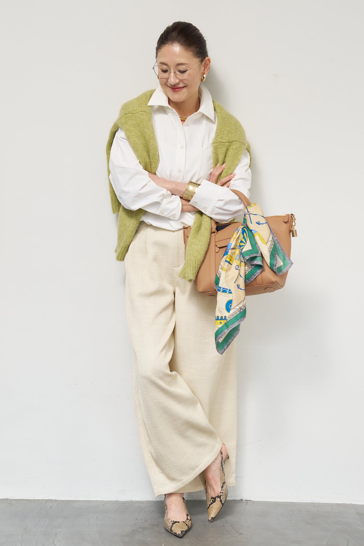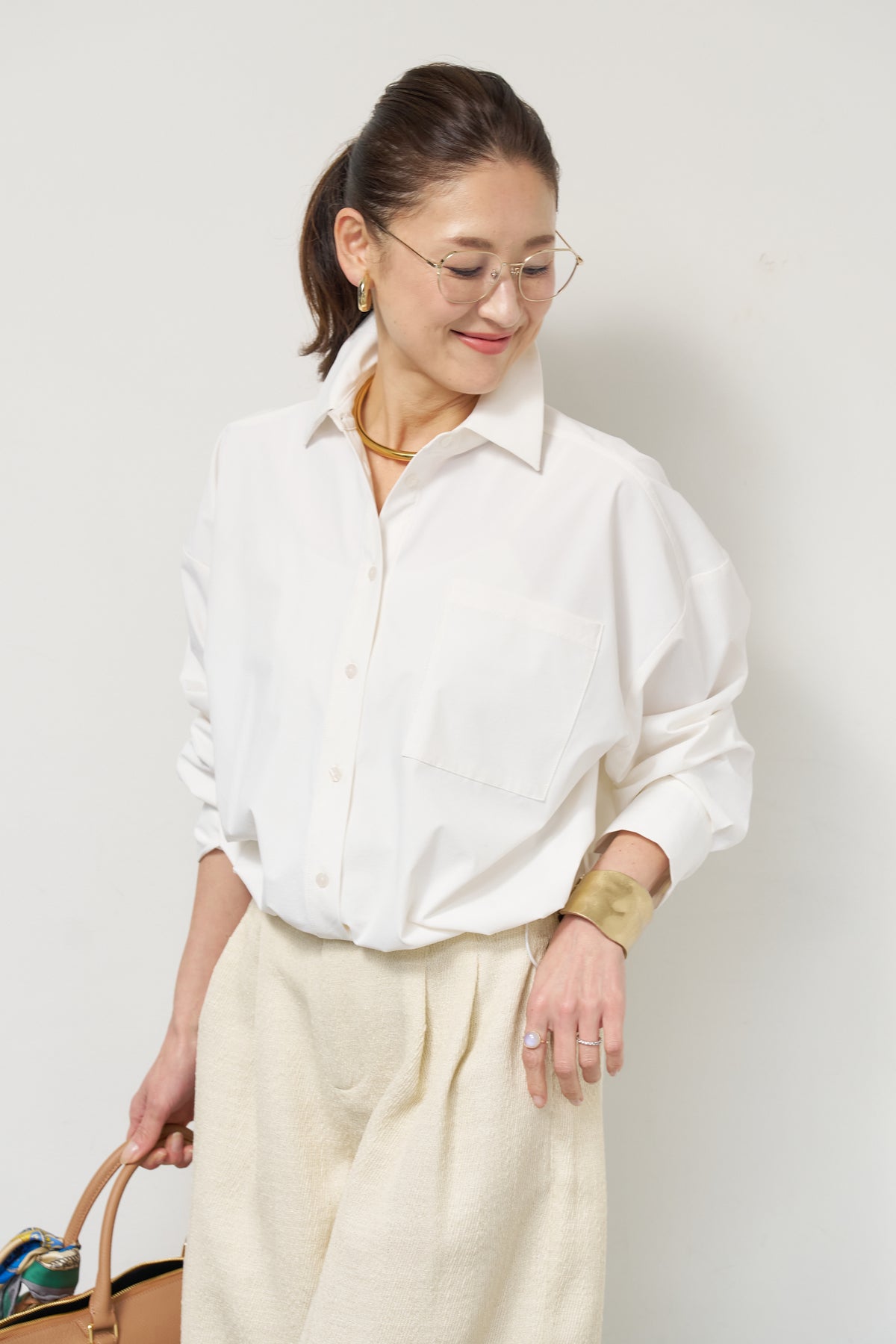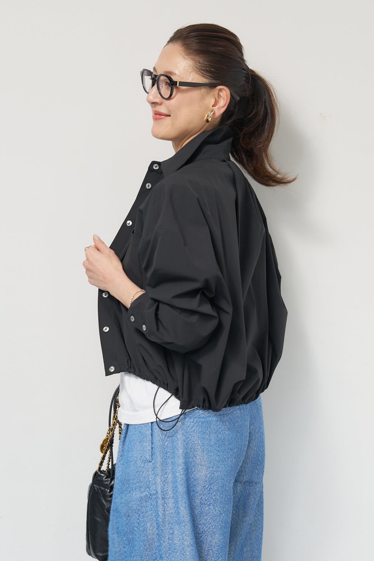 裾ドロストクロップドシャツ/デニムライクヘリンボーンパンツ