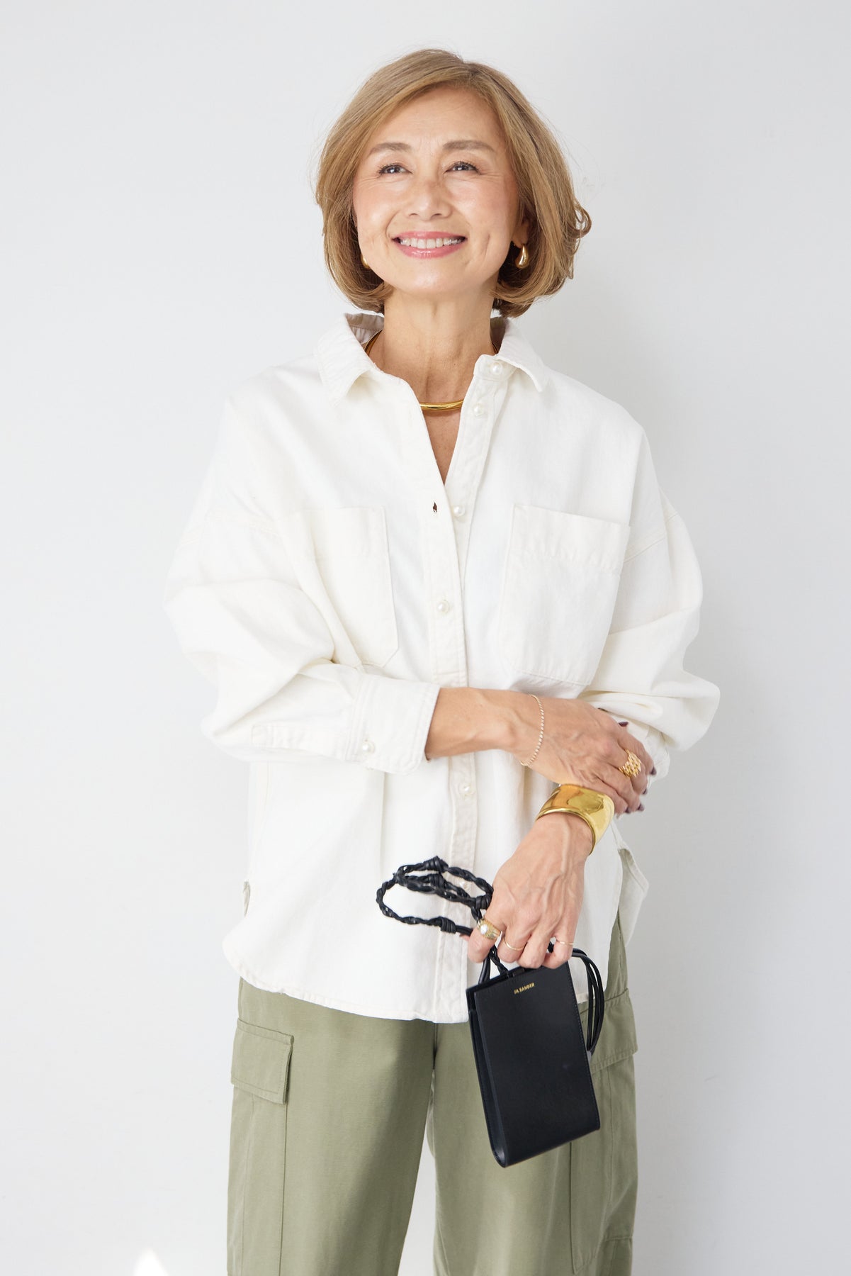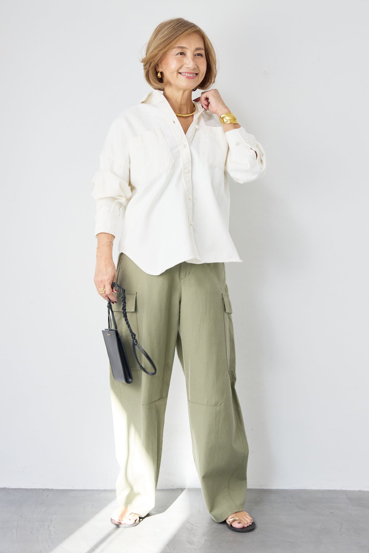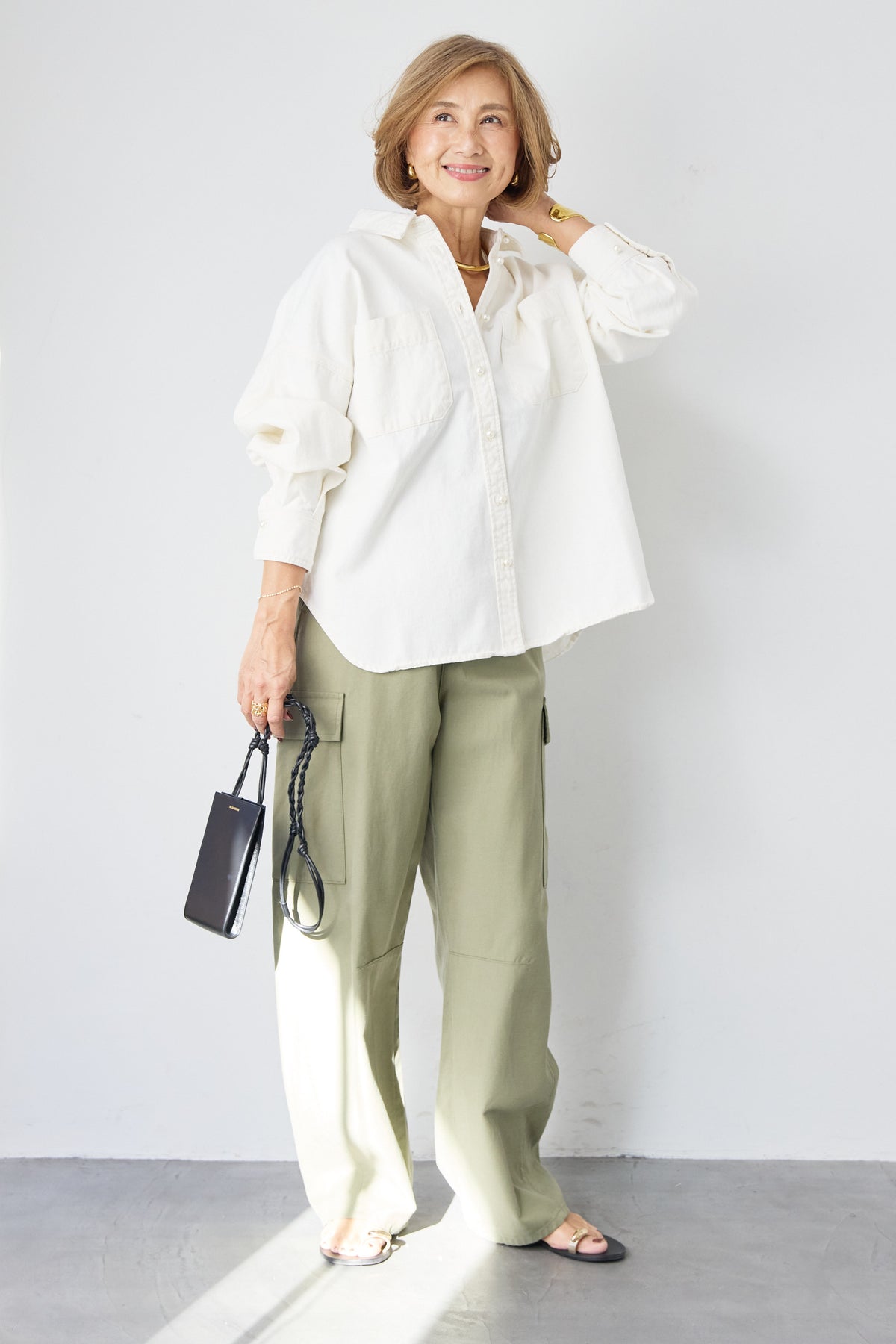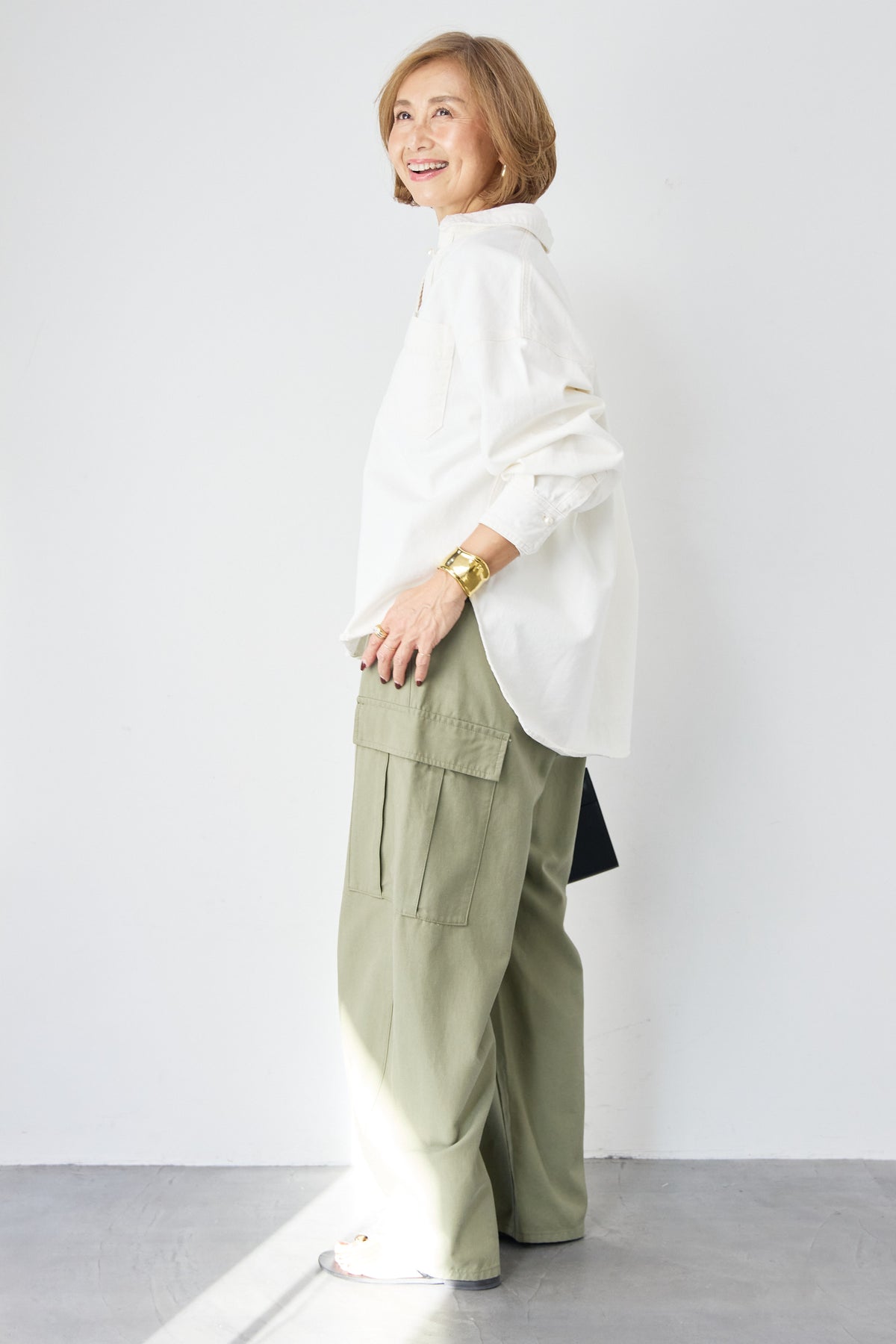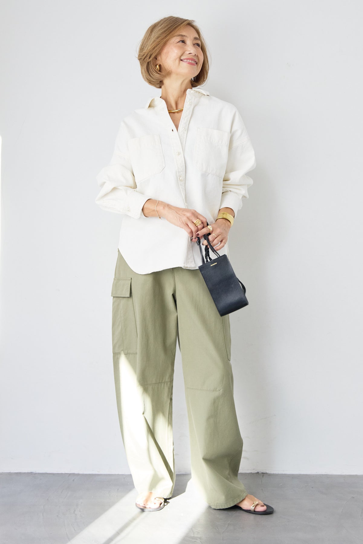 パールボタンデニムシャツ/テンセルカーゴパンツ