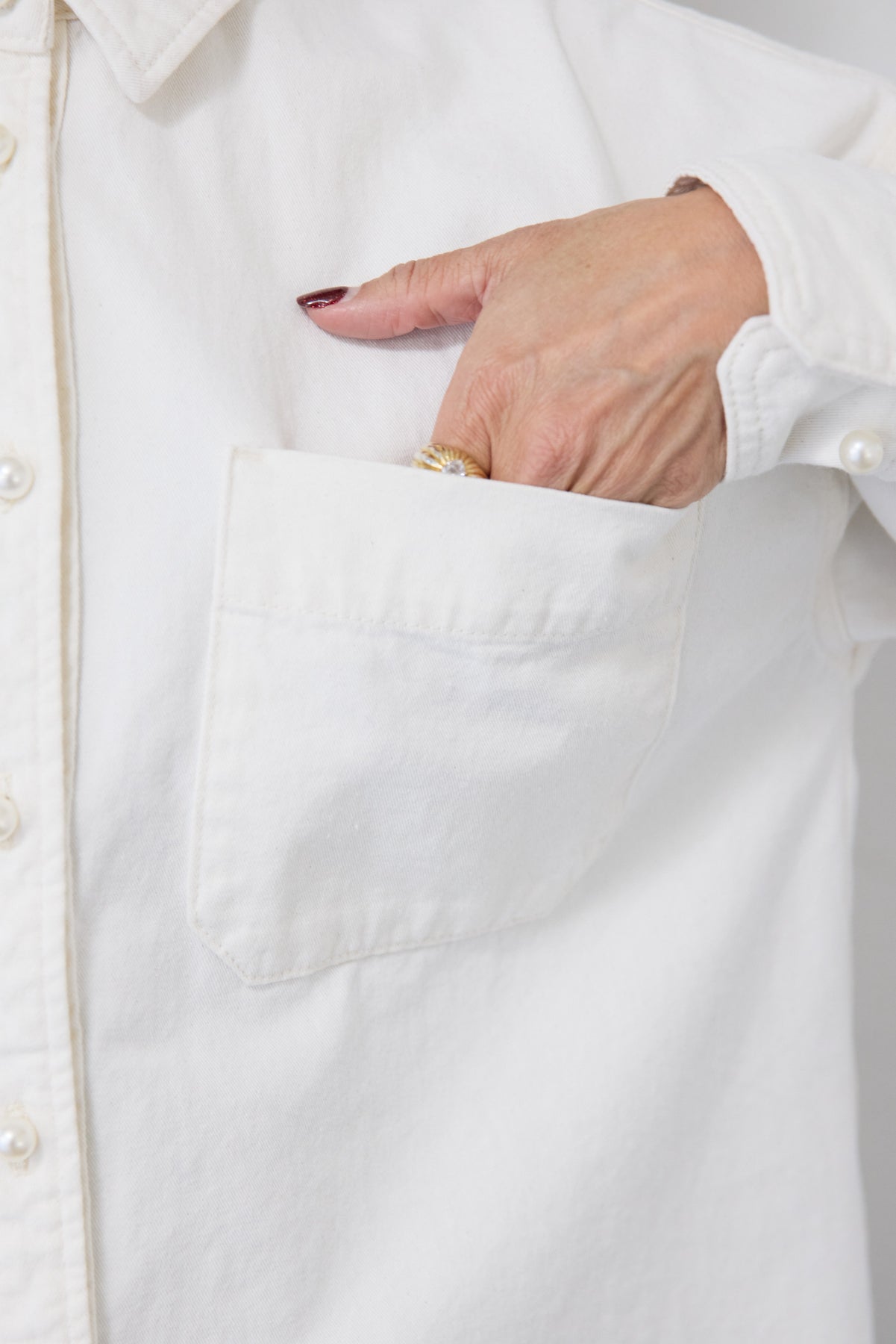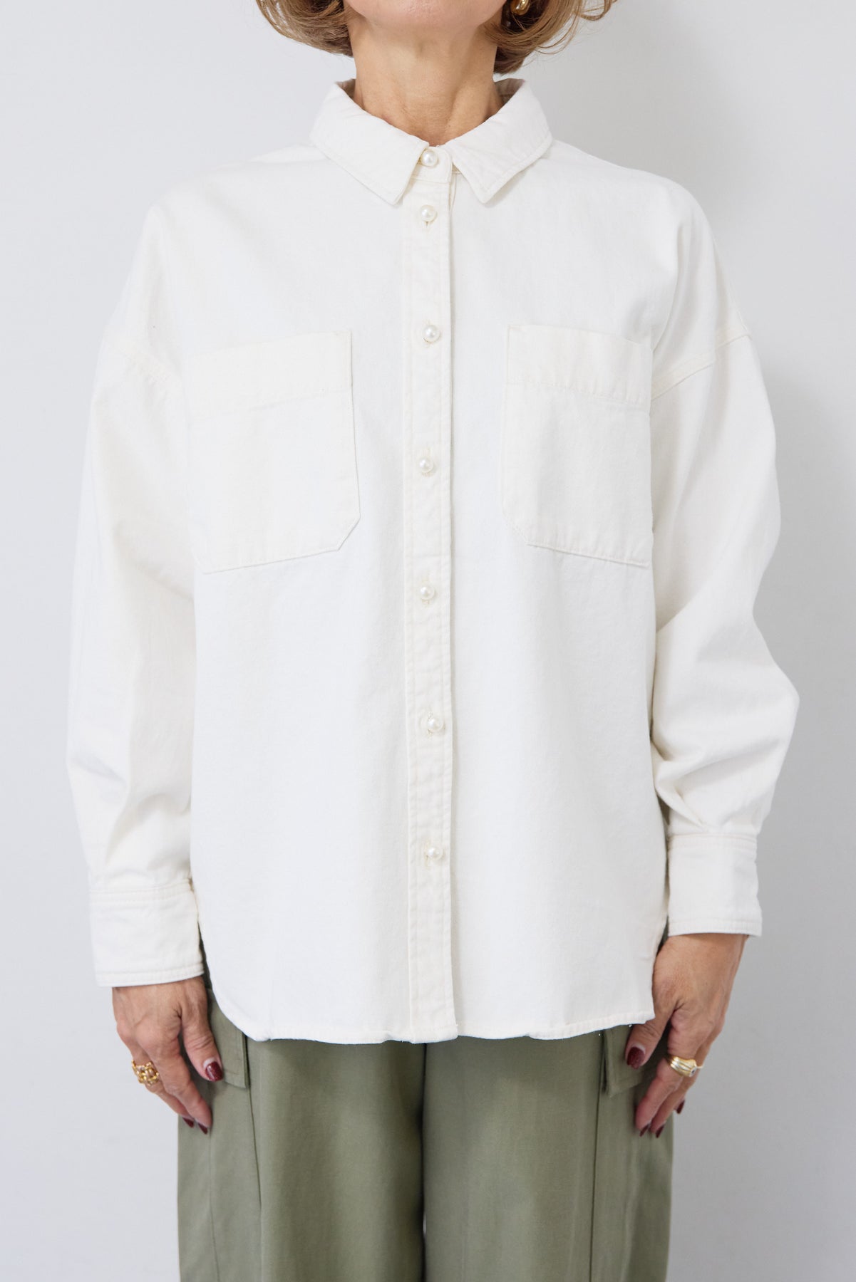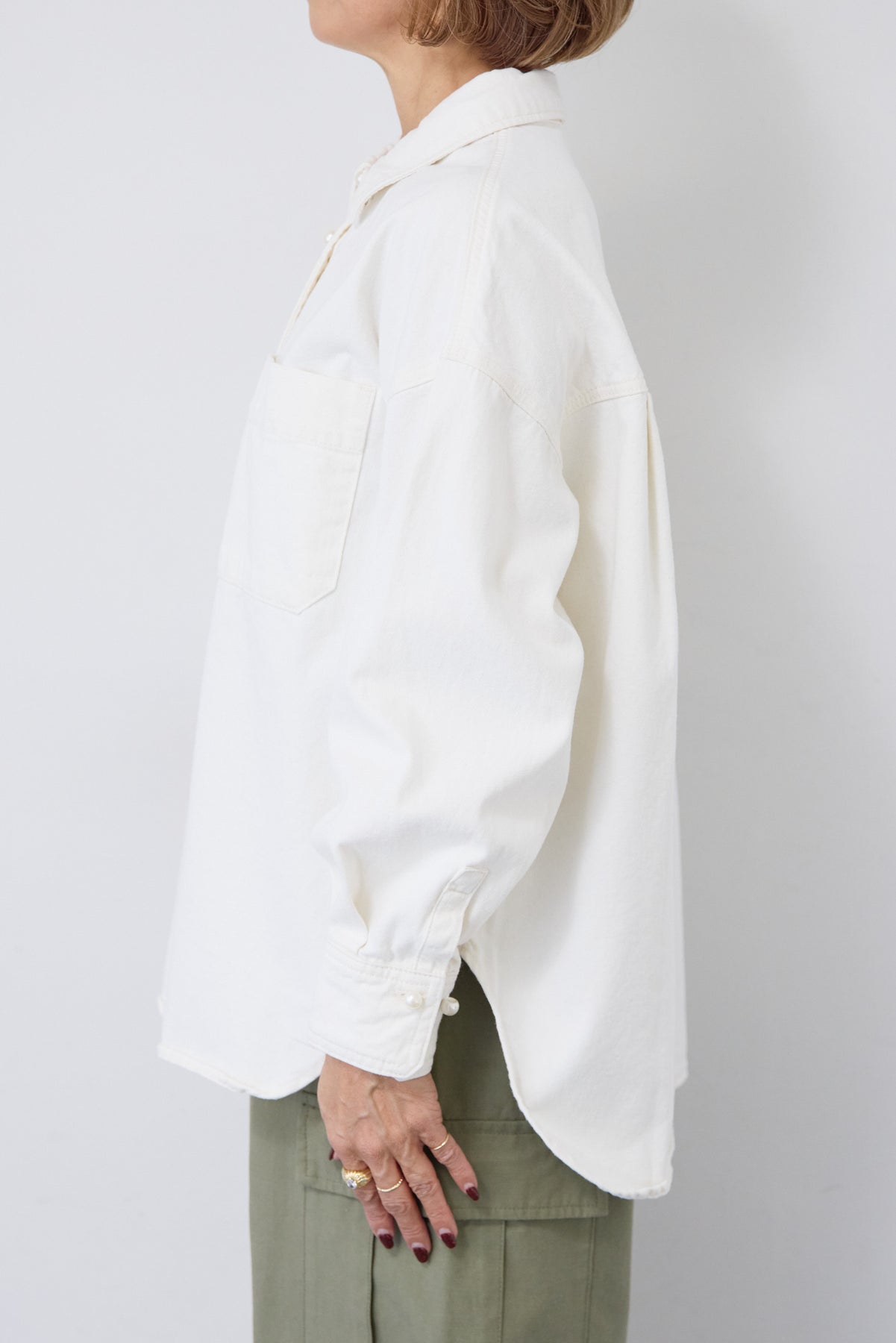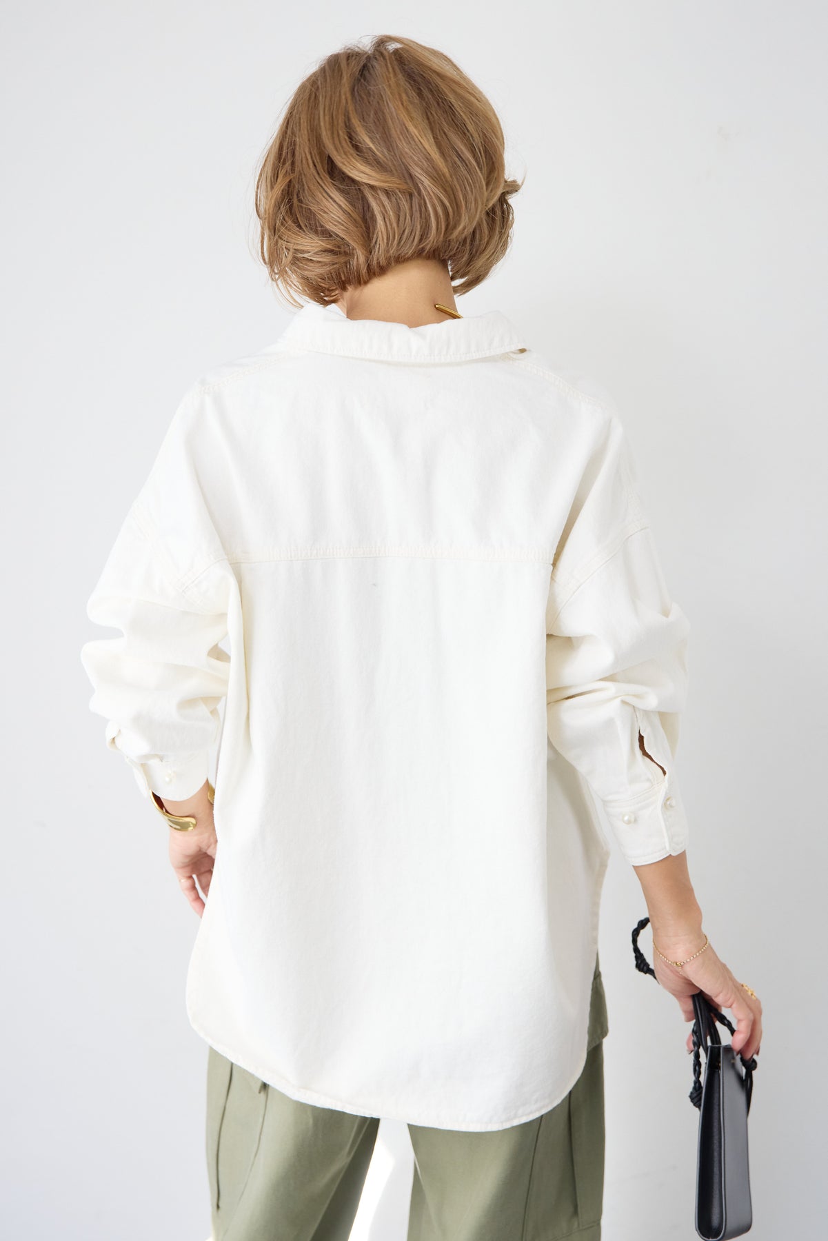パールボタンデニムシャツ/テンセルカーゴパンツ